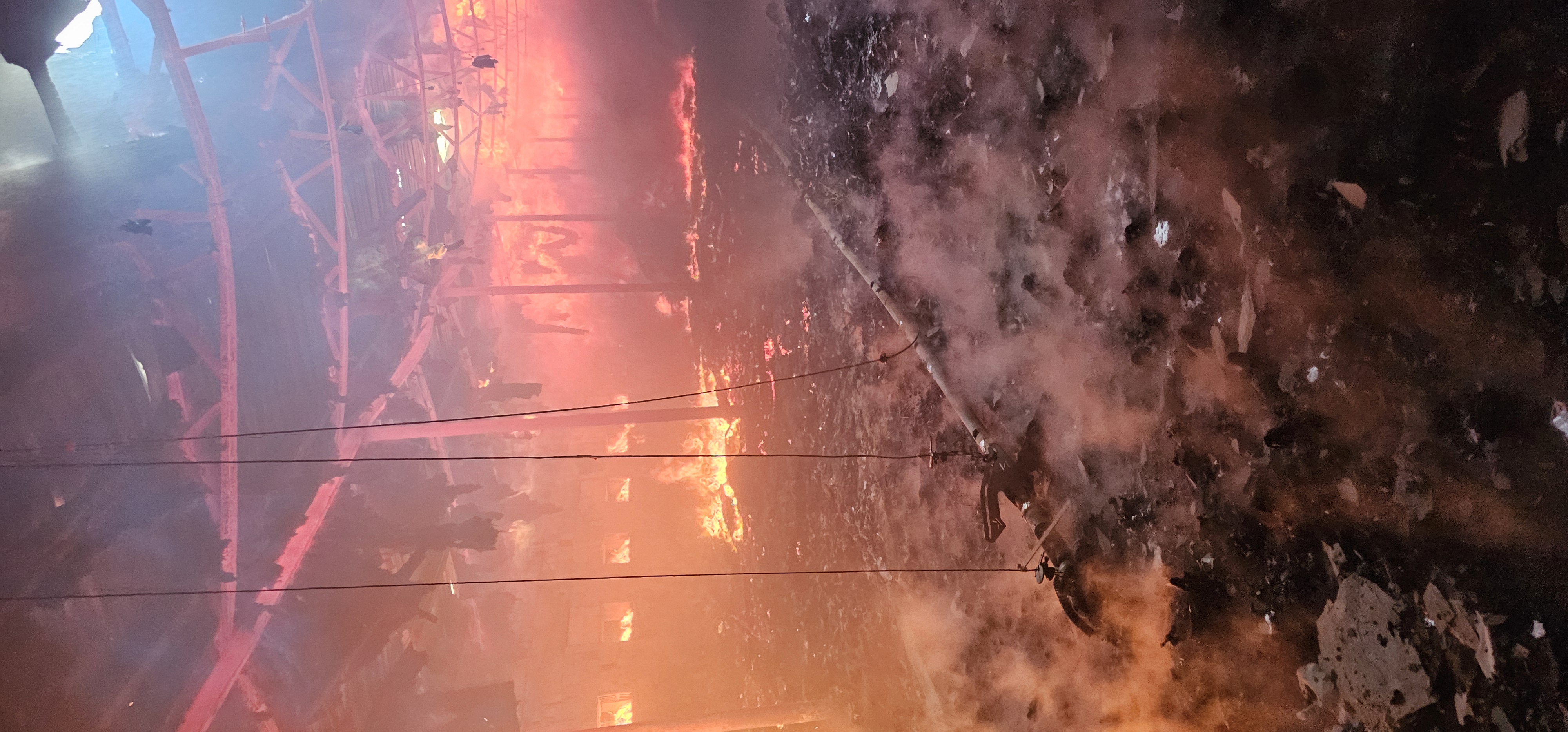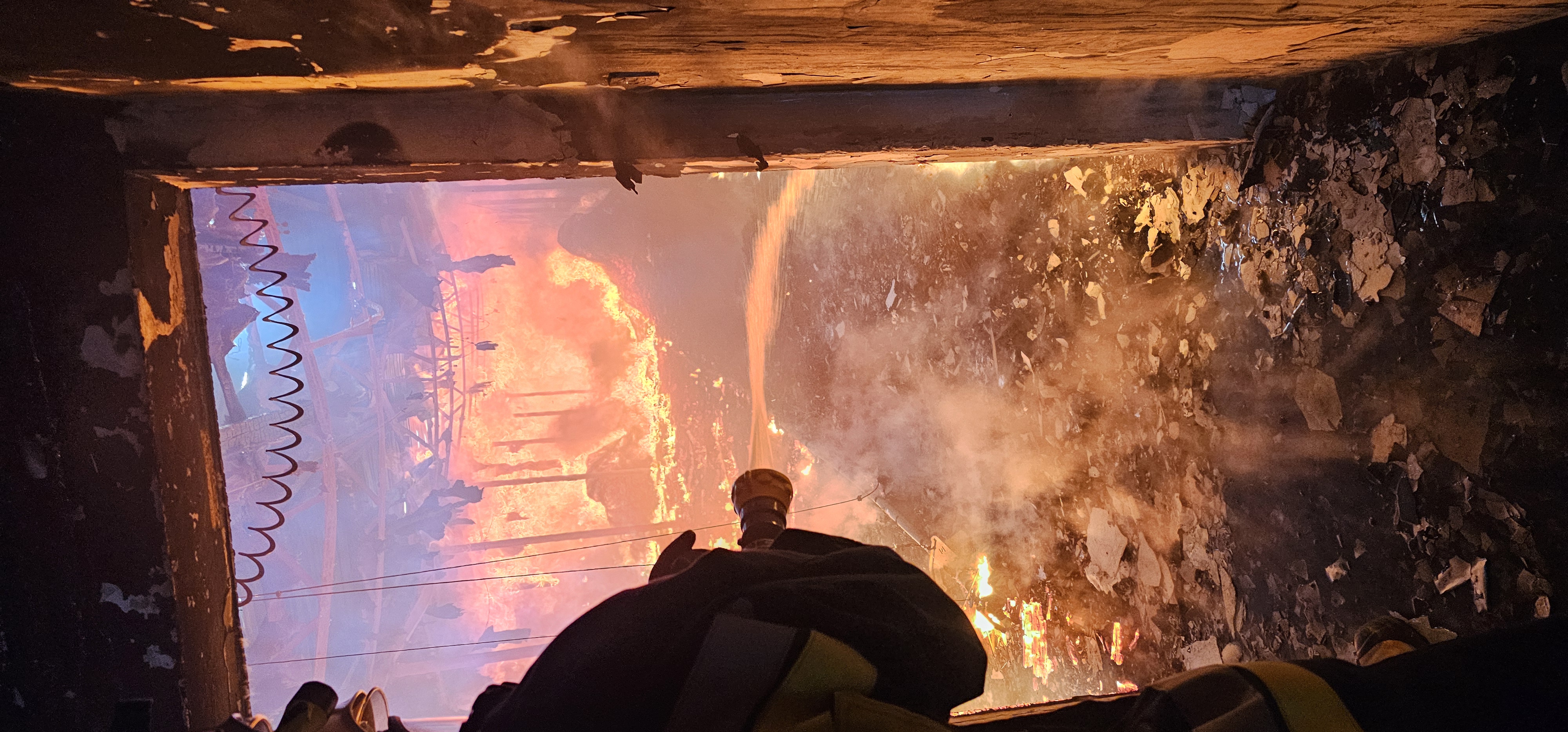 Działania zastępów pożarniczych polegały na zabezpieczeniu miejsca zdarzenia, następnie strażacy przystąpili do podawania prądów gaśniczych w natarciu na palący się obiekt. Po stłumieniu ognia budynek został oddymiony mechanicznie. W dalszej fazie działań przystąpiono do usuwania materiału palnego na zewnątrz oraz ich dogaszania .