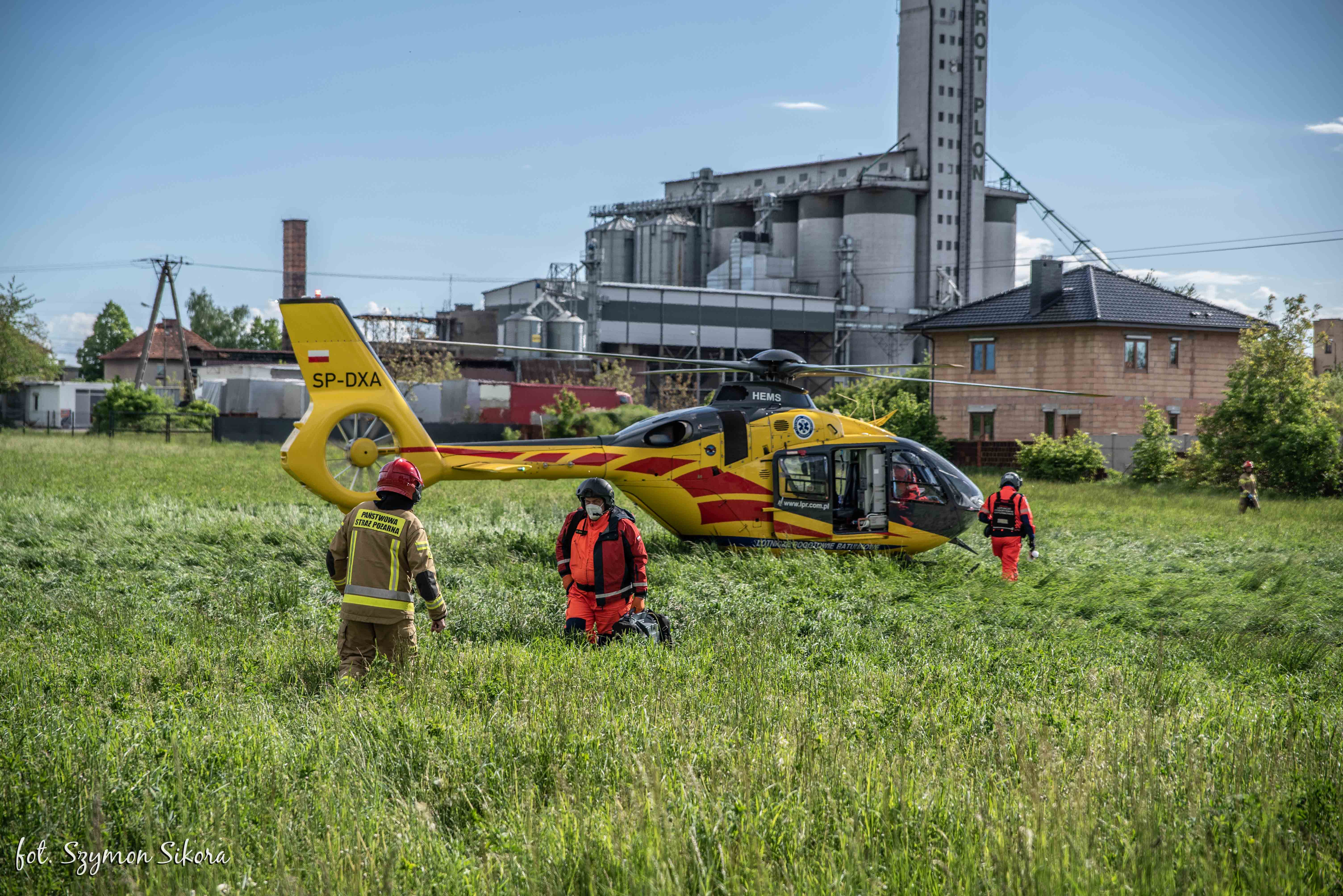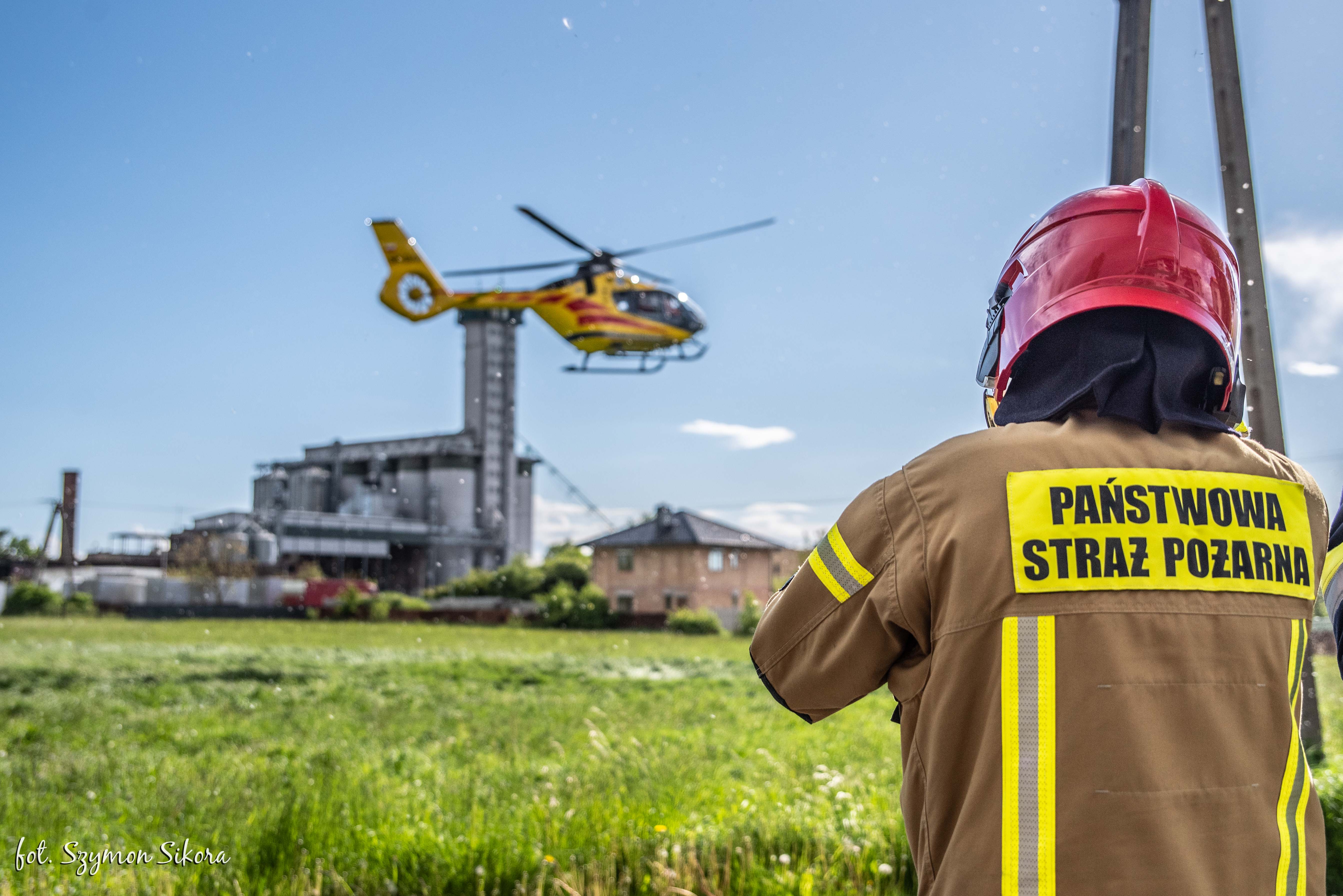 Strażacy po zabezpieczeniu terenu działań przystąpili do natychmiastowej oceny stanu kobiety ewakuowanej ze strefy zagrożenia przez osoby postronne oraz podjęli akcję gaśniczą z użyciem piany sprężonej. Adekwatnie do poniesionych obrażeń lokatorce udzielono kwalifikowanej pierwszej pomocy polegającej na zaopatrzeniu ran oparzeniowych, tlenoterapii biernej oraz wsparciu psychicznym. Po przybyciu karetki pogotowia osoba poszkodowana została przekazana pod opiekę kierownika zespołu, który po dokonaniu oceny stanu uczestniczki zdarzenia podjął decyzję o dyspozycji Lotniczego Pogotowia Ratunkowego celem transportu lokatorki do placówki medycznej. Podjęte działania gaśnicze wewnątrz mieszkania doprowadziły do szybkiej lokalizacji pożaru, który nie rozprzestrzenił się na pozostałą część obiektu. Po stłumieniu ognia strażacy usunęli nadpalone elementy wyposażenia mieszkania na zewnątrz obiektu, które systematycznie dogaszano wodą. Równocześnie z prowadzonymi działaniami gaśniczymi w pobliżu miejsca zdarzenia wyznaczono lądowisko dla śmigłowca, zabezpieczając moment lądowania. Decyzją lekarza lotniczego pogotowia osoba poszkodowana została przetransportowana z miejsca zdarzenia drogą lotniczą do specjalistycznej placówki medycznej. Po całkowitym ugaszeniu pożaru miejsce prowadzonych działań sprawdzono urządzeniami pomiarowymi, potwierdzając likwidacje zagrożenia. Działania straży pożarnej trwały łącznie 01 godzinę i 55 minut.