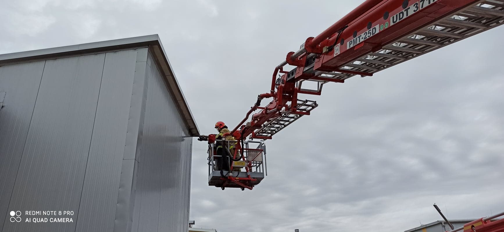 Strażacy po zabezpieczeniu miejsca zdarzenia przystąpili do akcji gaśniczej. Realizując działania w sprzęcie ochrony układu oddechowego podali jeden prąd gaśniczy wody w natarciu na palące się urządzenie filtrujące, skutecznie tłumiąc pożar. Po sprawieniu podnośnika hydraulicznego uzyskali dostęp do powierzchni dachowej hali produkcyjnej celem demontażu części opierzenia i schłodzenia miejsc o podwyższonej temperaturze. Obiekt został oddymiony i przewietrzony. Po sprawdzeniu hali urządzeniami pomiarowymi działania trwające łącznie 1 godzinę i 46 minut zakończono i zastępy powróciły do miejsca stacjonowania.