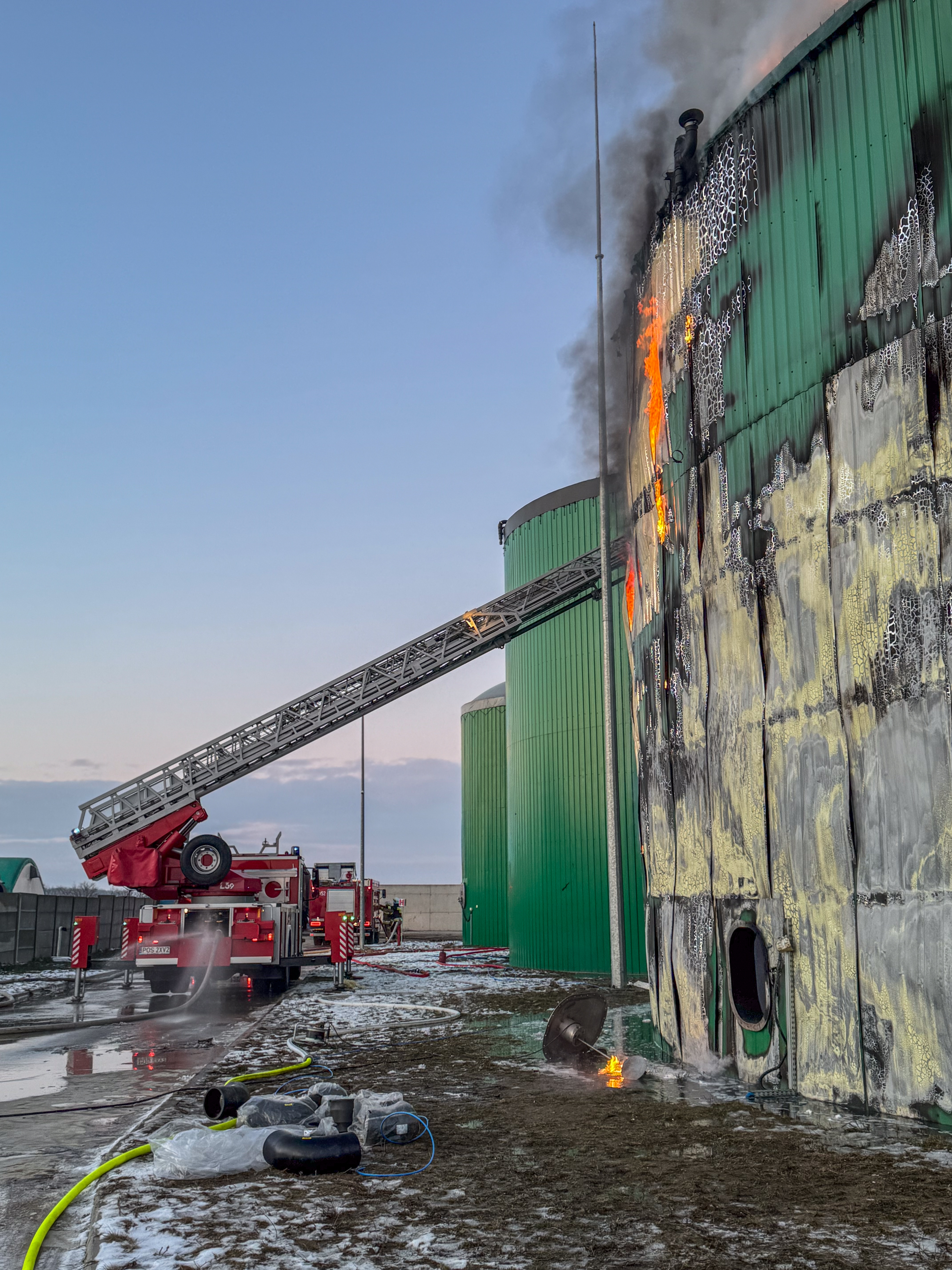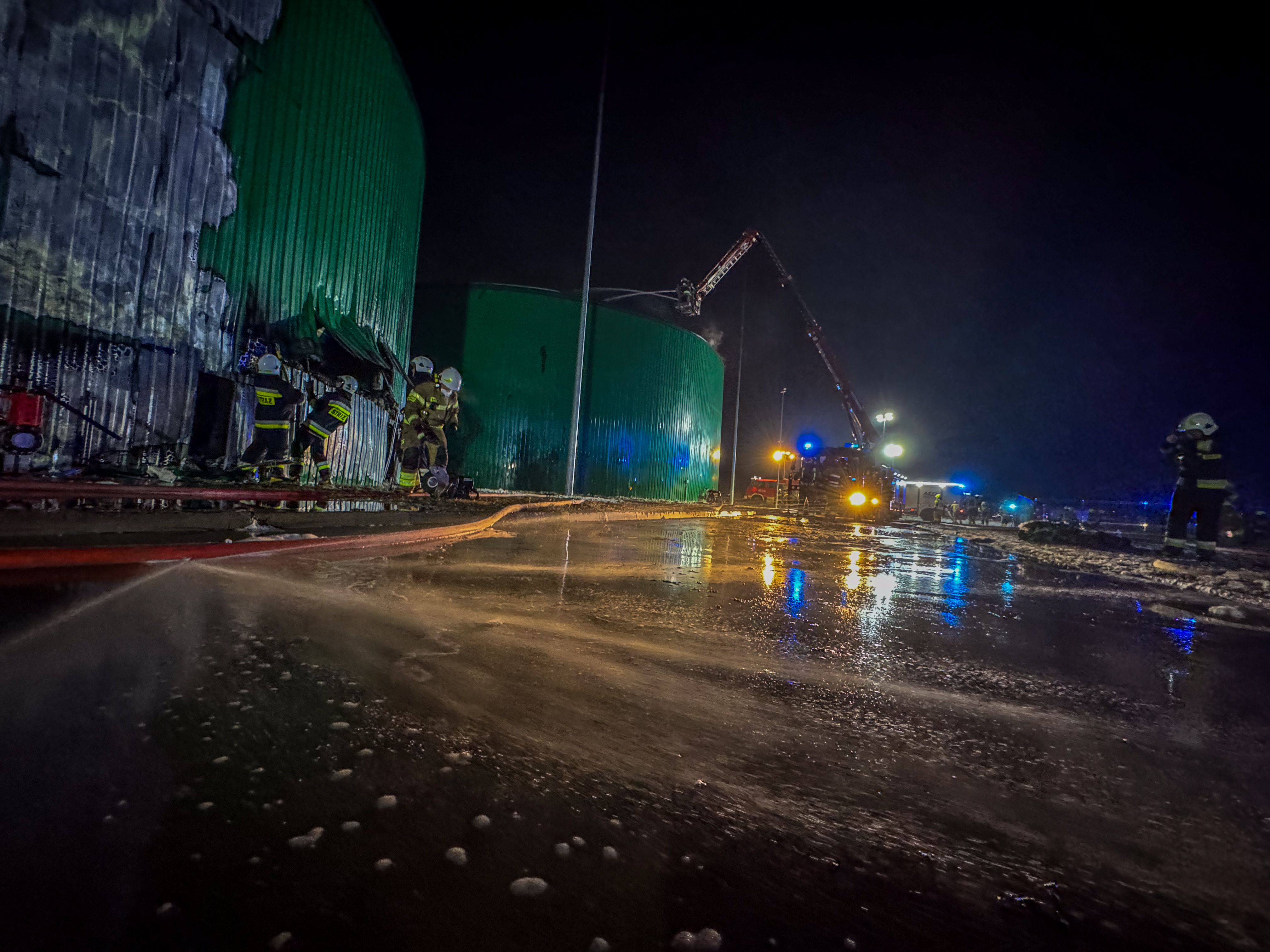 Zgłoszenie do Stanowiska Kierowania Komendanta Powiatowego Państwowej Straży Pożarnej w Krotoszynie wpłynęło o godzinie 16:11. Po dotarciu na miejsce zastępów pożarniczych Kierujący Działaniem Ratowniczym w przeprowadzonym rozpoznaniu ustalił, że na terenie zakładu znajduje się pięć zbiorników o różnej objętości i przeznaczeniu, które stanowią instalację technologiczną biogazowni. Poszycie dachowe na dwóch zbiornikach paliło się w całej objętości na poszyciu trzeciego zbiornika widoczne pojedyncze zarzewia ognia. Pożarem objęta została również warstwa izolacyjna płaszczy zbiorników.