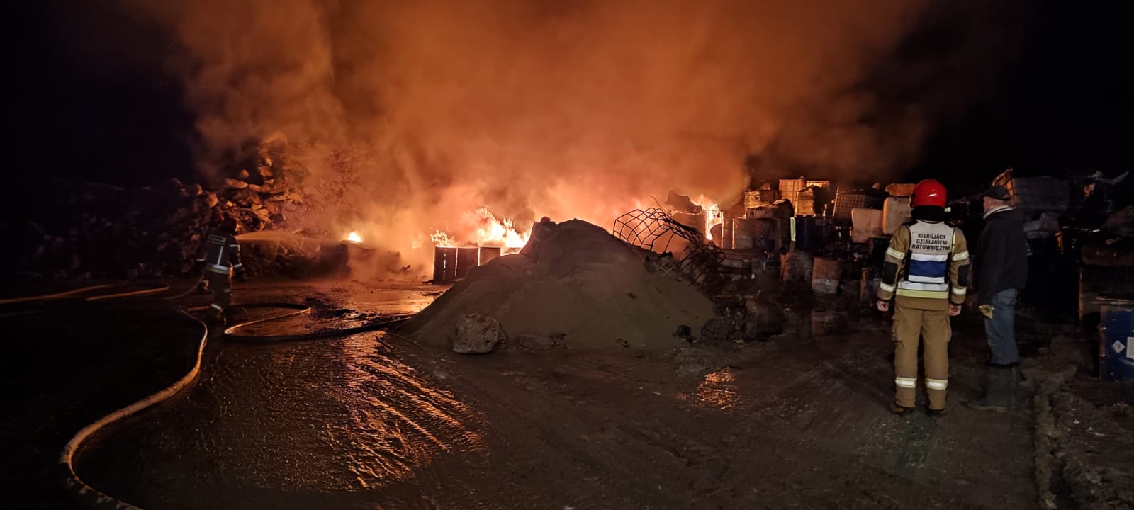 POŻAR ODPADÓW NA TERENIE ZAKŁADU PRODUKCYJNEGO W KROTOSZYNIE