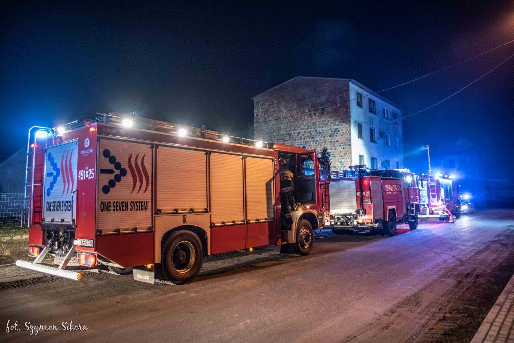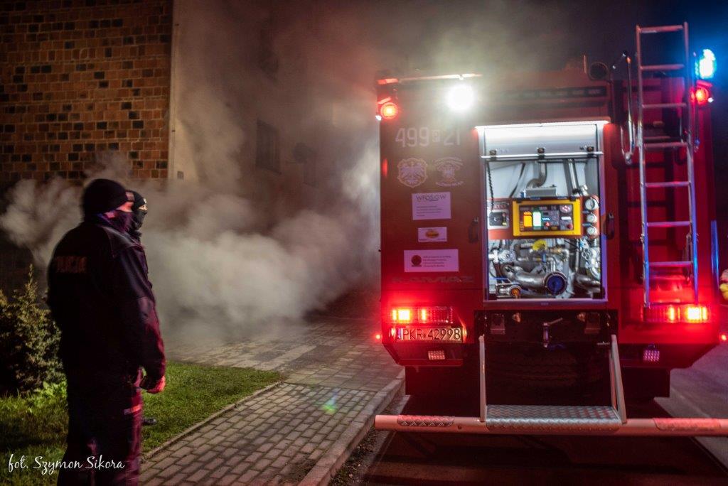 Po przybyciu na miejsce zastępów Straży Pożarnej, w wyniku przeprowadzonego rozpoznania Kierujący Działaniem Ratowniczym ustalił, że pali się drewno opałowe składowane w piwnicy. Przed przybyciem Jednostek Ochrony Przeciwpożarowej jeden z lokatorów obiektu podjął próbę gaszenia pożaru składowanego drewna wodą, która okazała się nieskuteczna. Obecny na miejscu patrol Policji przeprowadził ewakuację czternastu osób. Na szczęście nikt nie odniósł żadnych obrażeń.