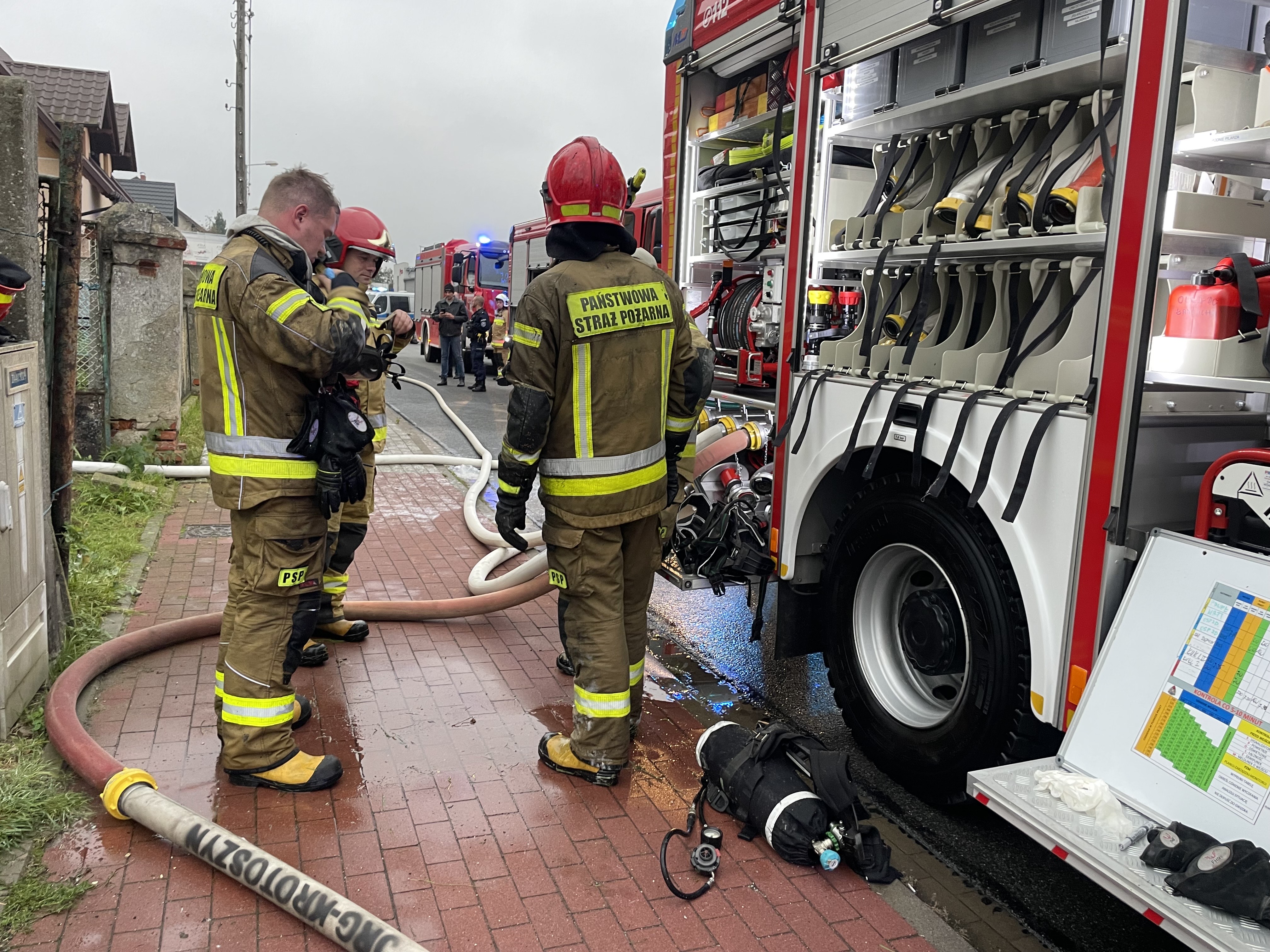 Po przeprowadzonym rozpoznaniu oraz zabezpieczeniu terenu objętego działaniami, Kierujący Działaniem Ratowniczym wyznaczył dwie roty, które po siłowym wejściu do obiektu mieszkalnego wprowadziły do wnętrza budynku prąd gaśniczy wody, prowadząc działania gaśnicze połączone z przeszukaniem pomieszczeń mieszkalnych pod kątem występowania osób mogących przebywać w obiekcie objętym działaniami. Równolegle do tych działań odłączono zasilanie obiektu oraz za zgodą właściciela sprawiono podnośnik hydrauliczny na sąsiedniej posesji od strony szczytowej uzyskując możliwość podania kolejnego prądu gaśniczego bezpośrednio na palącą się powierzchnię dachową. Po sprawdzeniu poszczególnych kondygnacji budynku mieszkalnego i dotarciu kolejnych sił i środków wprowadzono kolejną linię wężową po klatce schodowej zwiększając skuteczność działań gaśniczych.