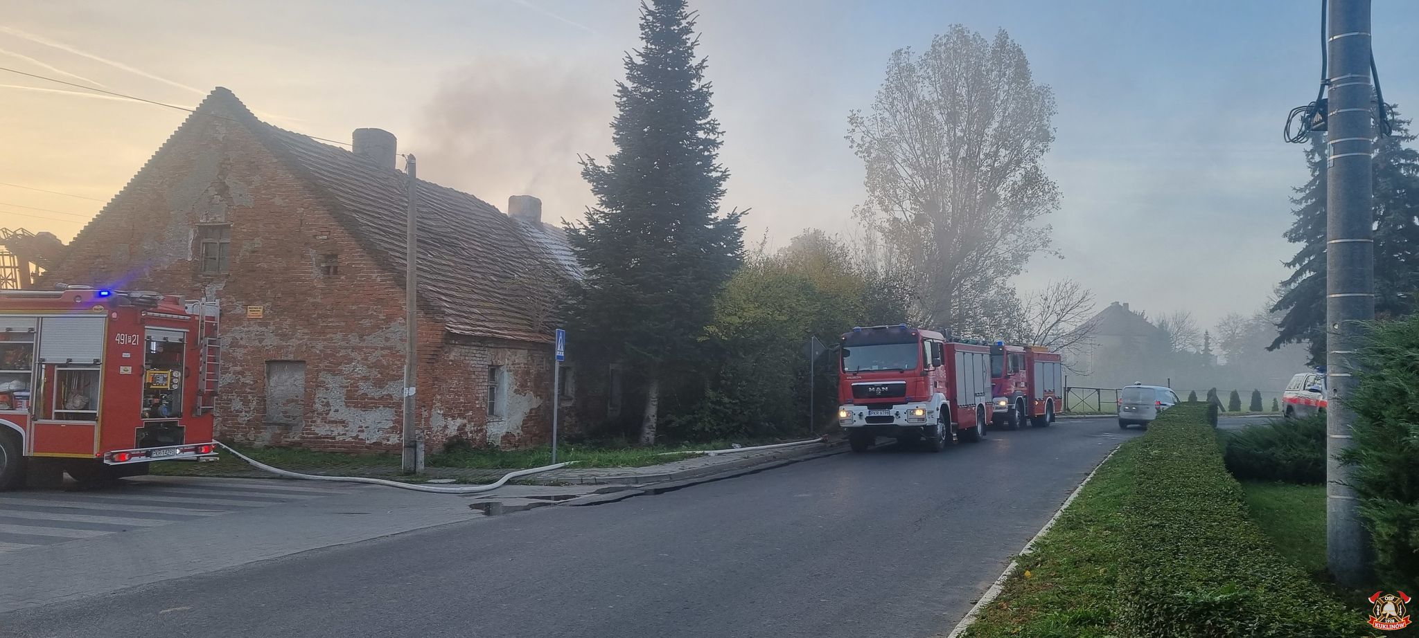 W czwartek 28 października 2021 roku o godzinie 7.30 otrzymaliśmy zgłoszenie o pożarze pustostanu w miejscowości Kuklinów (gmina Kobylin). Z informacji zawartej w zgłoszeniu wynikało, że w budynku może przebywać osoba bez stałego miejsca zamieszkania.