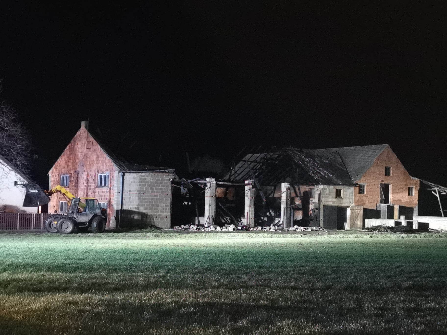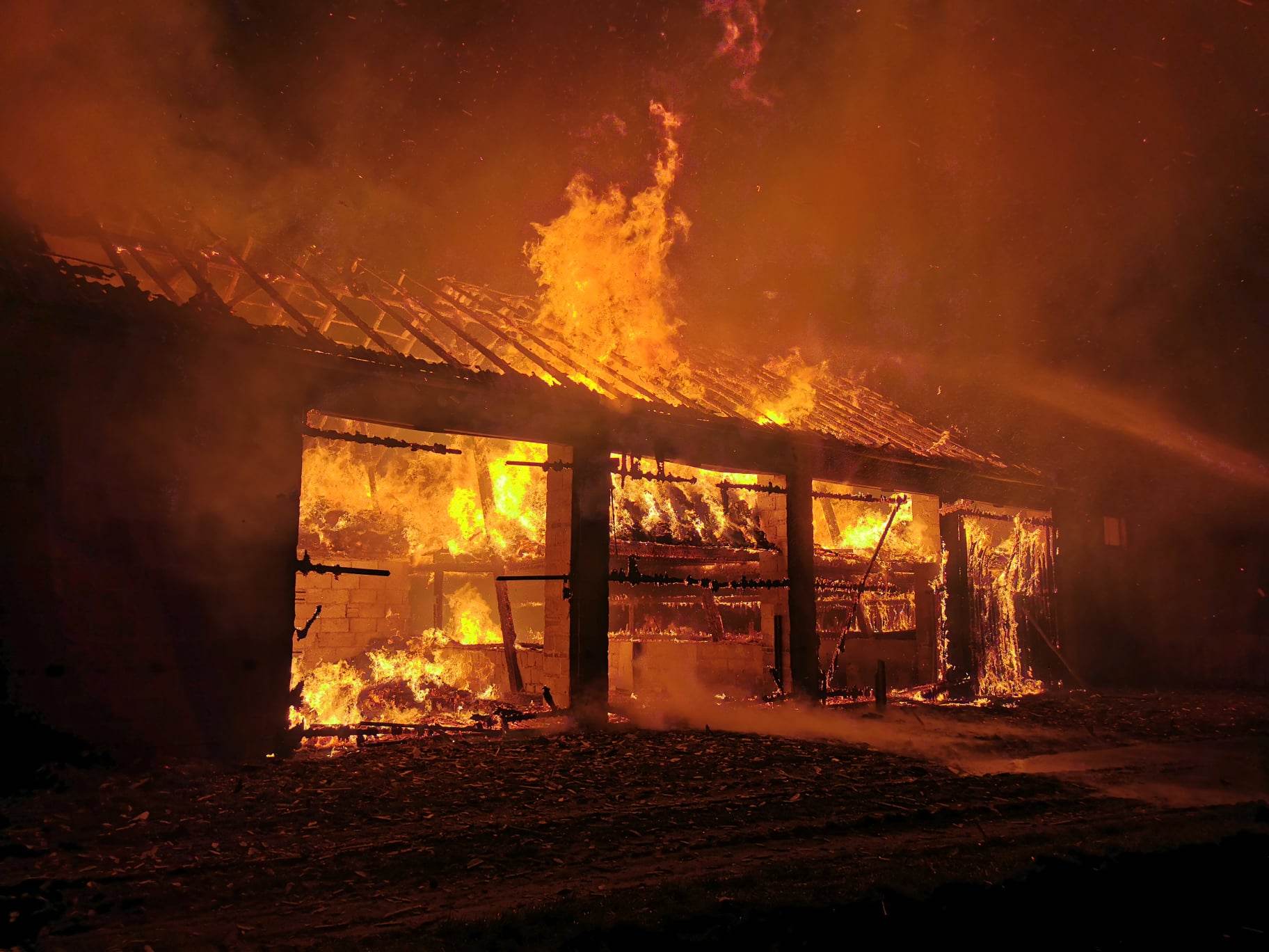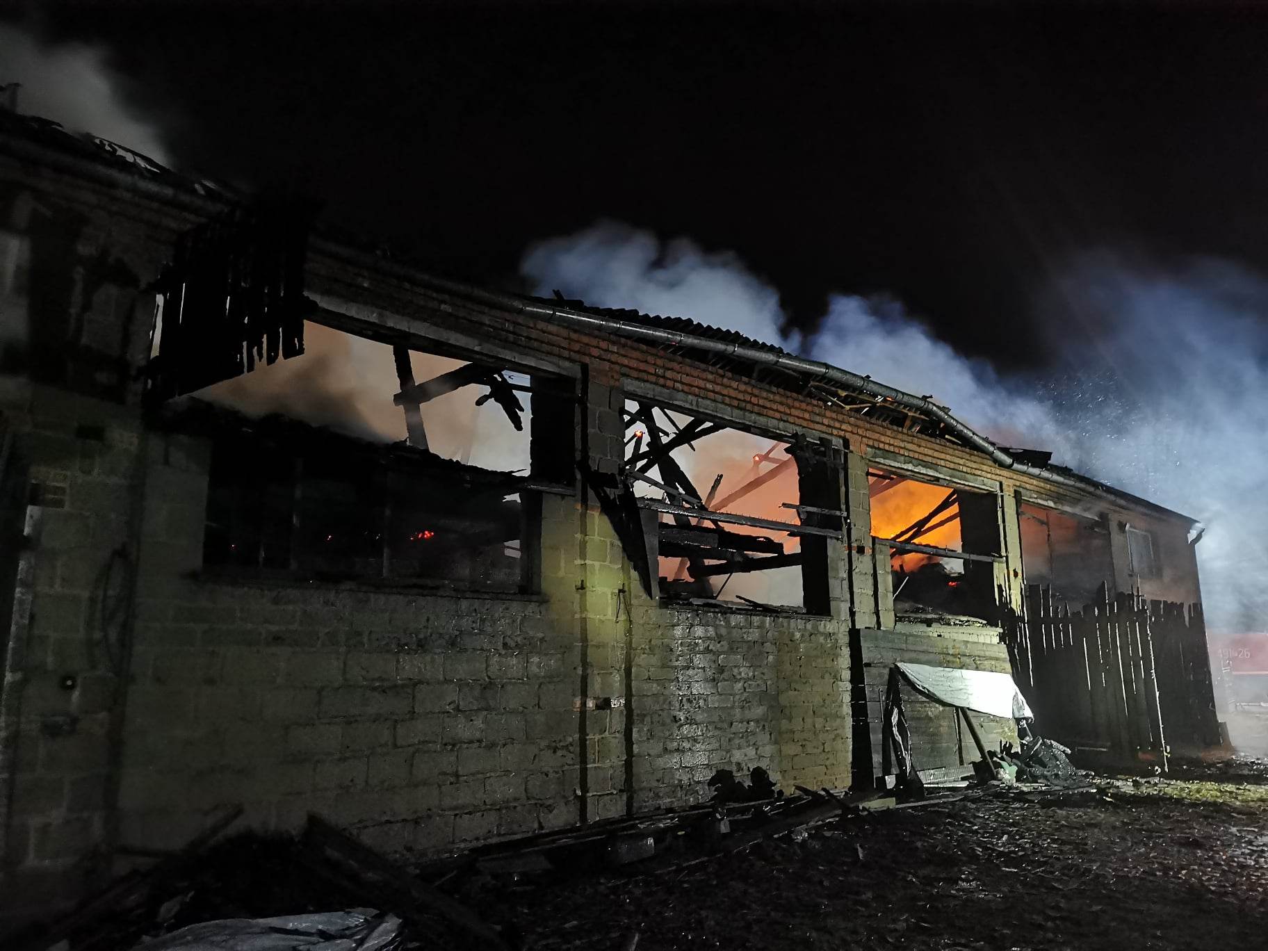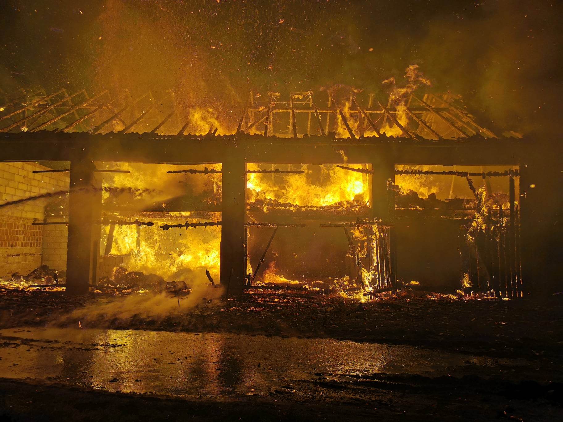 W chwili przybycia pierwszych zastępów pożarniczych obiekt, w którym składowana była słoma palił się w całej objętości. Płomienie wychodziły przez przepalony dach i bramy. Pożar stanowił realne zagrożenie dla budynków gospodarczych, które przylegały bezpośrednio do stodoły.