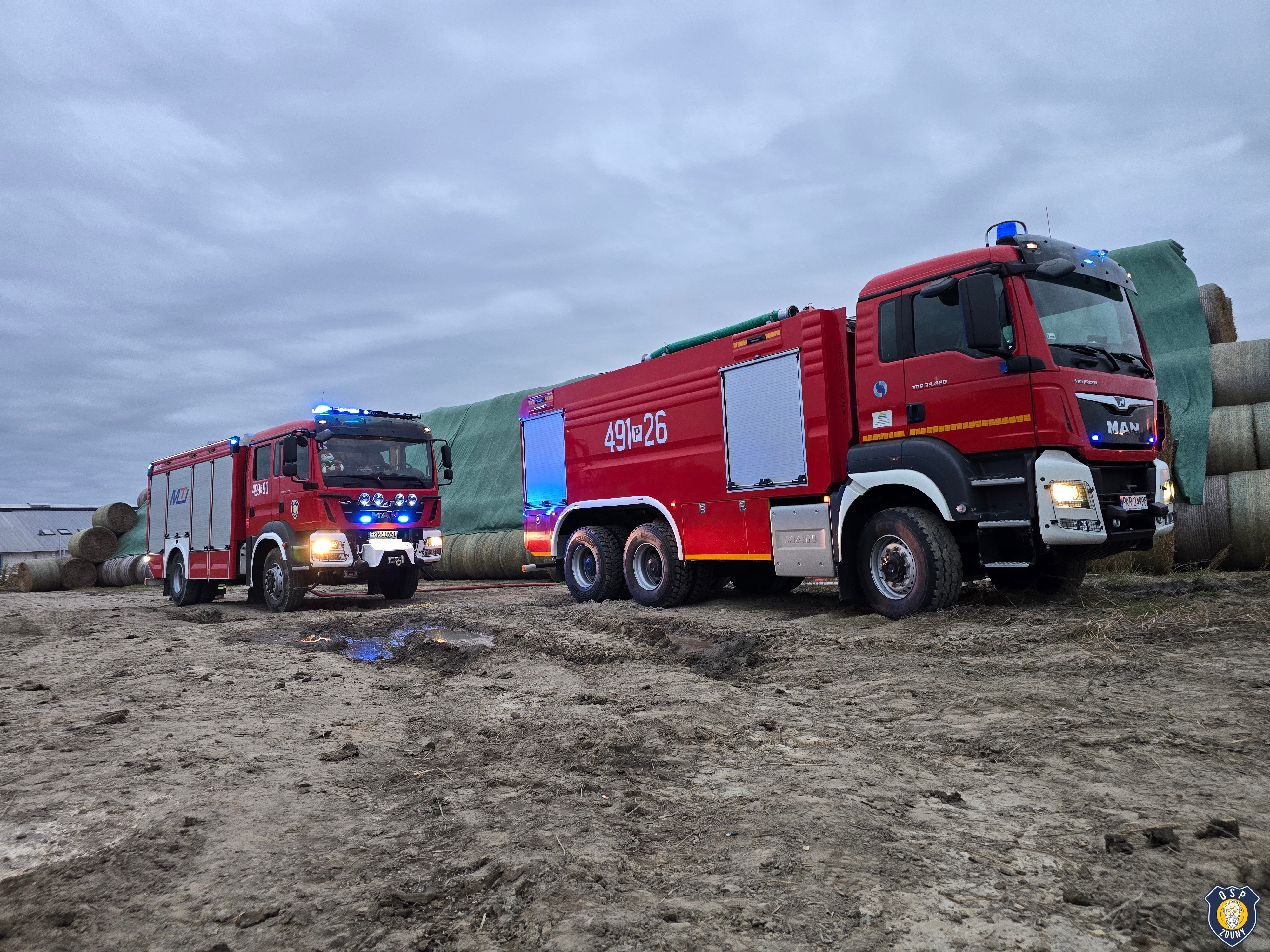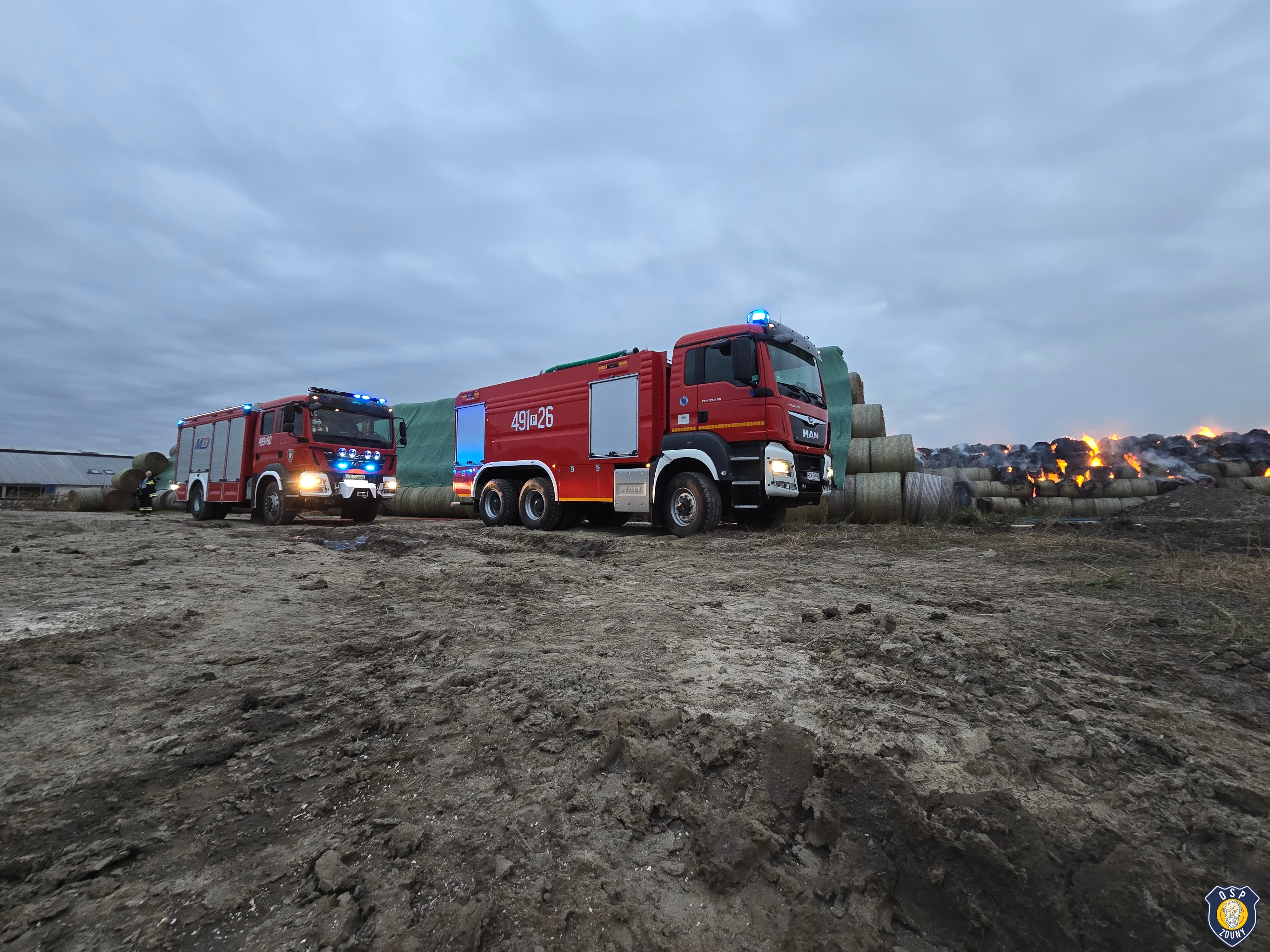 Zgłoszenie o pożarze w miejscowości Gorzupia wpłynęło do dyżurnego krotoszyńskiej straży w piątek o godzinie 13:40 z którego wynikało że palą się baloty siana zgromadzone w dużym stogu.