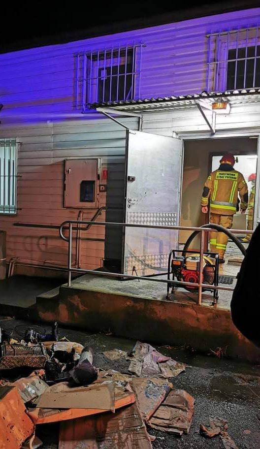 Działania straży pożarnej polegało na zabezpieczeniu miejsca zdarzenia. Strażacy wyposażeni w sprzęt ochrony układu oddechowego weszli do środka budynku i podali prąd gaśniczy piany sprężonej na palące się wyposażenie hali. Podjęte działania gaśnicze doprowadziły do szybkiego opanowania pożaru. Nadpalone wyposażenie hali strażacy wynieśli na zewnątrz i dogasili wodą. Obiekt na bieżąco monitorowano urządzeniami pomiarowymi, które po usunięciu wszystkich materiałów na zewnątrz i oddymieniu pomieszczeń potwierdziły likwidację zagrożenia. Na tym działania zakończono i zastępy wróciły do miejsca stacjonowania.