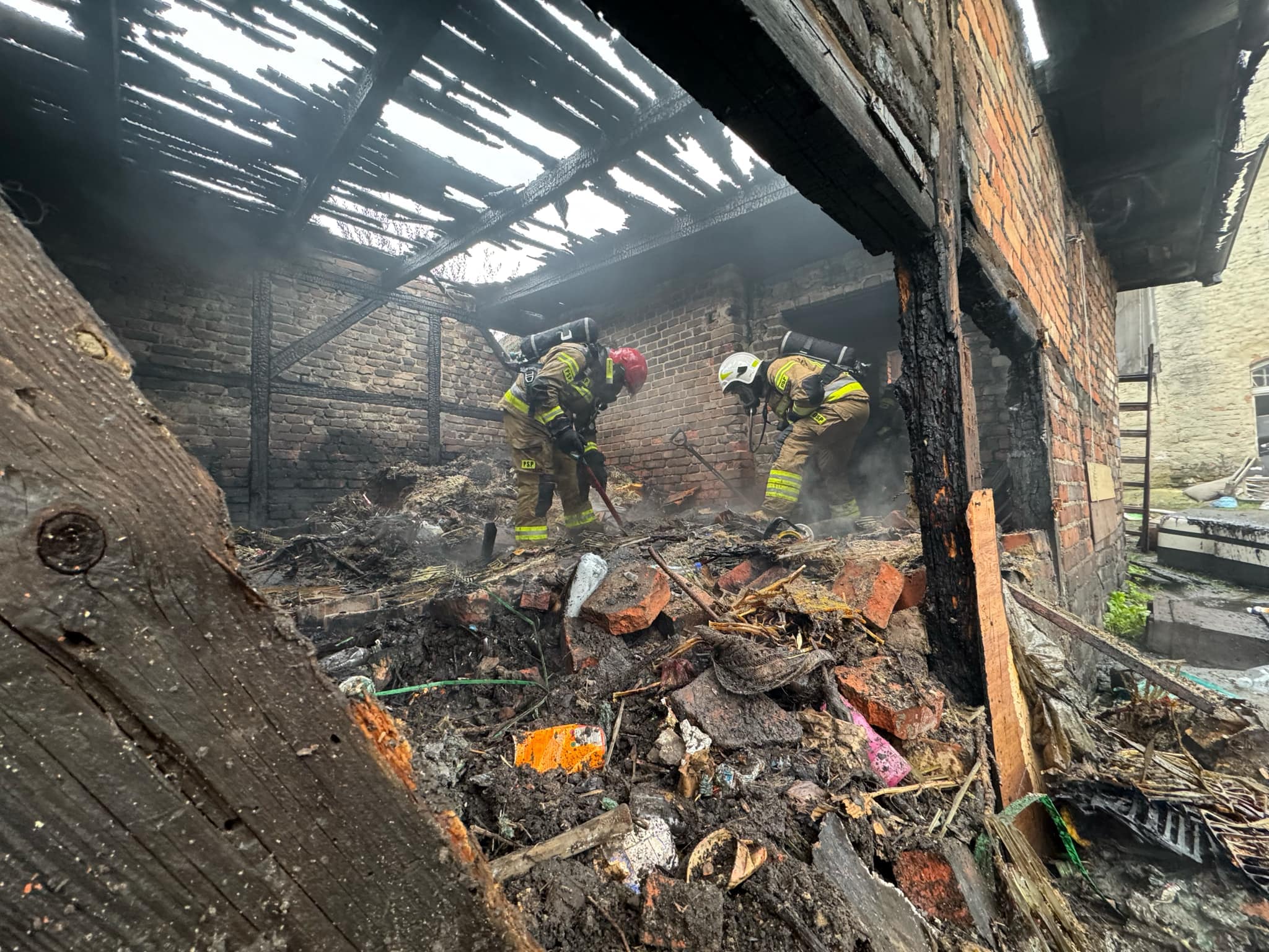 Pożar zabudowań gospodarczych w centrum Krotoszyna