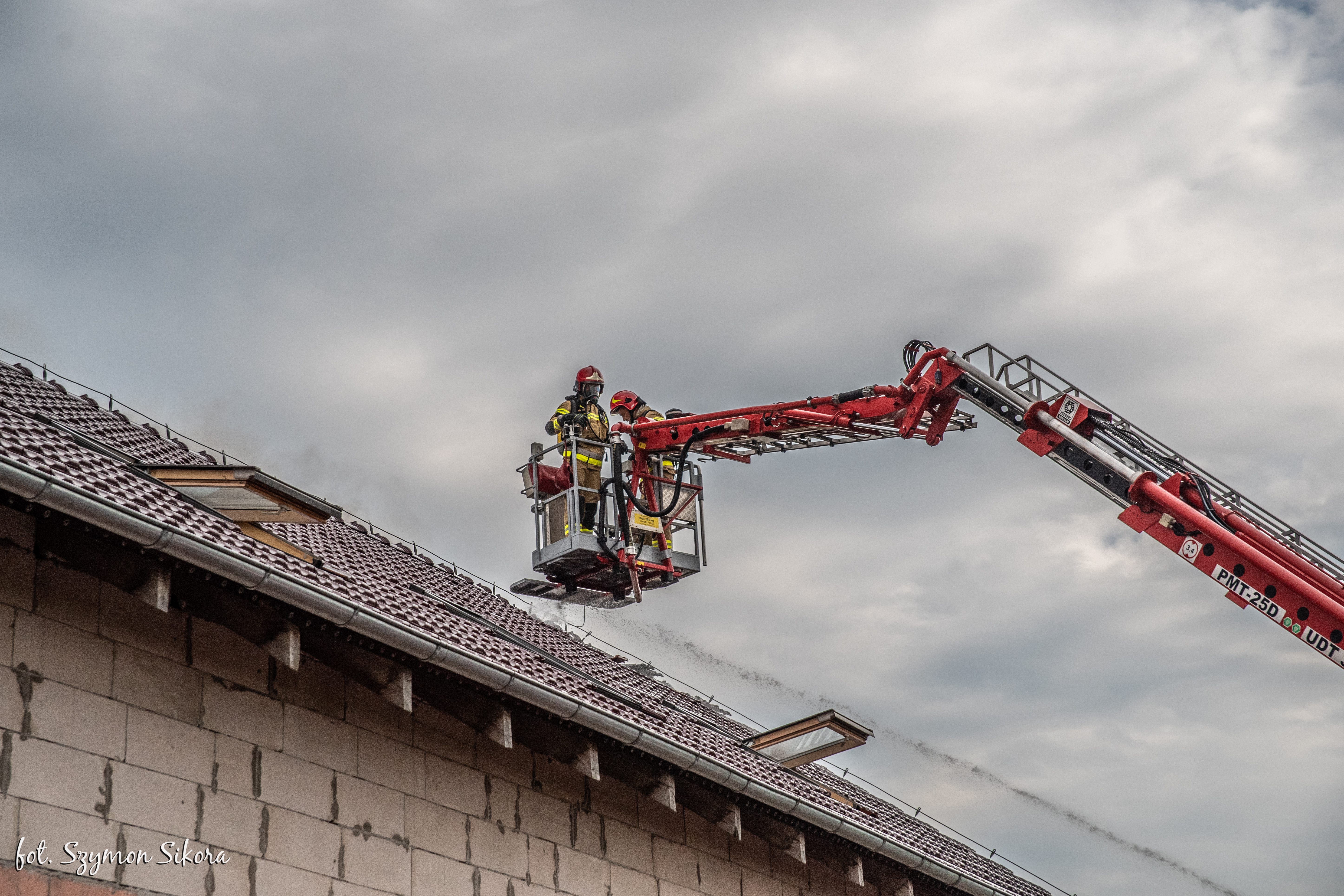Działania straży pożarnej polegały na podaniu dwóch prądów gaśniczych w natarciu na palący się obiekt oraz dwóch prądów gaśniczych w obronie zagrożonego obiektu. Po stłumieniu pożaru KDR podjął decyzję o częściowej rozbiórce pokrycia dachowego oraz zabudowy poddasza w budynku stolarni w celu dotarcia do ukrytych zarzewi ognia i skutecznym jego dogaszeniu. Po całkowitym ugaszeniu pożaru usunięto na zewnątrz nadpalone, drewniane elementy konstrukcji dachowej, nadpalone elementy wyposażenia zakładu i składowane drewno. Obiekt został oddymiony i przewietrzony oraz sprawdzony kamerą termowizyjną – urządzenie pomiarowe potwierdziło likwidację zagrożenia. W celu zabezpieczenia zakładu stolarskiego przed opadami atmosferycznymi strażacy pomogli zabezpieczyć plandeką zniszczony dach.