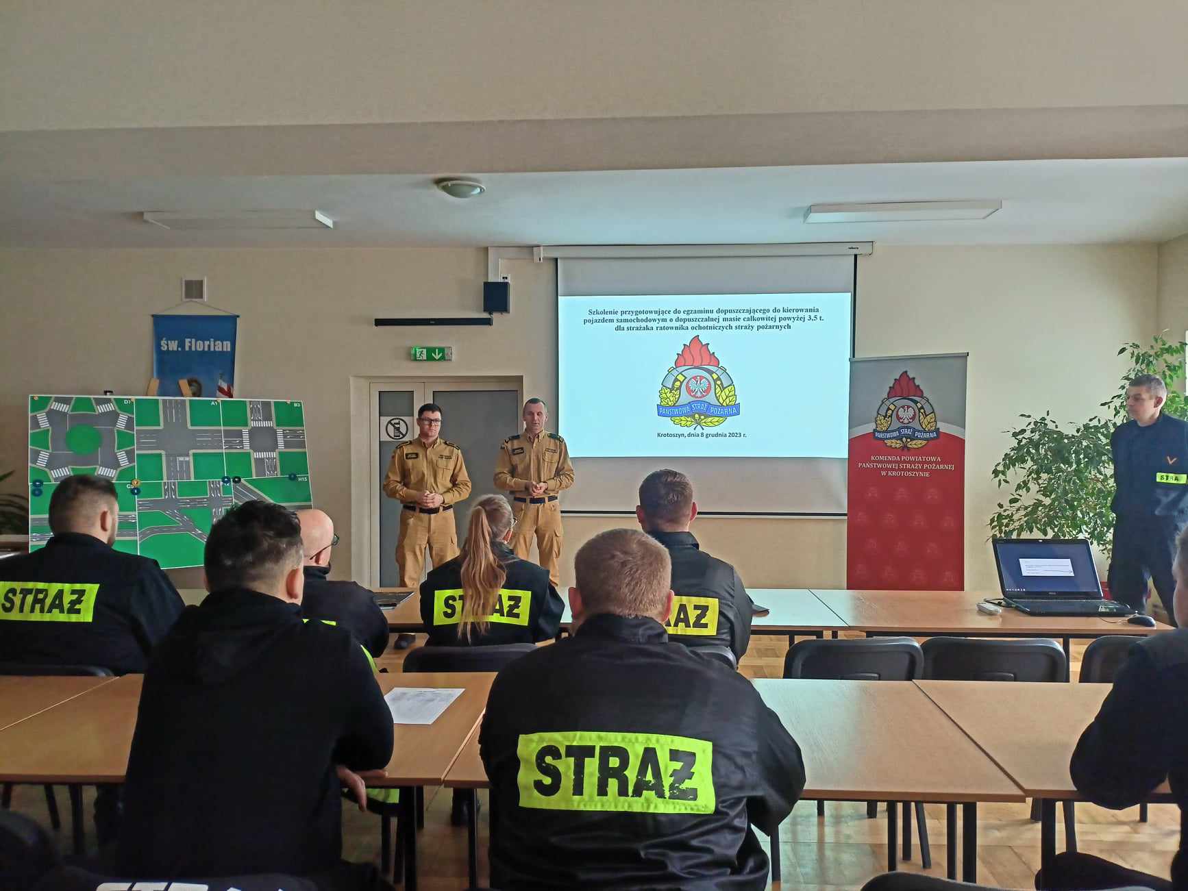 8 grudnia 2023 roku w Komendzie Powiatowej Państwowej Straży Pożarnej w Krotoszynie rozpoczęło się szkolenie dla strażaków ratowników Ochotniczych Straży Pożarnych przygotowujące do egzaminu dopuszczającego do kierowania pojazdem samochodowym o masie całkowitej powyżej 3,5 tony.