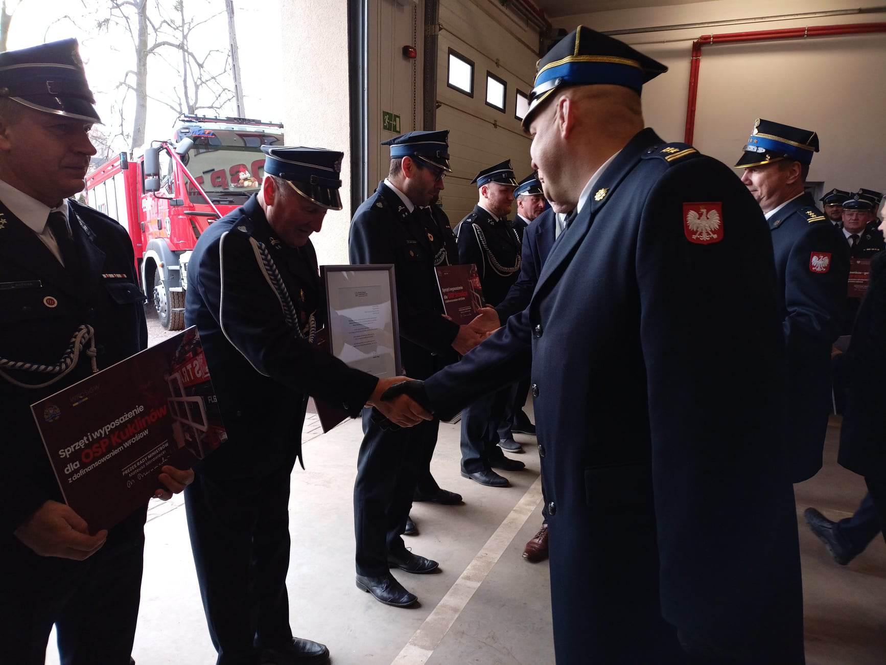 Po części oficjalnej związanej z przekazaniem przez zaproszonych gości pojazdów pożarniczych dla strażaków z jednostki OSP Zduny odbyło się wręczenie Listów Gratulacyjnych przedstawicielom jednostek OSP Baszków i OSP Czarny Sad, którzy zakwalifikowali się na dofinansowanie zakupu nowych pojazdów ratowniczo-gaśniczych oraz przedstawicielom jednostek OSP Borzęciczki, OSP Kuklinów, OSP Nowa Wieś, OSP Orpiszew, OSP Smolice i OSP Sulmierzyce, które zakwalifikowały się do rządowego wsparcia na dofinansowanie zakupu sprzętu i wyposażenia jednostek Ochotniczych Straży Pożarnych. Listy Gratulacyjne wręczyli obecni na uroczystości parlamentarzyści i samorządowcy oraz Zastępca Wielkopolskiego Komendanta Wojewódzkiego Państwowej Straży Pożarnej st. bryg. Jarosław Zamelczyk w asyście Komendanta Powiatowego PSP w Krotoszynie st. bryg. Marka Kalaka.