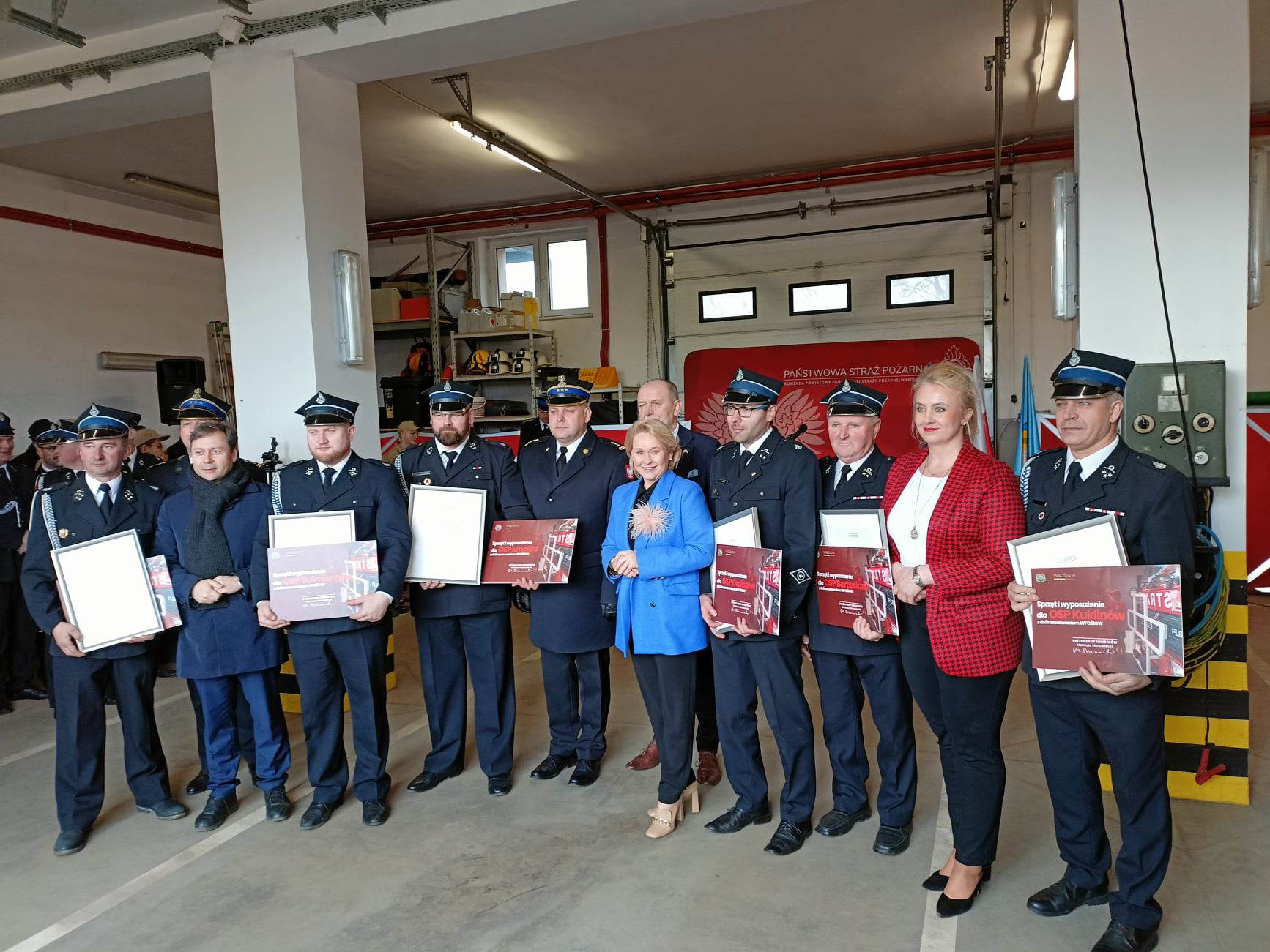 W uroczystym przekazaniu pojazdów pożarniczych udział wzięli między innymi: