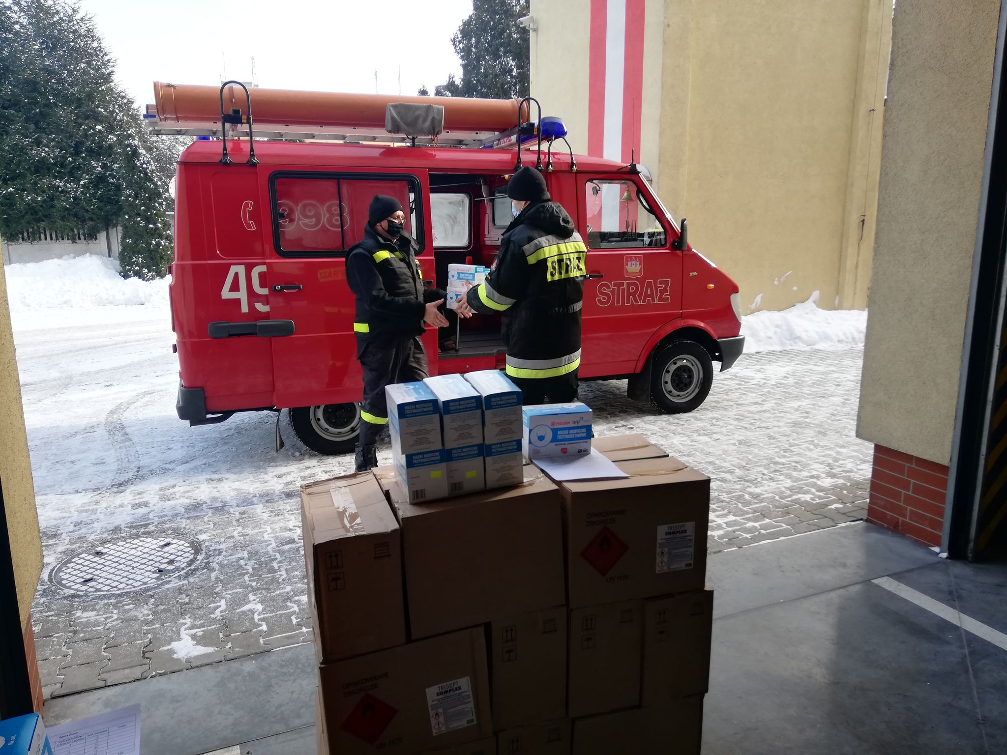 Środki ochrony indywidualnej, które trafiły do Komendy Powiatowej Państwowej Straży Pożarnej w Krotoszynie, zostały w piątek 12 lutego 2021 roku przekazane jednostkom ochrony przeciwpożarowej, wspierającym Narodowy Program Szczepień.