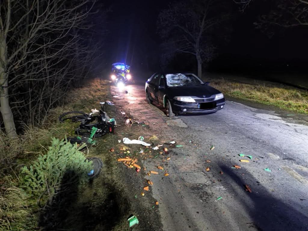 Po przybyciu na miejsce wypadku w przeprowadzonym rozpoznaniu ustalono, że rowerzysta znajduje się pod opieką zespołu ratownictwa medycznego. Pozostałych trzech uczestników zdarzenia podróżujących pojazdem osobowym nie odniosło żadnych obrażeń. Droga powiatowa w miejscu wypadku została całkowicie zablokowana.