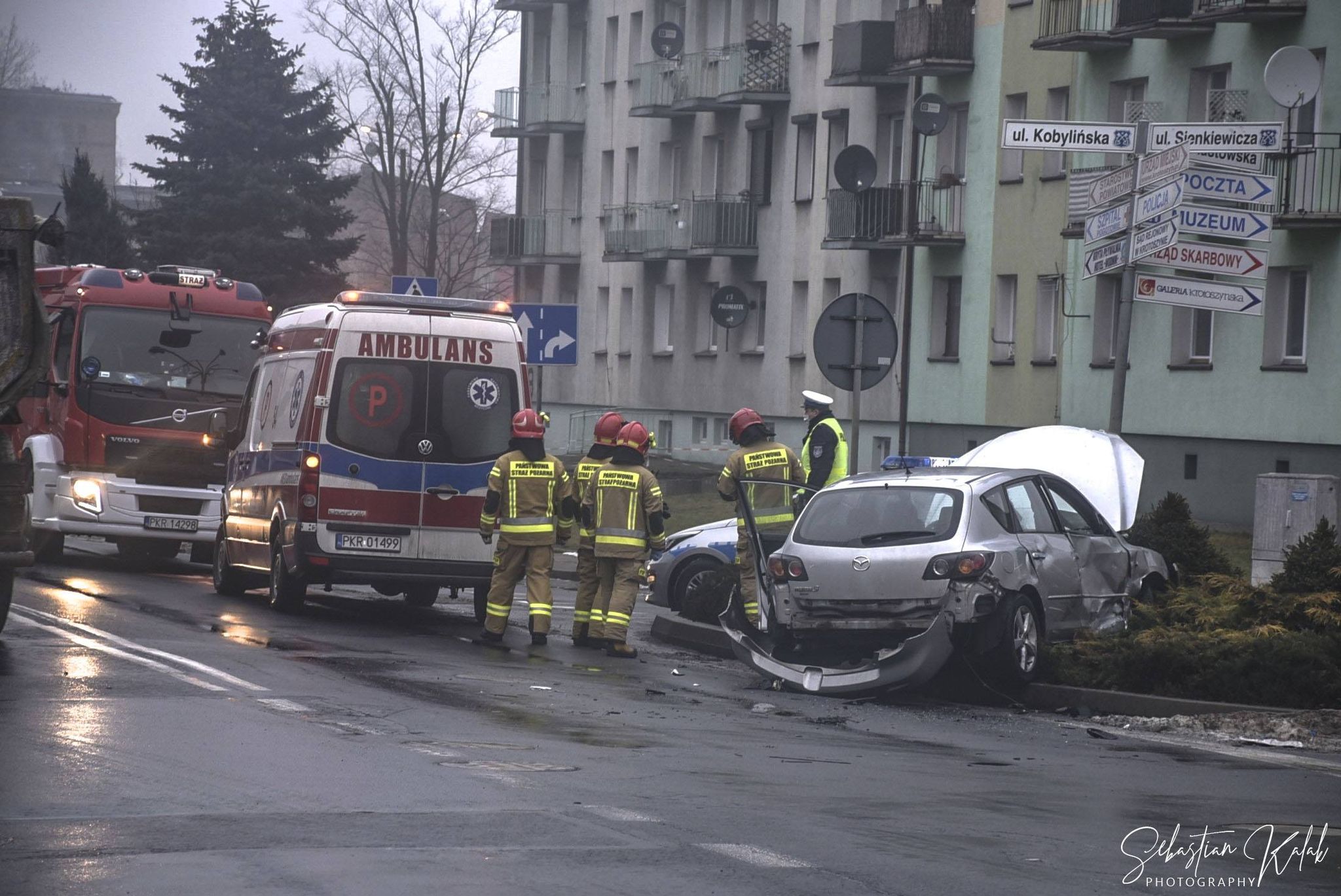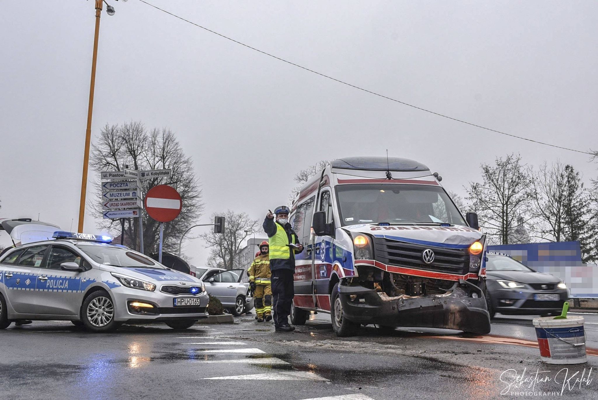 Kolizja pojazdu uprzywilejowanego z samochodem osobowym.