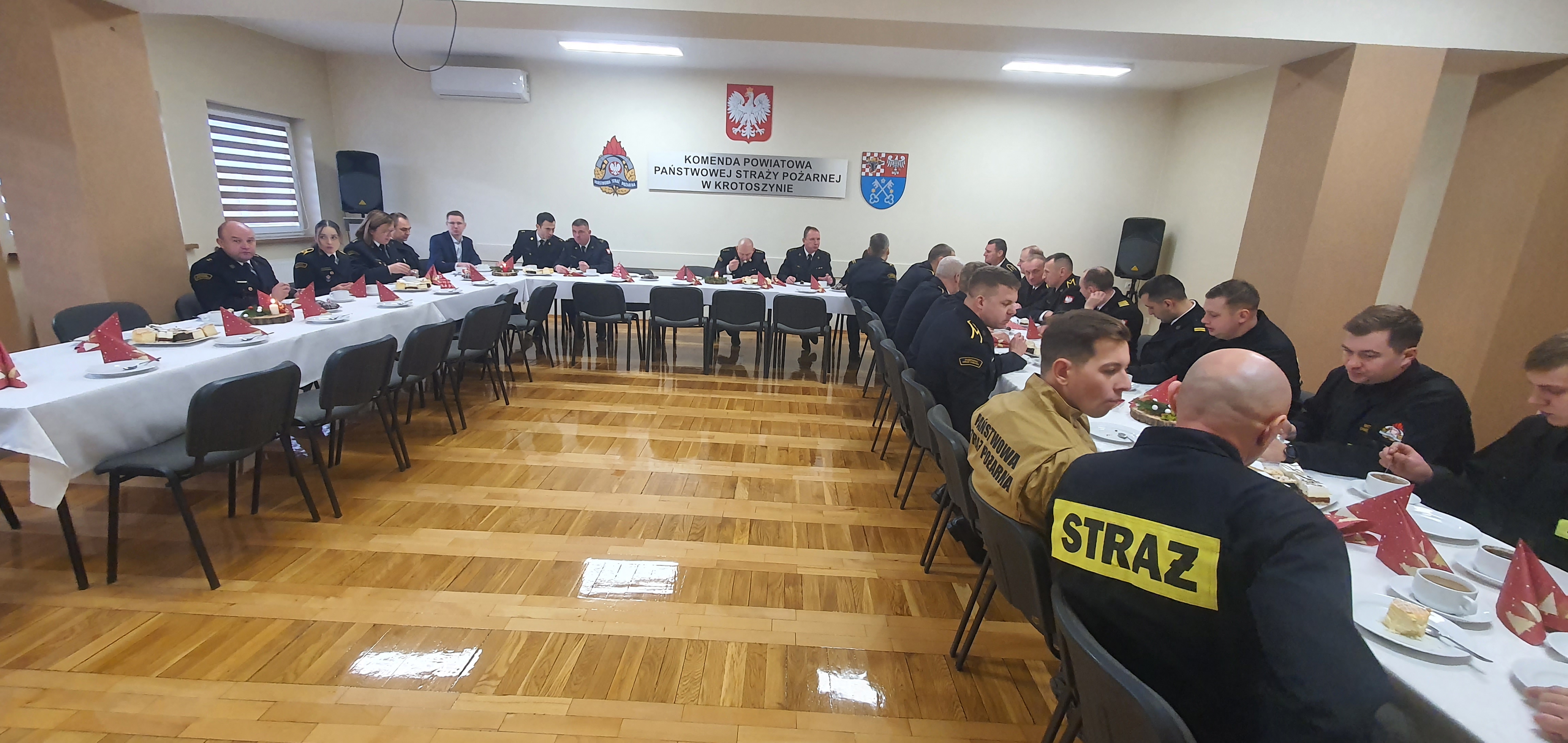 20 grudnia 2024 r. w Komendzie Powiatowej PSP w Krotoszynie odbyło się uroczyste spotkanie wszystkich funkcjonariuszy i pracowników cywilnych. W tym przedświątecznym okresie przyszedł czas, aby wspólnie zatrzymać się na chwilę, zasiąść do stołu i podsumować mijający rok.