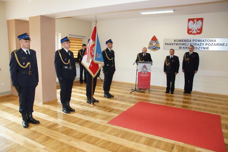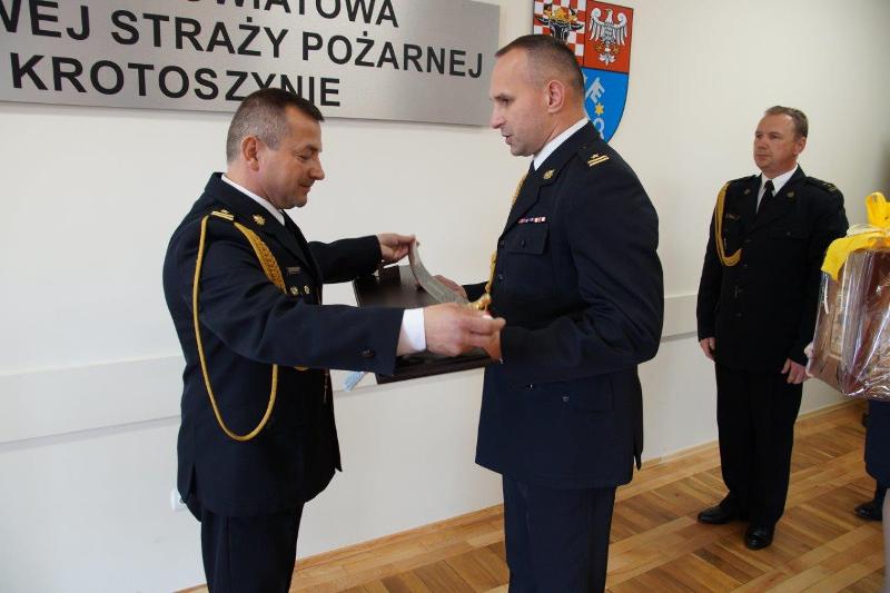Z tej właśnie okazji 25 czerwca br. w świetlicy Komendy Powiatowej PSP w Krotoszynie odbyła się uroczysta zbiórka podczas której st. bryg Jacek Strużyński pożegnał się ze sztandarem Komendy Powiatowej PSP w Krotoszynie. Uroczyste zdanie i przejęcie obowiązków komendanta powiatowego PSP w Krotoszynie nastąpiło 26 czerwca br. w siedzibie Komendy Wojewódzkiej PSP w Poznaniu. Decyzje o odwołaniu ze stanowiska oraz powierzeniu obowiązków komendanta powiatowego PSP w Krotoszynie wręczył wielkopolski komendant wojewódzki bryg. Dariusz Matczak w obecności swoich zastępców bryg. Jarosława Zamelczyka oraz mł. bryg. Roberta Natunewicza.