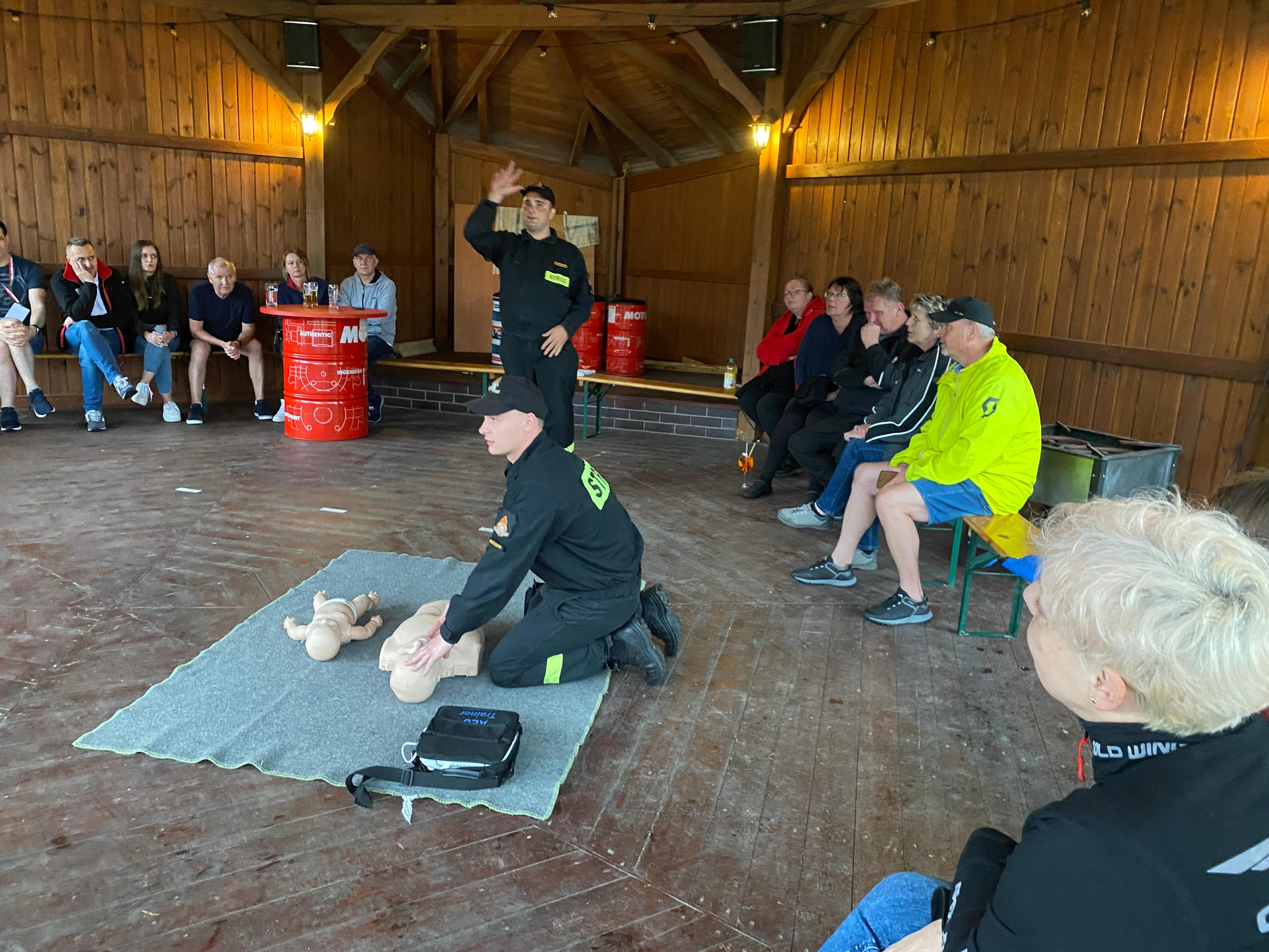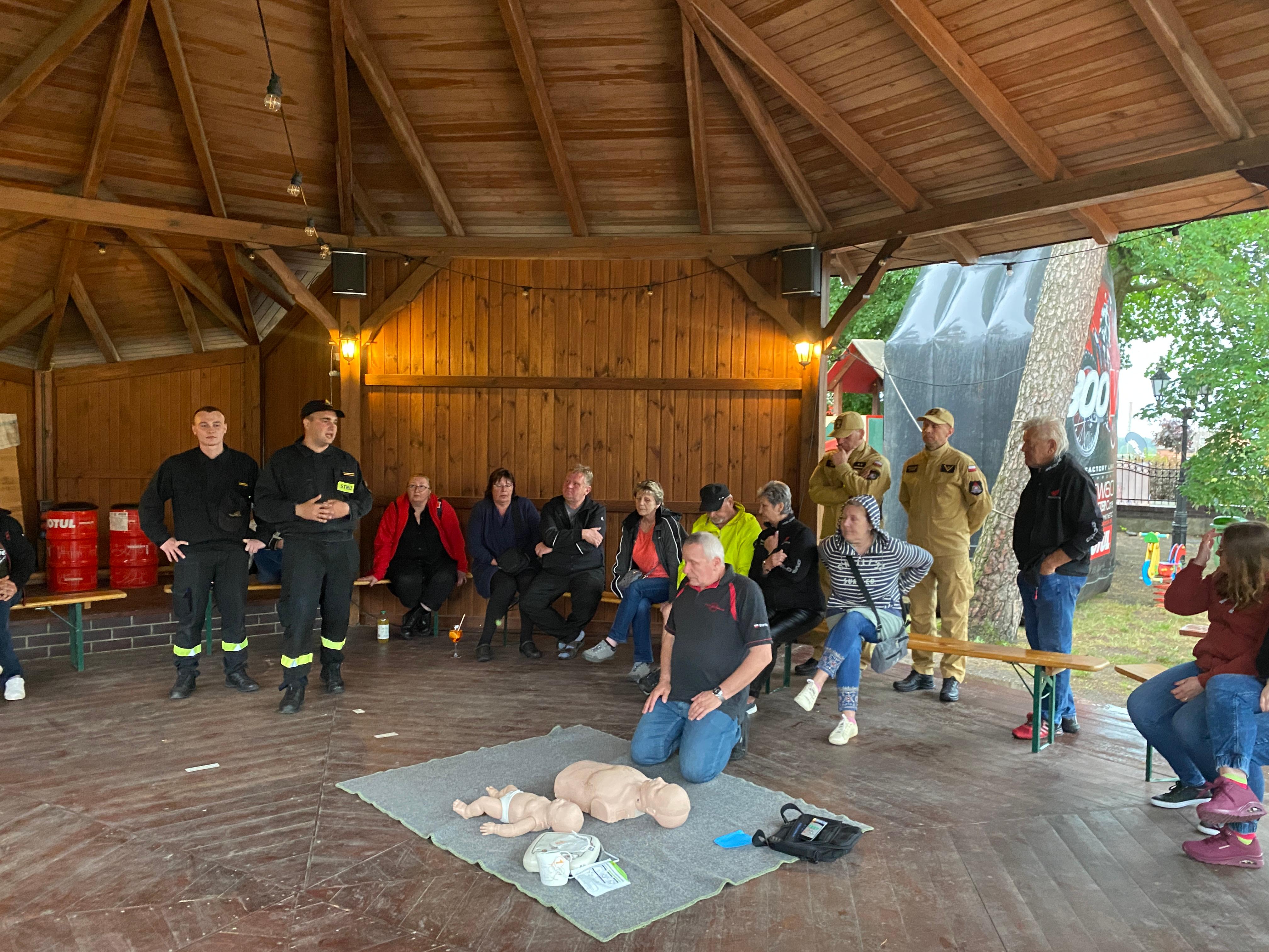 W piątek 24 maja 2024 roku na terenie Centrum Konferencyjno – Szkoleniowego Wawrzyniak w Perzycach rozpoczęło się spotkanie sympatyków motocykli. Na prośbę organizatorów przedsięwzięcia funkcjonariusze Komendy Powiatowej Państwowej Straży Pożarnej w Krotoszynie przeprowadzili szkolenie z zakresu pierwszej pomocy medycznej skierowane dla miłośników jednośladów.