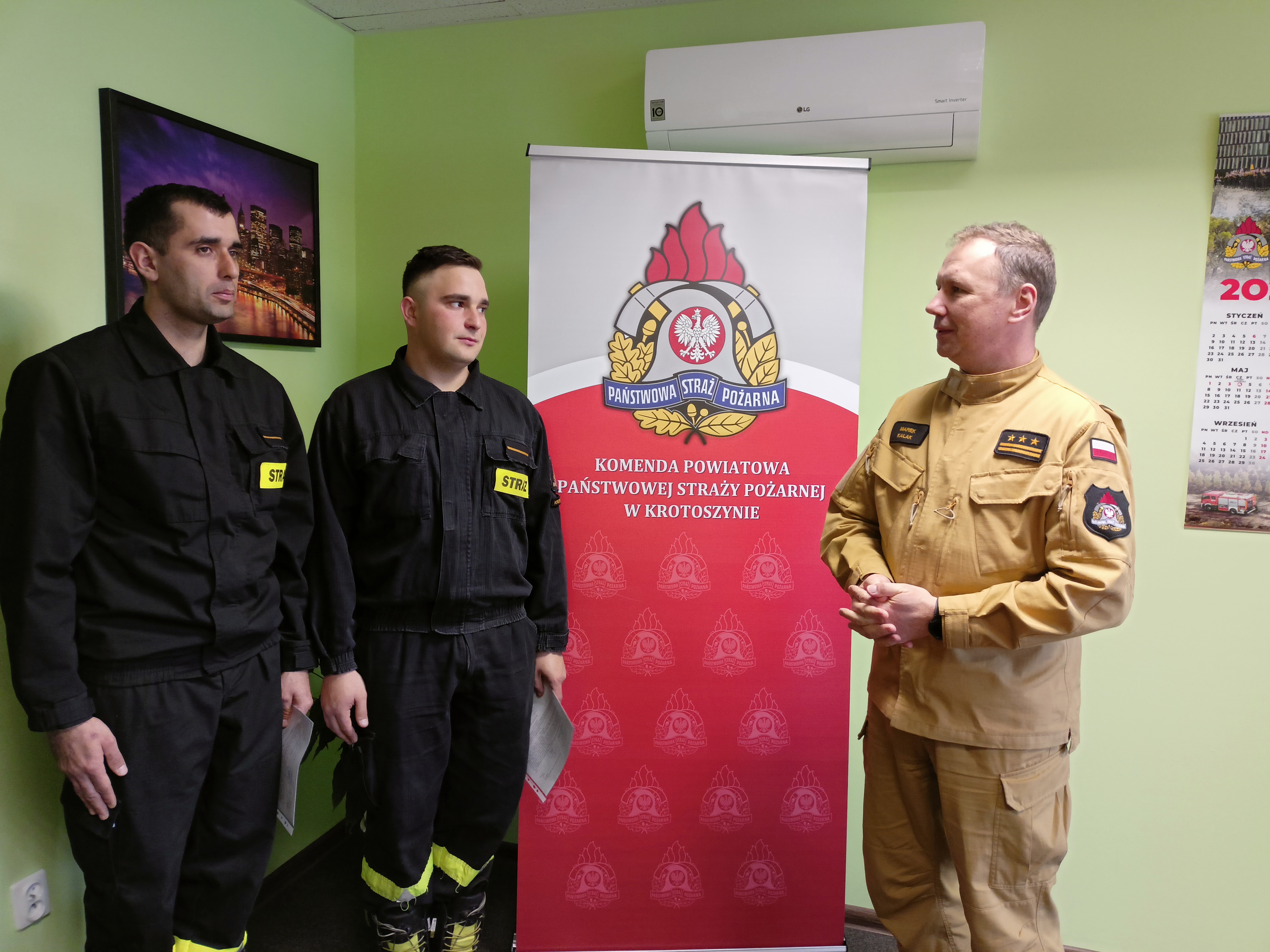 We wtorek 18 kwietnia 2023 roku komendant powiatowy Państwowej Straży Pożarnej w Krotoszynie st. bryg. Marek Kalak w obecności dowództwa Jednostki Ratowniczo-Gaśniczej w Krotoszynie, wręczył decyzje o zmianie stanowisk służbowych dwóm funkcjonariuszom krotoszyńskiej Komendy. Awans na wyższe stanowisko służbowe, otrzymali: