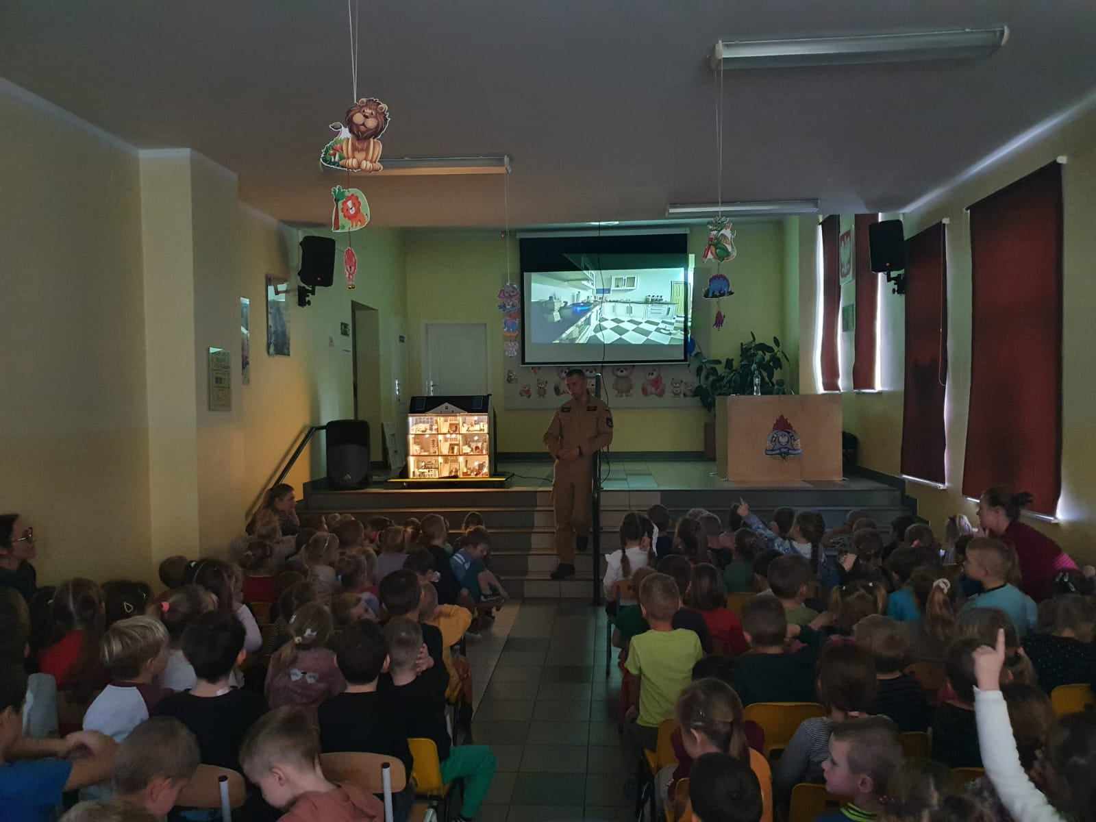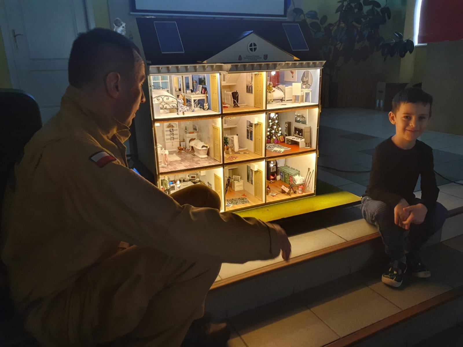 Elementarne zasady bezpieczeństwa dostosowane do wieku słuchaczy omówione zostały w oparciu o prezentację zagrożeń w domu jednorodzinnym przy wykorzystaniu mobilnego symulatora zagrożeń. Funkcjonariusz podczas spotkania zwrócił dzieciom uwagę na zasady bezpiecznego wypoczynku w czasie wolnym od przedszkola oraz na inne zagrożenia wynikające z życia codziennego. Przedszkolaki miały również okazję poznać sposoby powiadamiania służb ratunkowych.