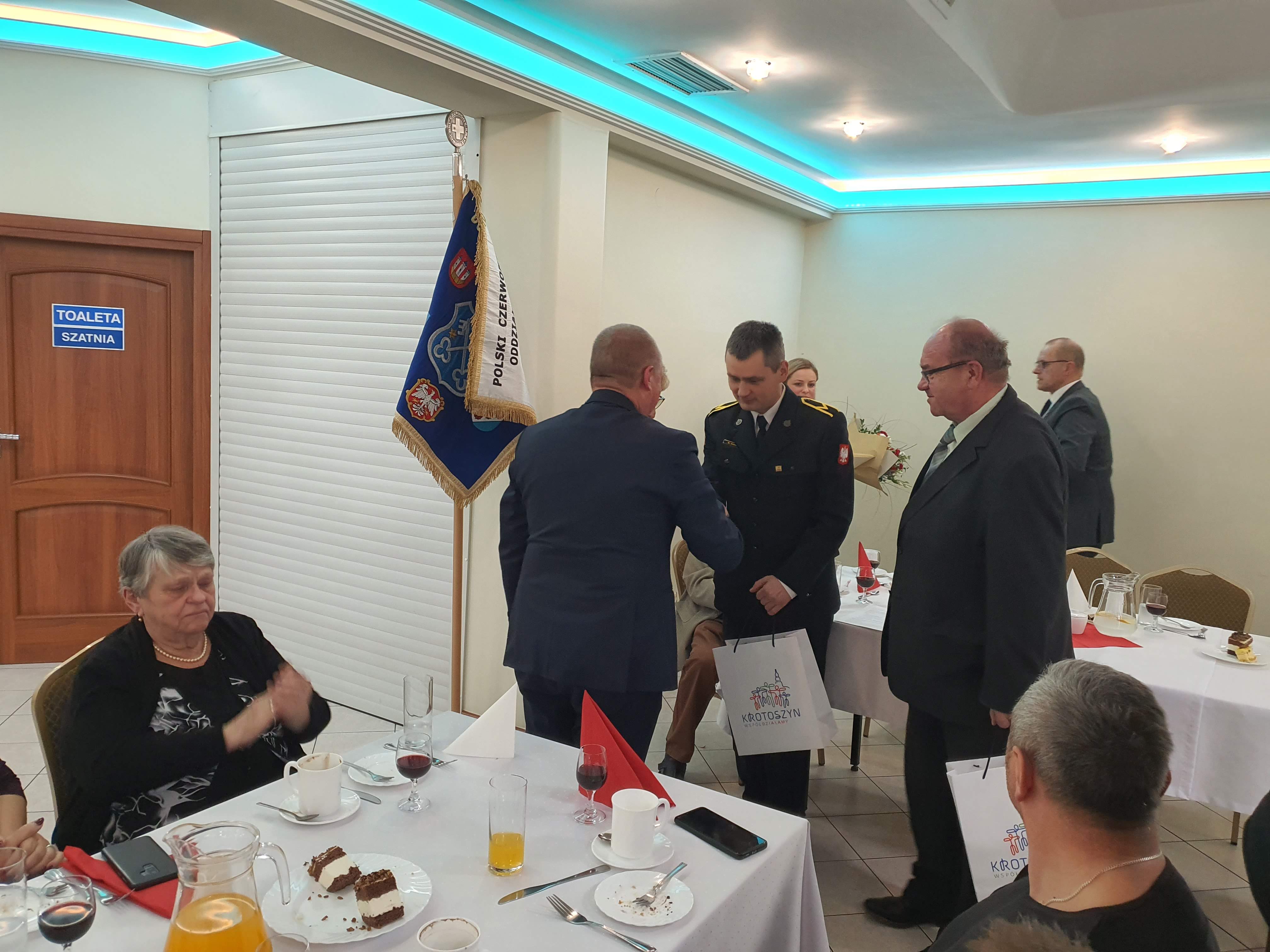 W gronie krwiodawców uczestniczących w spotkaniu nie zabrakło również funkcjonariuszy komendy powiatowej PSP w Krotoszynie na czele z Zastępcą Komendanta Powiatowego PSP w Krotoszynie mł. bryg. Zbigniewiem Foltyniewiczem. Warto podkreślić, że Klub Honorowych Dawców Krwi przy krotoszyńskiej komendzie funkcjonuje nieprzerwanie od 27 października 1979 roku. Strażacy nie tylko bezinteresownie oddają krew, ale także corocznie czynnie włączają się w organizację zawodów powiatowych pierwszej pomocy dla szkół ponadgimnazjalnych pod patronatem PCK.