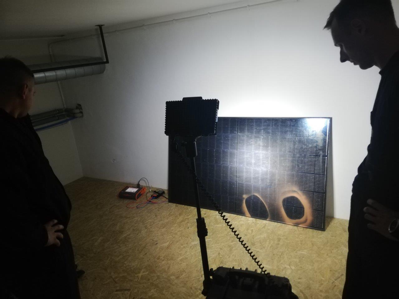 W części praktycznej sprawdzono parametry pracy panelu podczas zastosowania różnych metod ograniczających produkcje energii. W ostatnim dniu szkolenia sprawdzono zachowanie się panelu w warunkach pożarowych.
