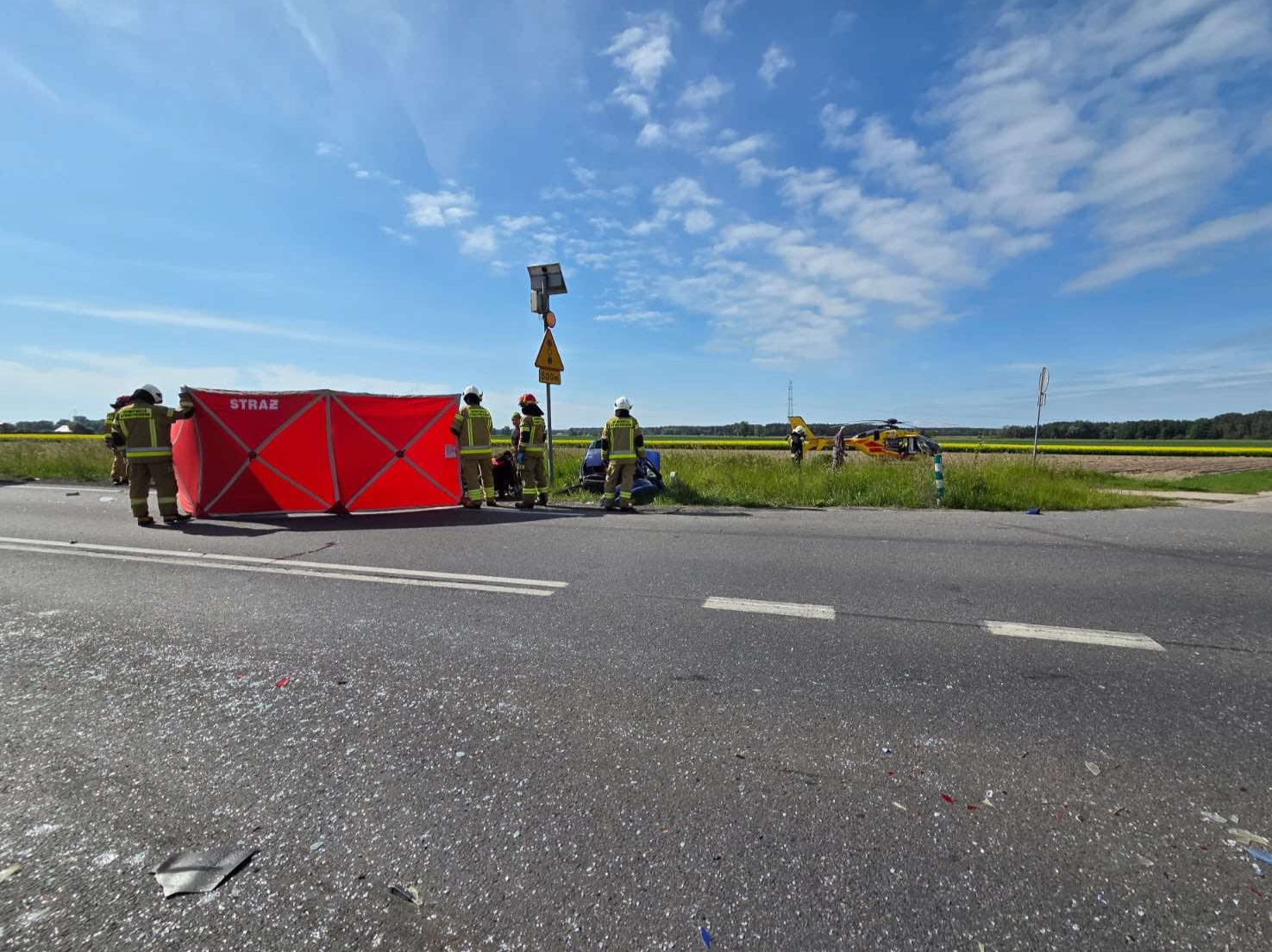 Działania straży pożarnej polegały na zabezpieczeniu miejsca zdarzenia oraz udzieleniu kwalifikowanej pierwszej pomocy osobom poszkodowanym, w tym przejęciu prowadzenia resuscytacji krążeniowo-oddechowej u kierowcy pojazdu osobowego. Po przybyciu na miejsce zdarzenia Zespołu Ratownictwa Medycznego oraz Lotniczego Pogotowia Ratunkowego, personel medyczny wdrożył medyczne czynności ratownicze. Niestety, mimo kilkudziesięciu minut wspólnych działań służb ratowniczych, funkcje życiowe kierowcy samochodu osobowego nie powróciły.
