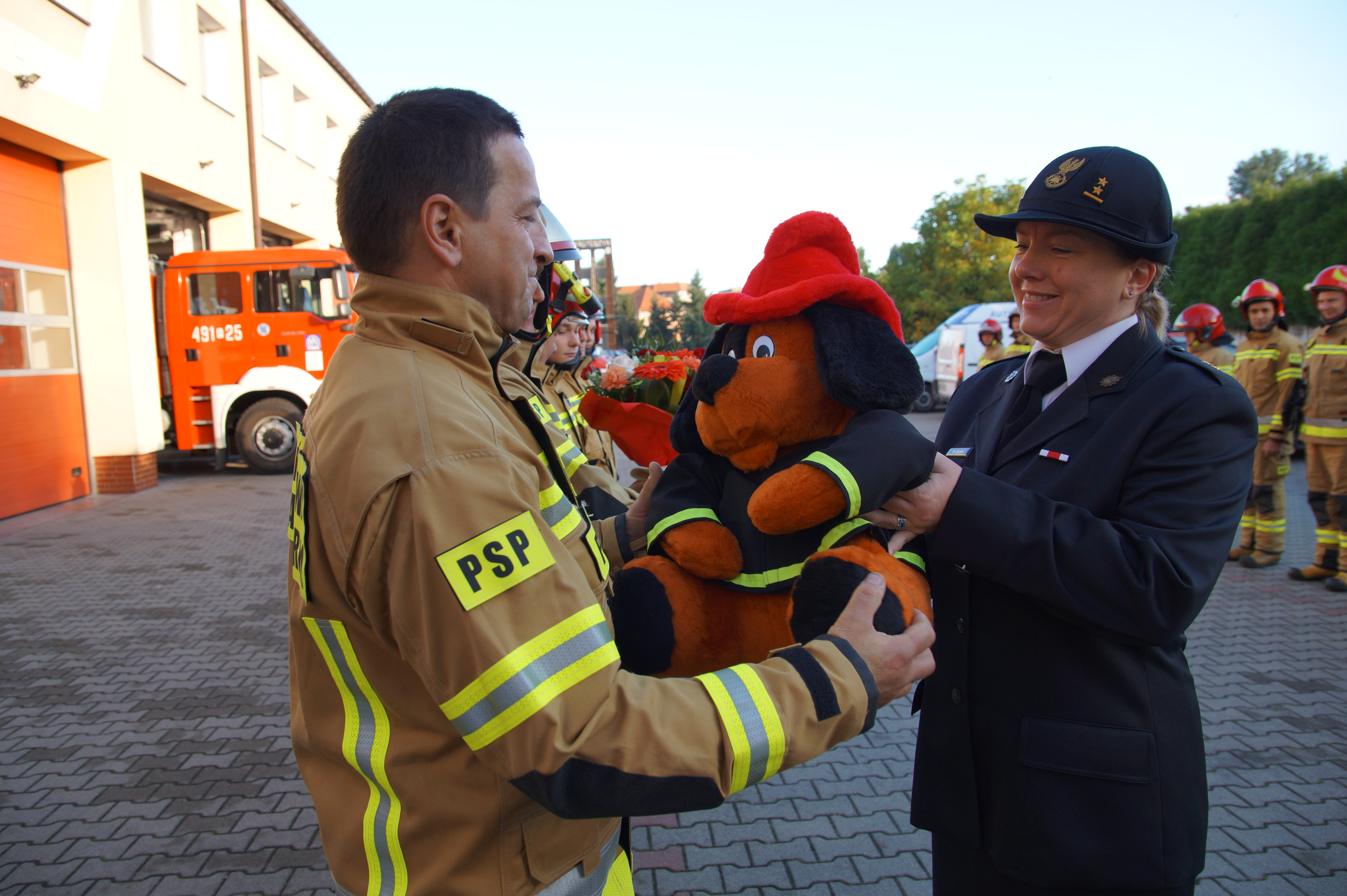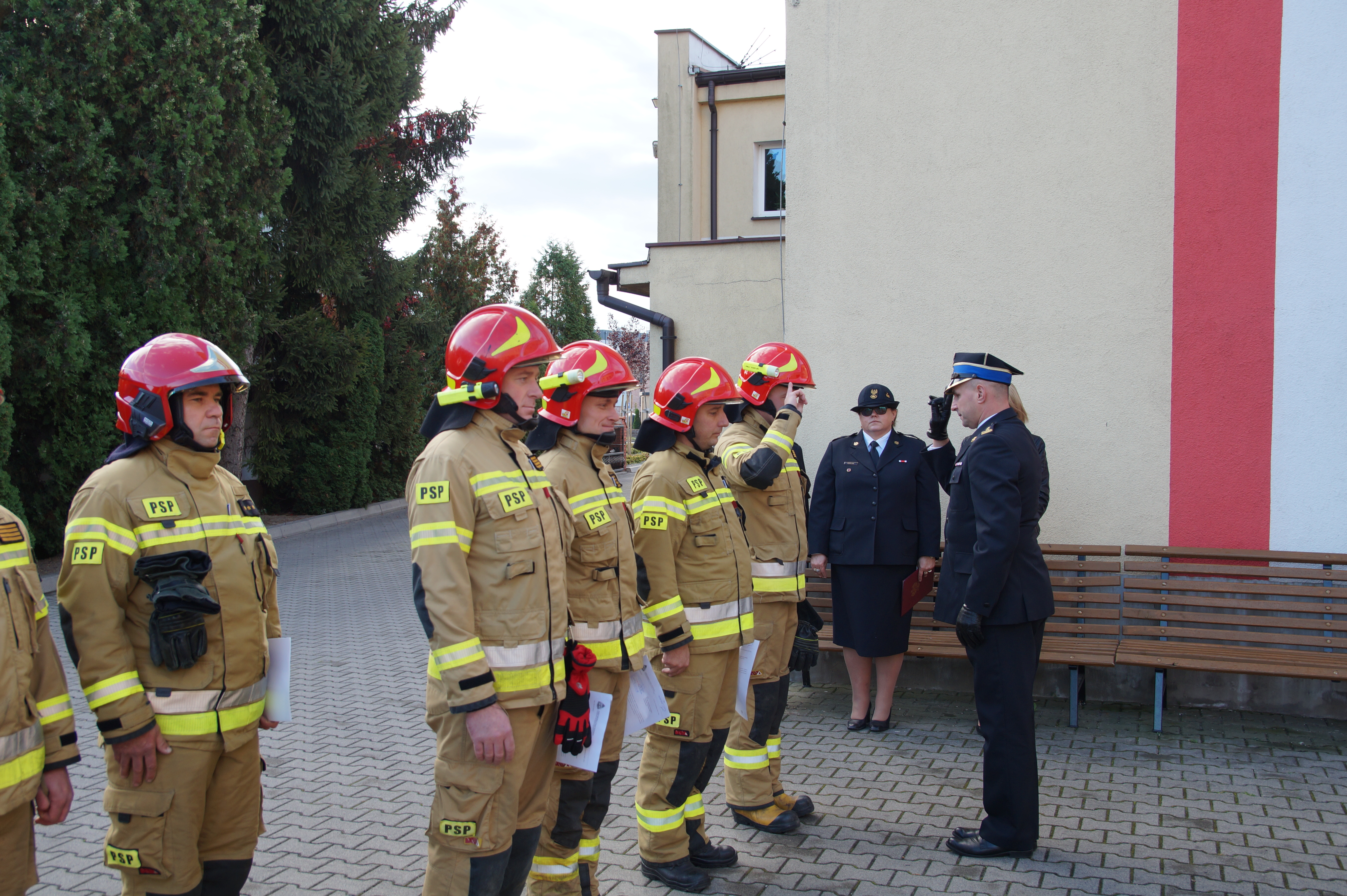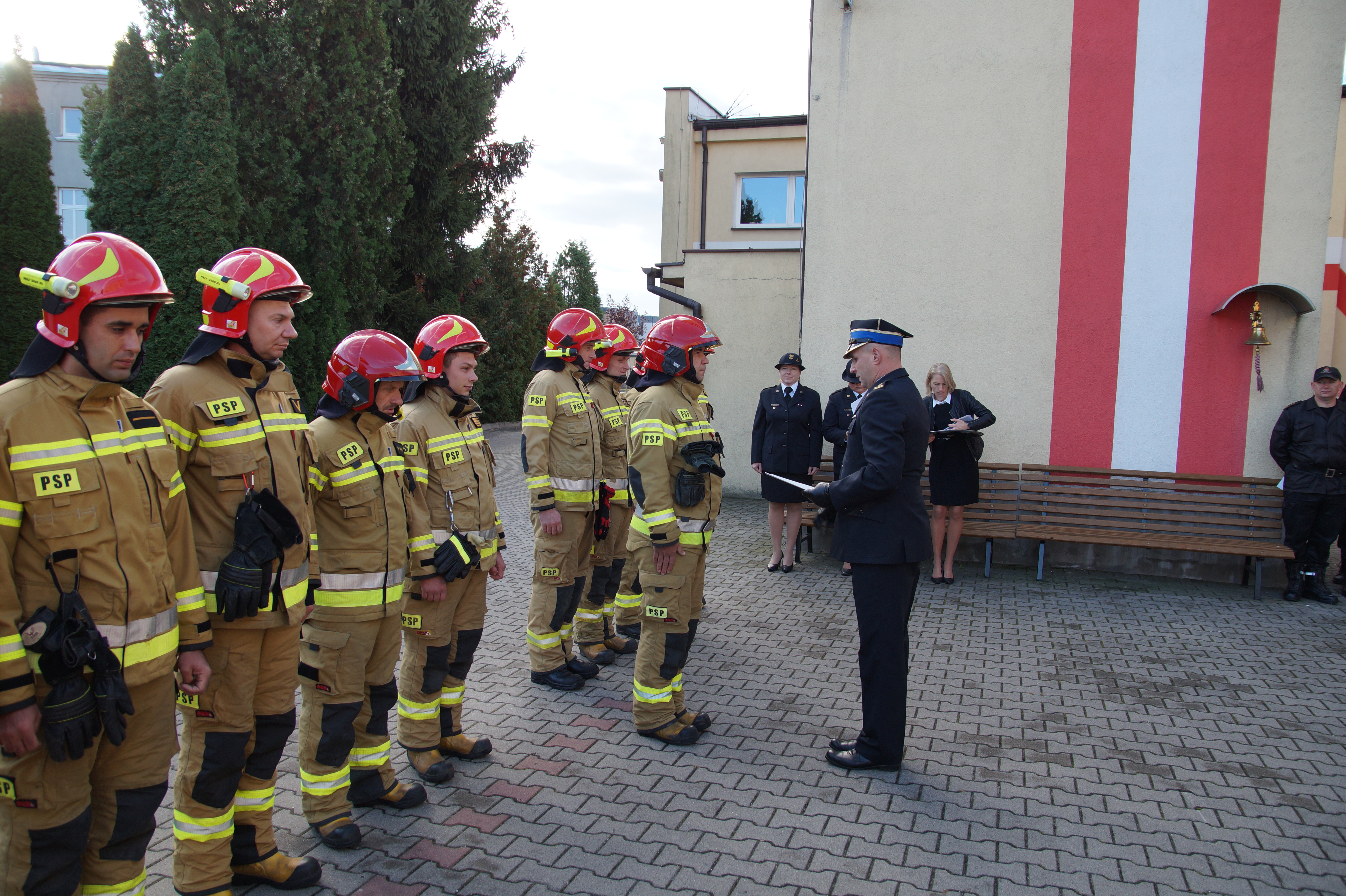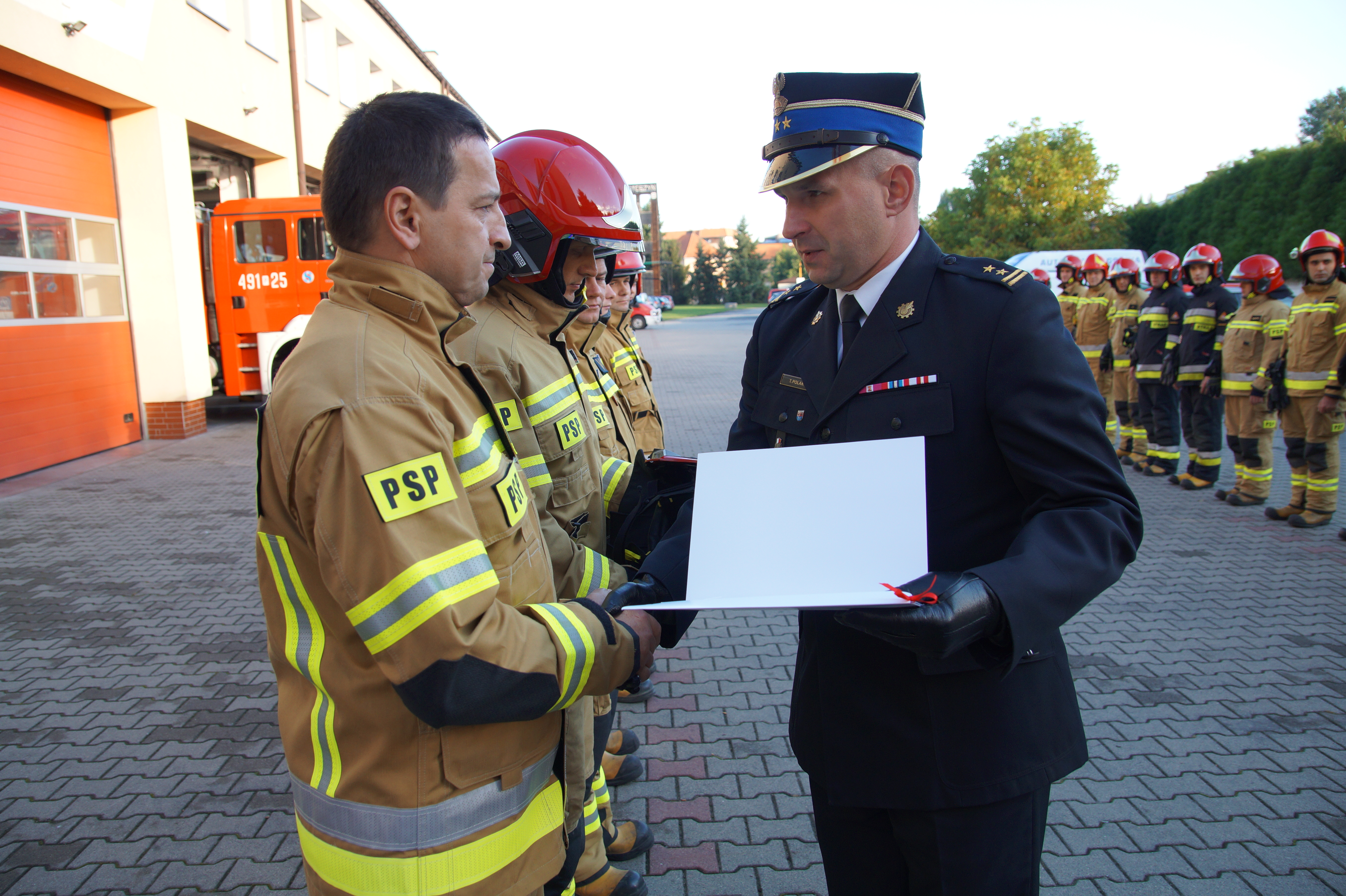 Wykorzystując uroczysty moment Komendant Powiatowy PSP w Krotoszynie, wręczył decyzje o przyznaniu nagród funkcjonariuszom realizującym działania międzynarodowe na terytorium Grecji oraz awansował dotychczasowego zastępcę dowódcy zmiany asp. sztab. Łukasza Klisia na stanowisko dowódcy zmiany.