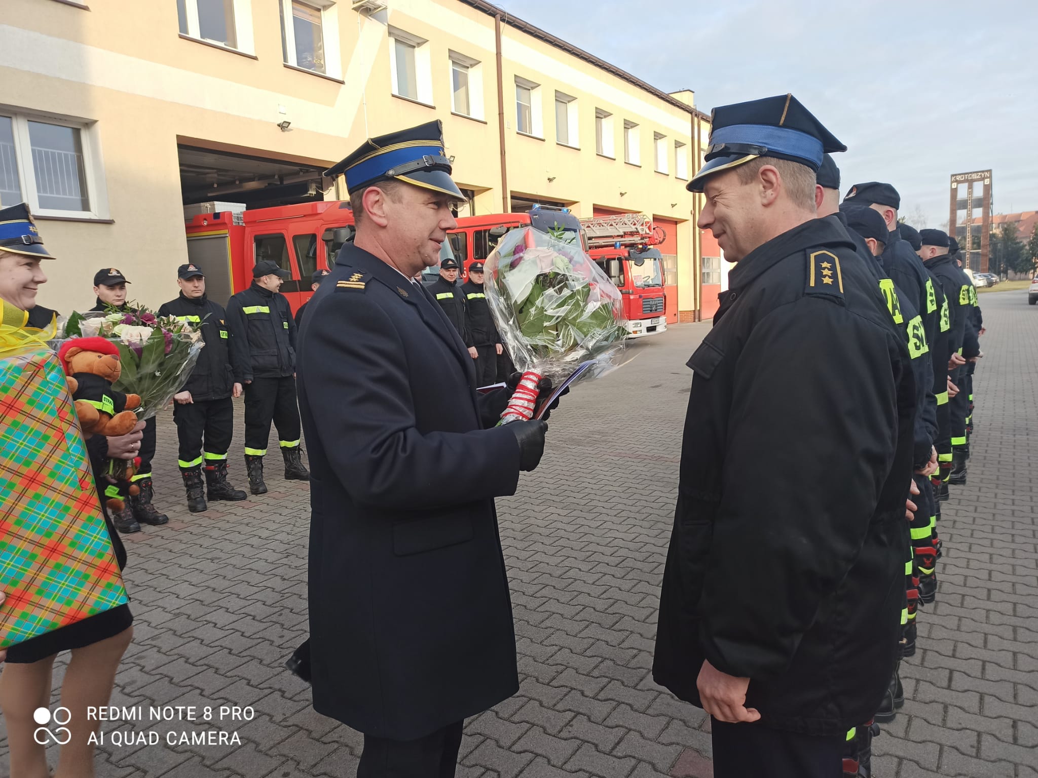 W czwartek 23 lutego 2023 roku na placu wewnętrznym Komendy Powiatowej Państwowej Straży Pożarnej w Krotoszynie odbyła się uroczysta zmiana służby. Dwóch funkcjonariuszy asp. sztab. Sławomir Piduch, który pełnił służbę w Wydziale ds. Operacyjnych i Kontrolno-Rozpoznawczych oraz st. ogn. Łukasz Marszałek z Jednostki Ratowniczo-Gaśniczej w Krotoszynie zakończyli czynną służbę w szeregach Państwowej Straży Pożarnej.