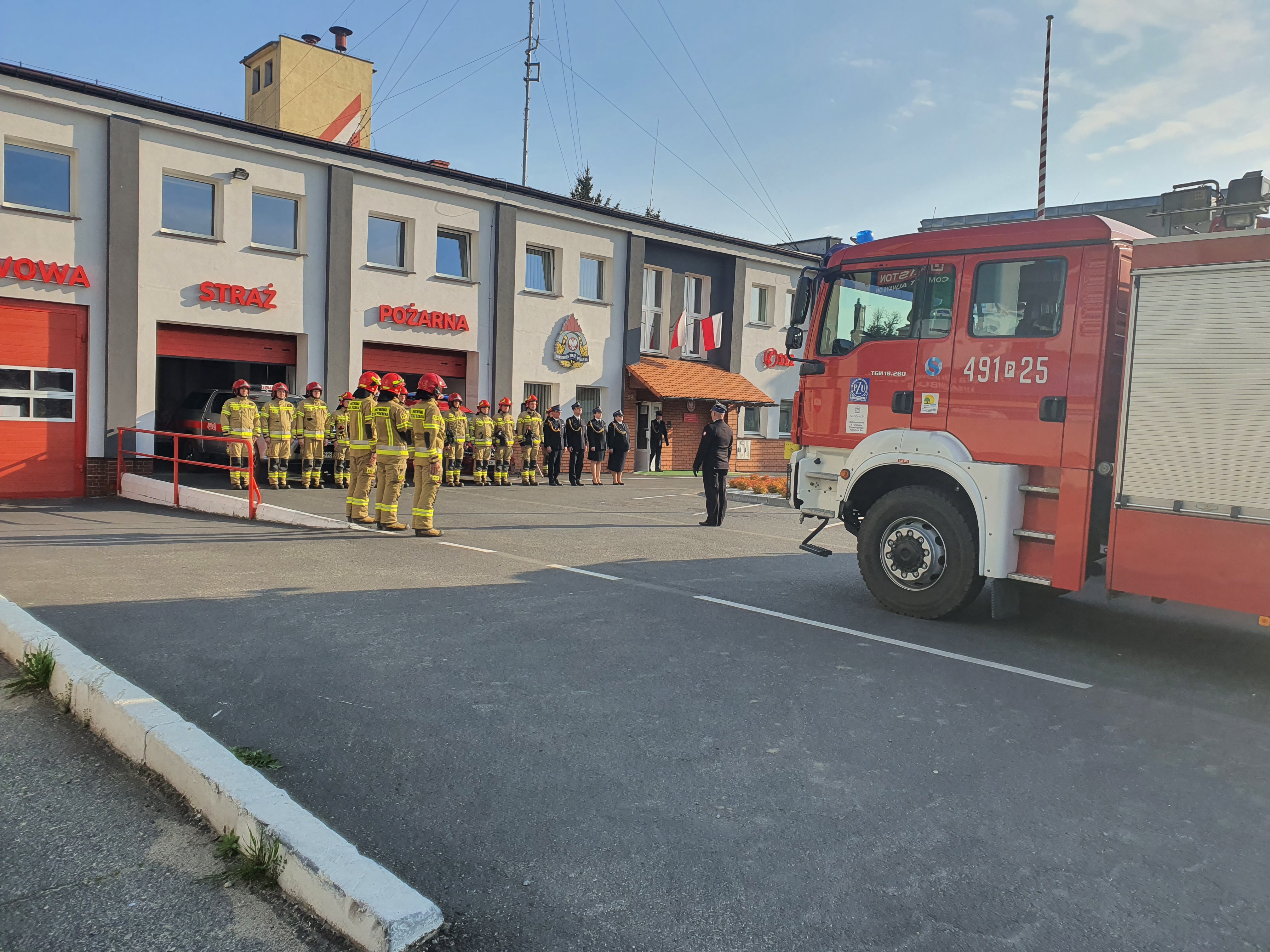 W poniedziałek 02 maja 2022 roku poranna zmiana służby w Komendzie Powiatowej Państwowej Straży Pożarnej w Krotoszynie miała okolicznościowy charakter za sprawą Dnia Flagi Rzeczpospolitej Polskiej.