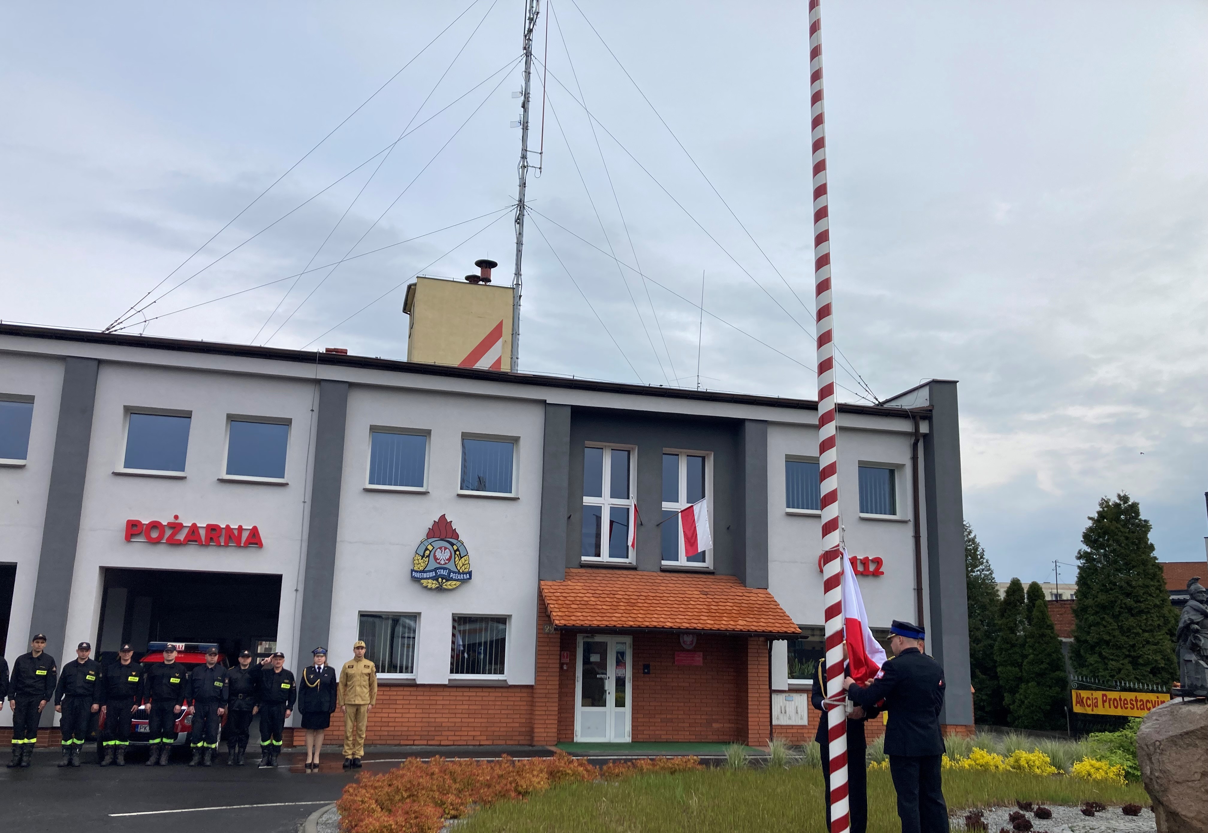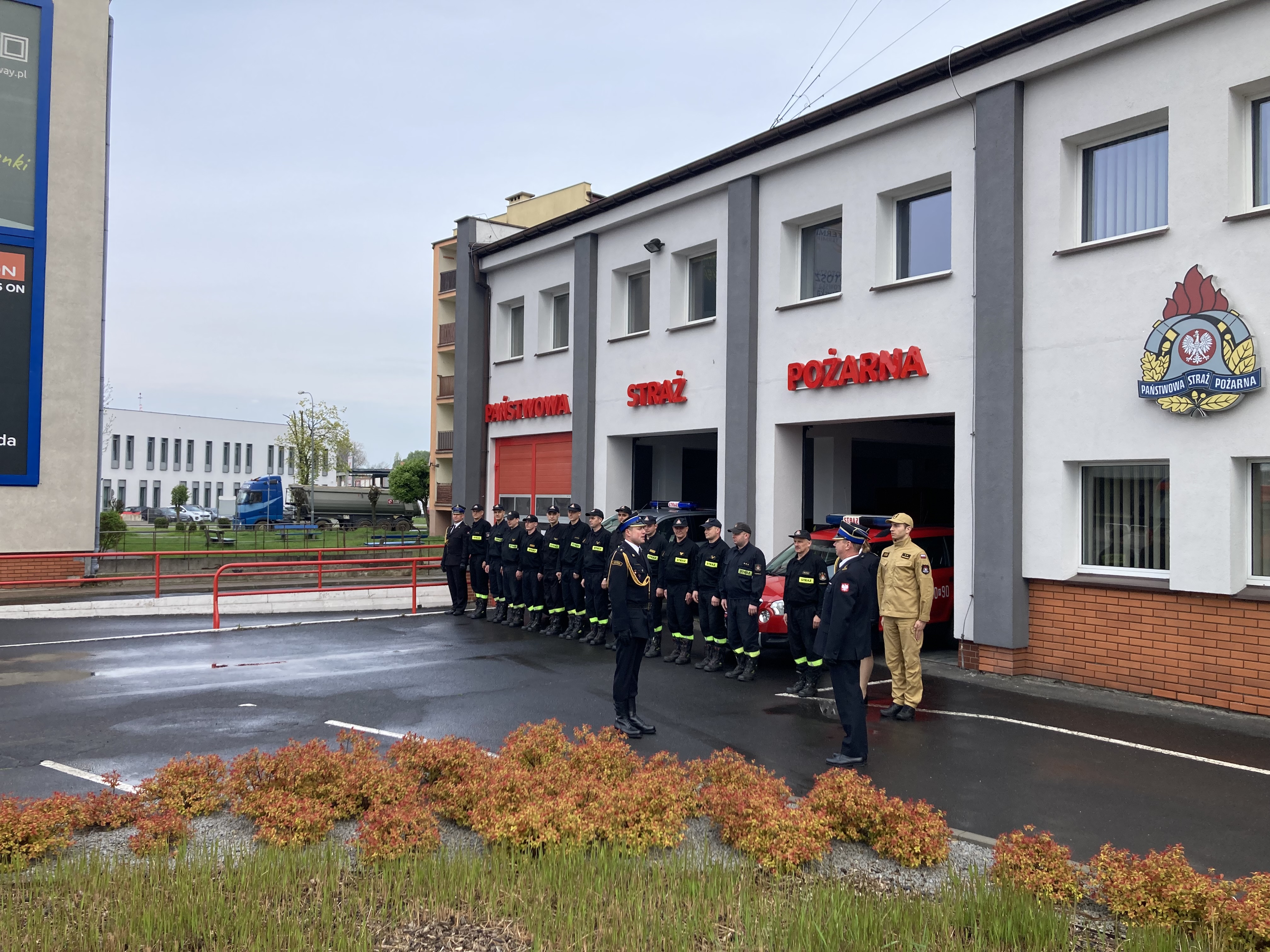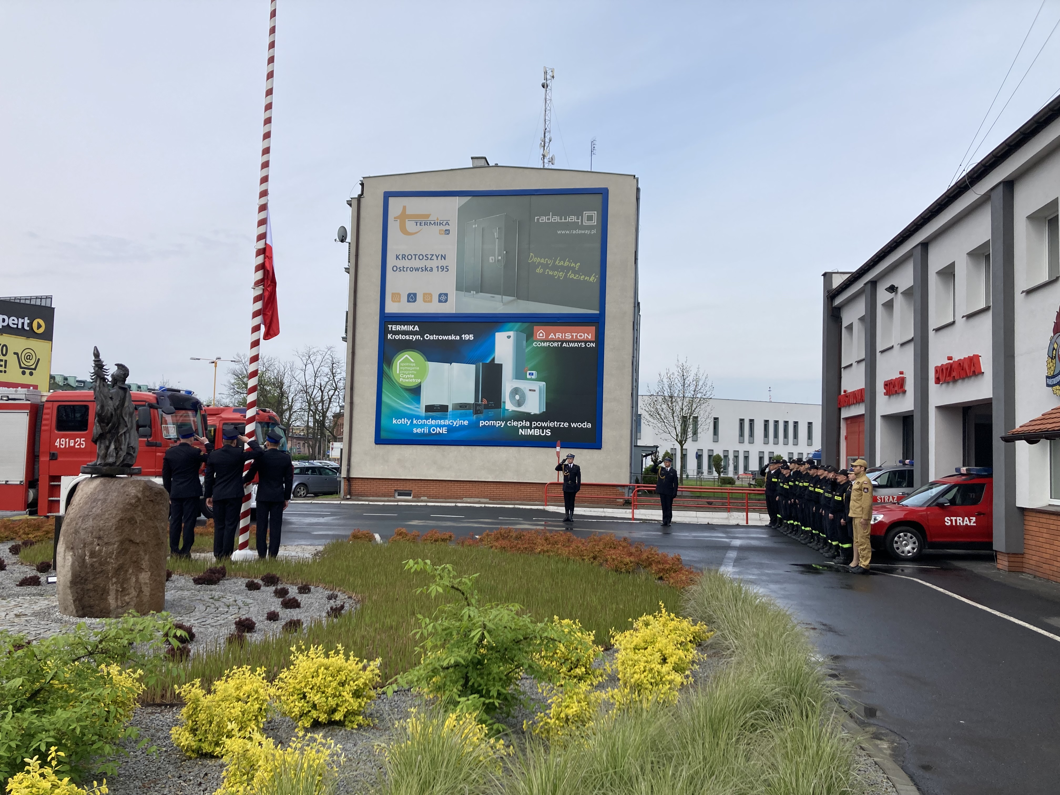Strażacy z Komendy Powiatowej Państwowej Straży Pożarnej w Krotoszynie przeprowadzili apel, podczas którego odbyło się uroczyste podniesienie Flagi Państwowej, oddając należyty honor oraz wyrażając szacunek do symboli narodowych.