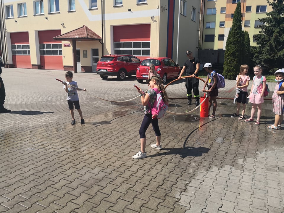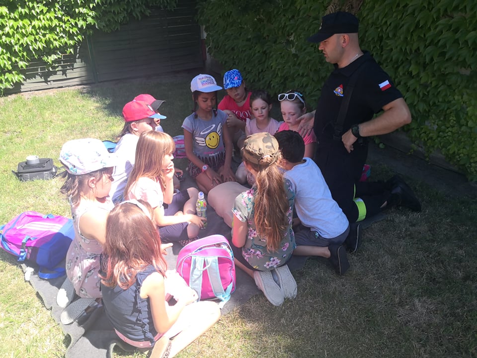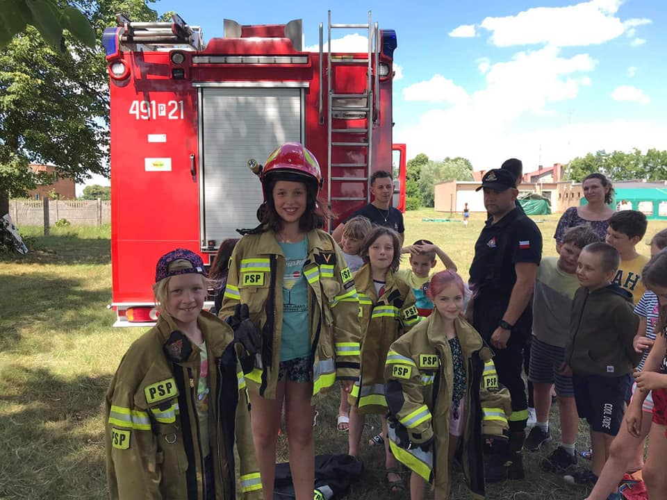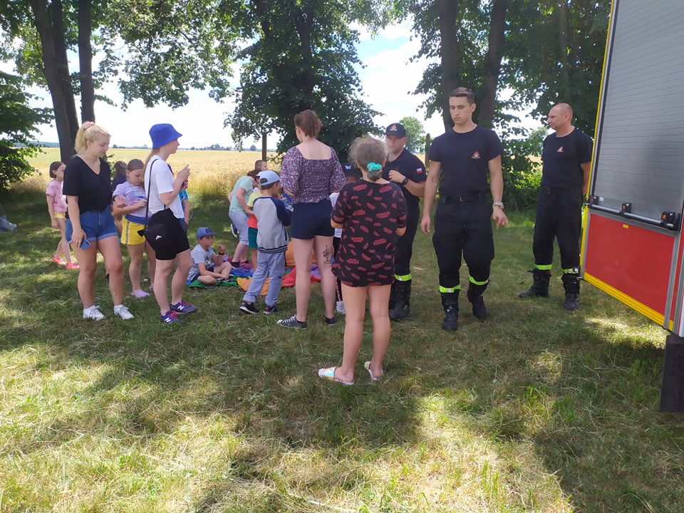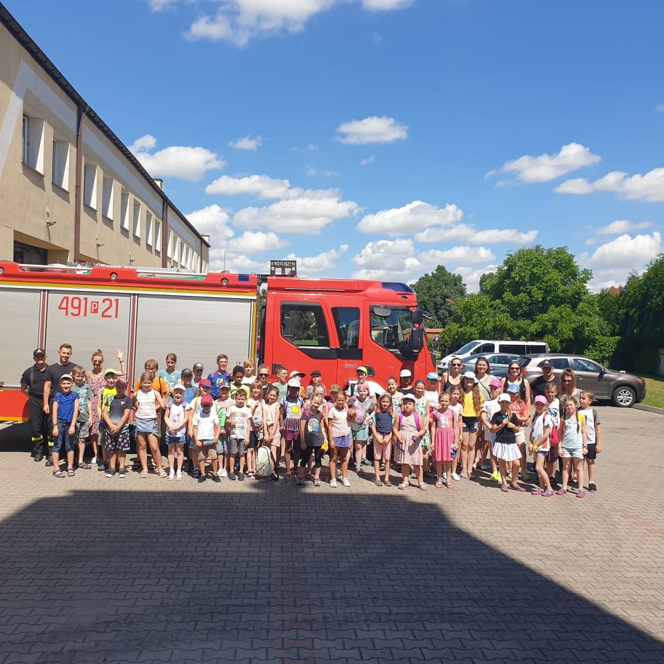 W godzinach porannych strażnicę wizytowały dzieci w ramach półkolonii organizowanych przez Społeczną Szkołę Podstawową w Krotoszynie. Spotkanie ze strażakami było obfite w atrakcje. Dla najmłodszych przygotowano stanowiska edukacyjne, łącząc zabawę z nauką. Dzieci poznały specyfikę służby strażackiej, sprzęt ratowniczy, zasady udzielania pomocy osobom w stanach nagłego zagrożenia życia oraz zasady bezpiecznego wypoczynku w domu, wykorzystując do tego celu mobilny symulator zagrożeń.