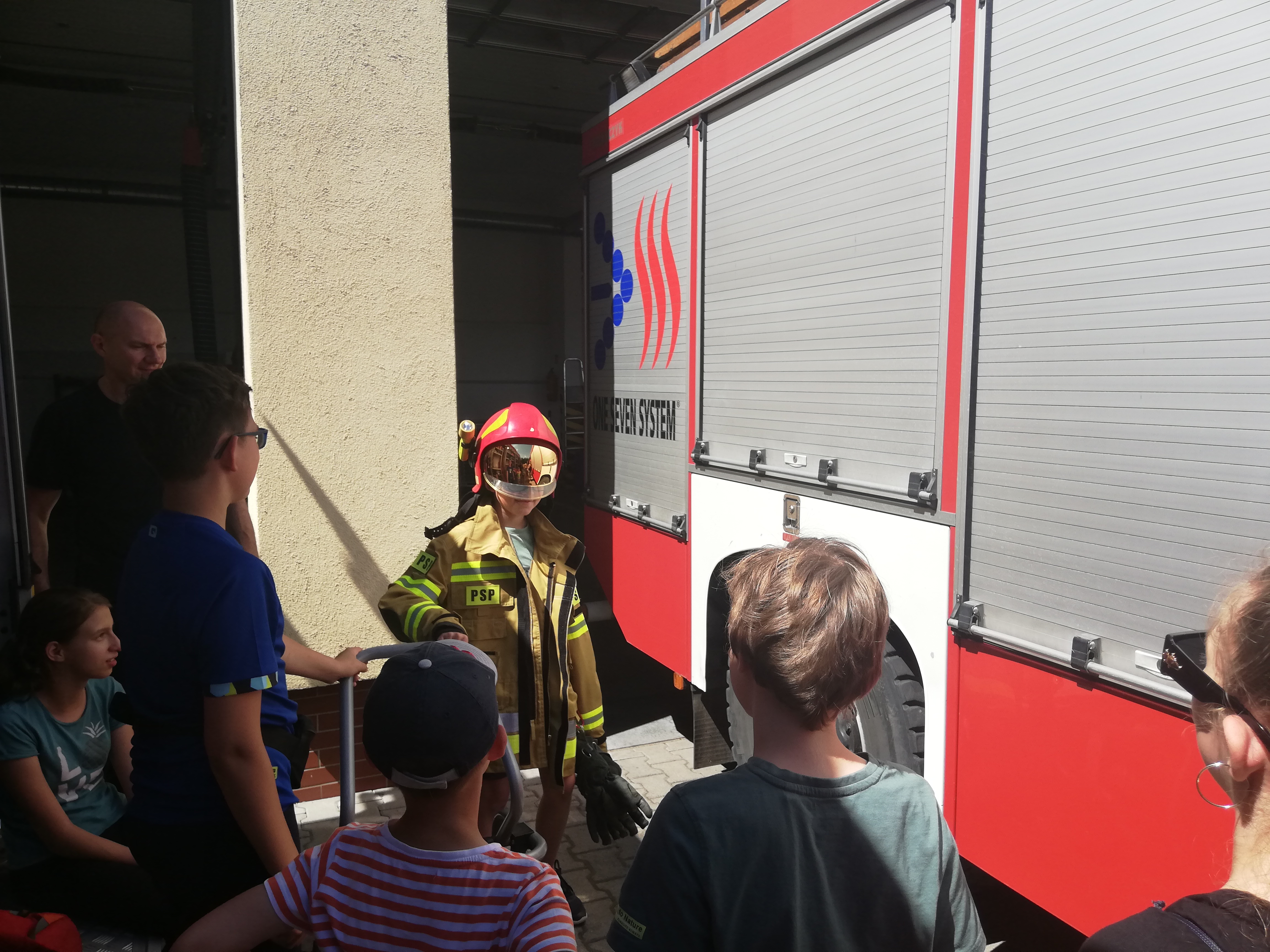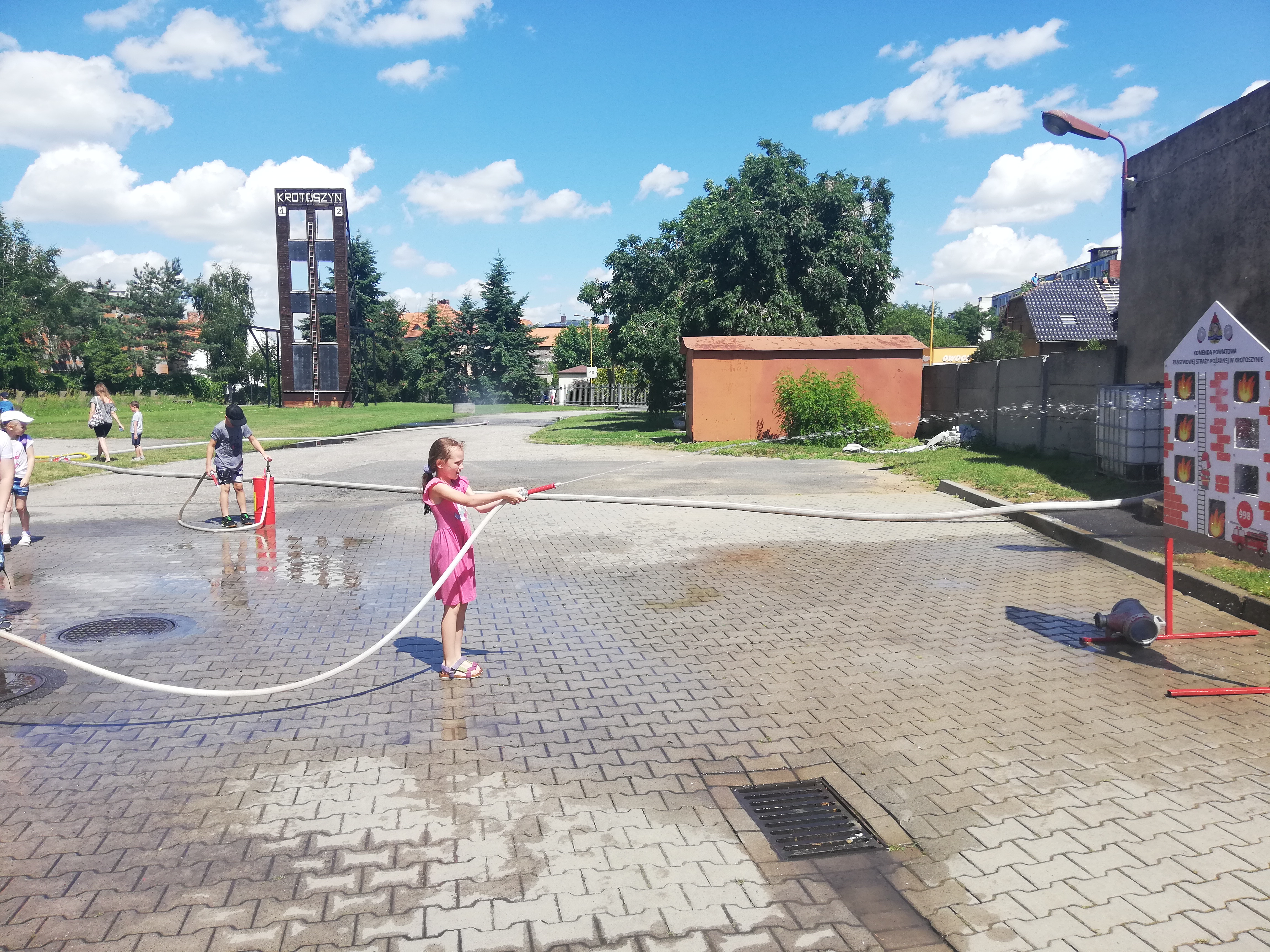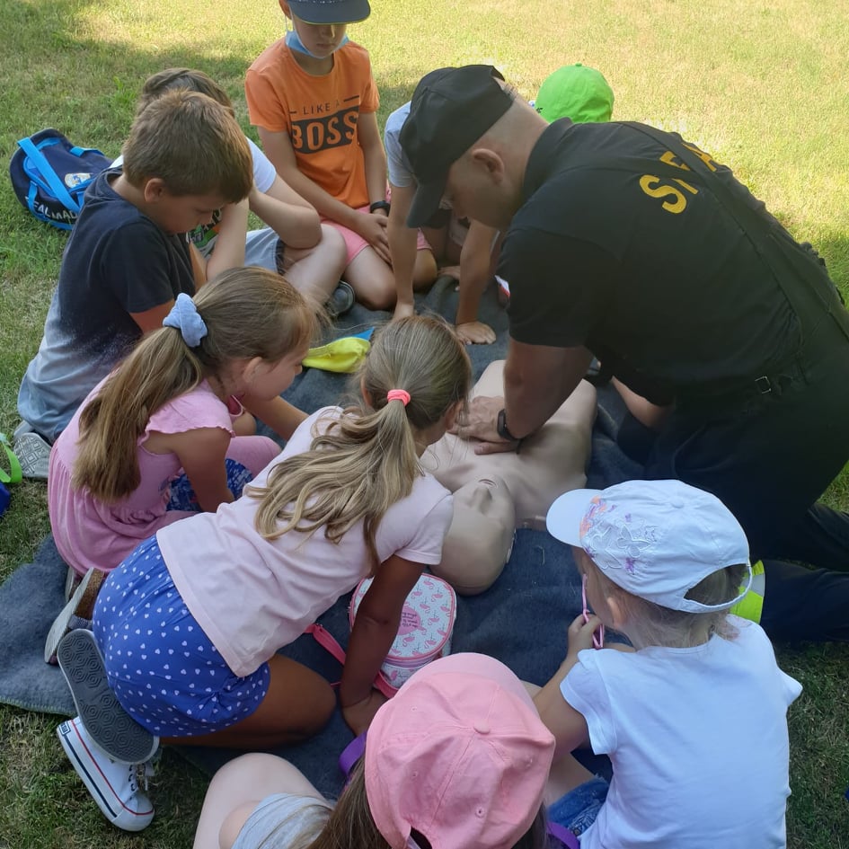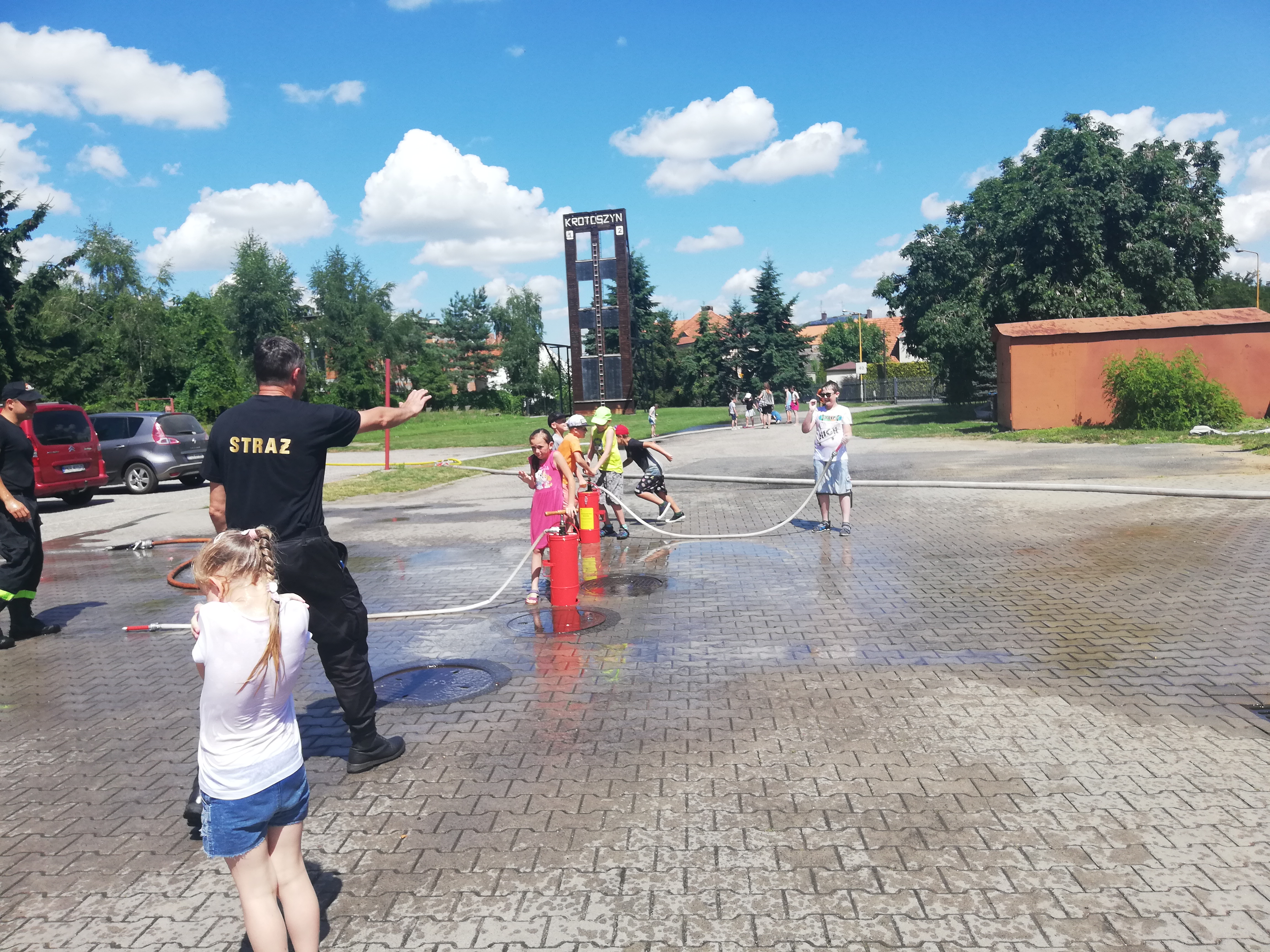 W godzinach porannych strażnicę wizytowały dzieci w ramach półkolonii organizowanych przez Społeczną Szkołę Podstawową w Krotoszynie. Spotkanie ze strażakami było obfite w atrakcje. Dla najmłodszych przygotowano stanowiska edukacyjne, łącząc zabawę z nauką. Dzieci poznały specyfikę służby strażackiej, sprzęt ratowniczy, zasady udzielania pomocy osobom w stanach nagłego zagrożenia życia oraz zasady bezpiecznego wypoczynku w domu, wykorzystując do tego celu mobilny symulator zagrożeń.