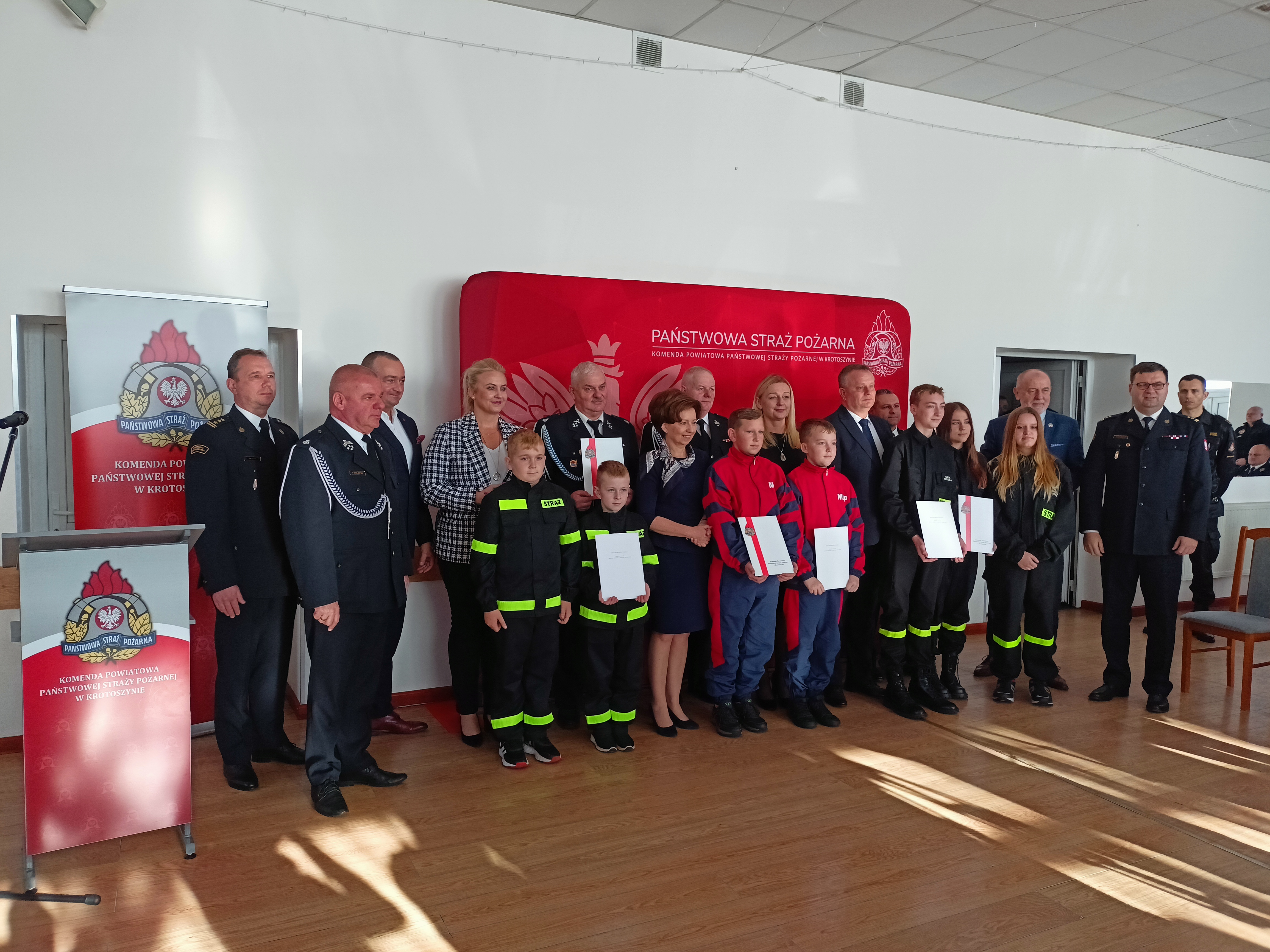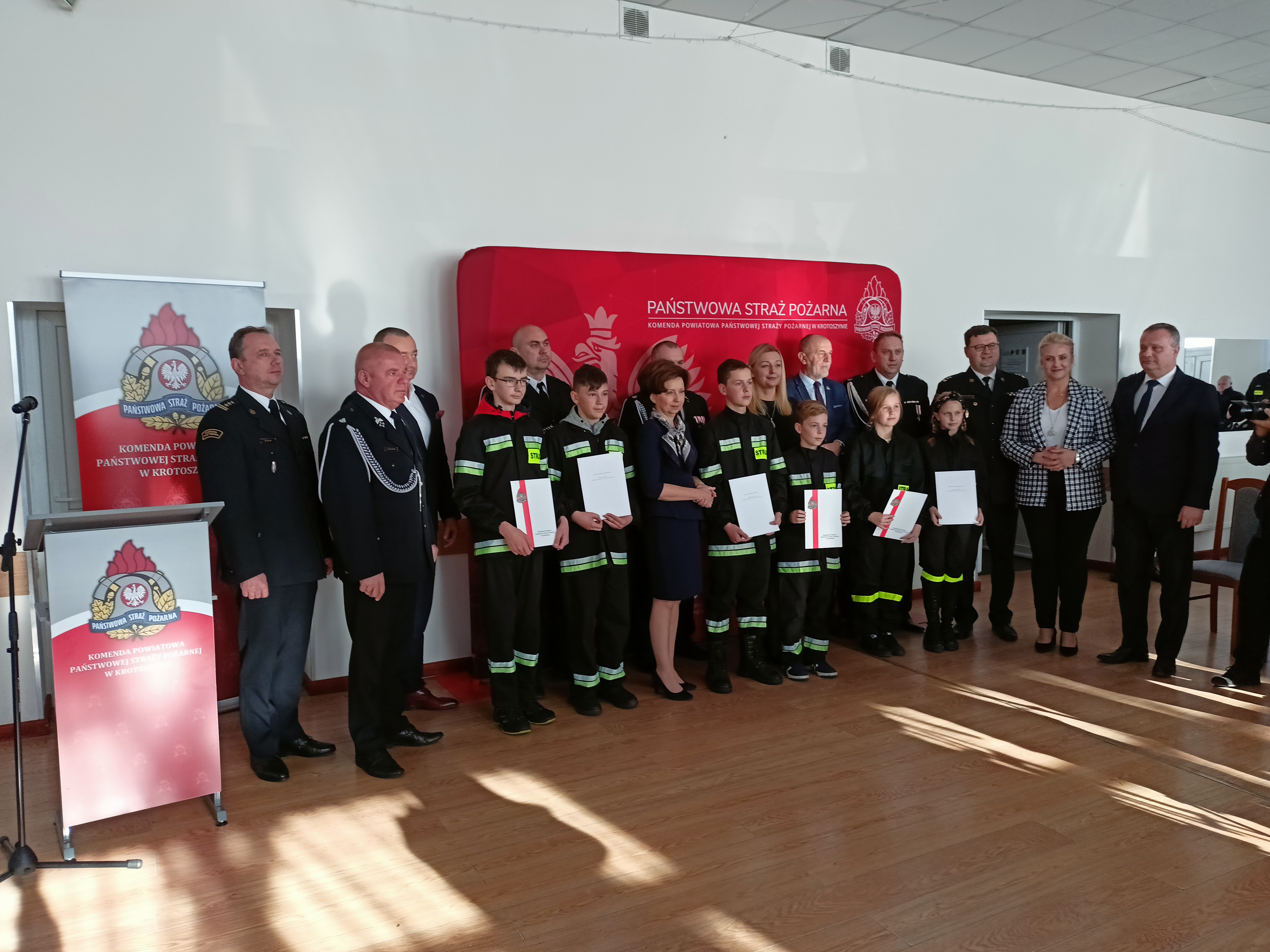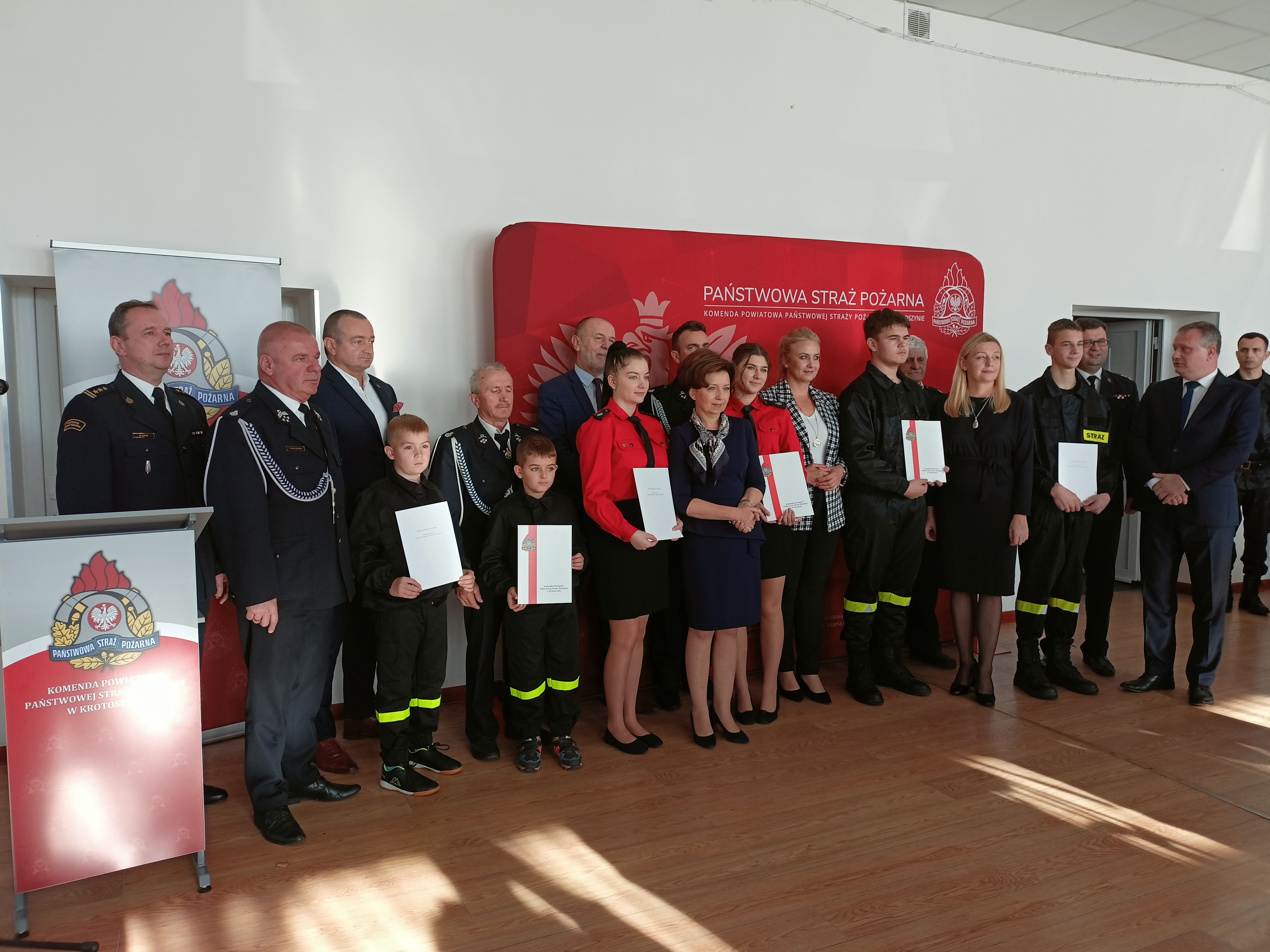 WRĘCZENIE PROMES NA DOTACJĘ MŁODZIEŻOWYCH DRUŻYN POŻARNICZYCH POWIATU KROTOSZYŃSKIEGO.