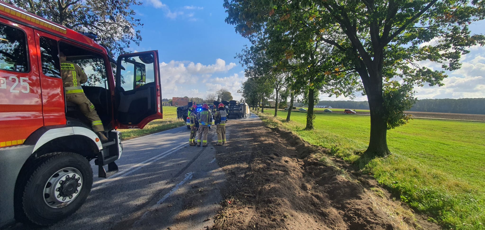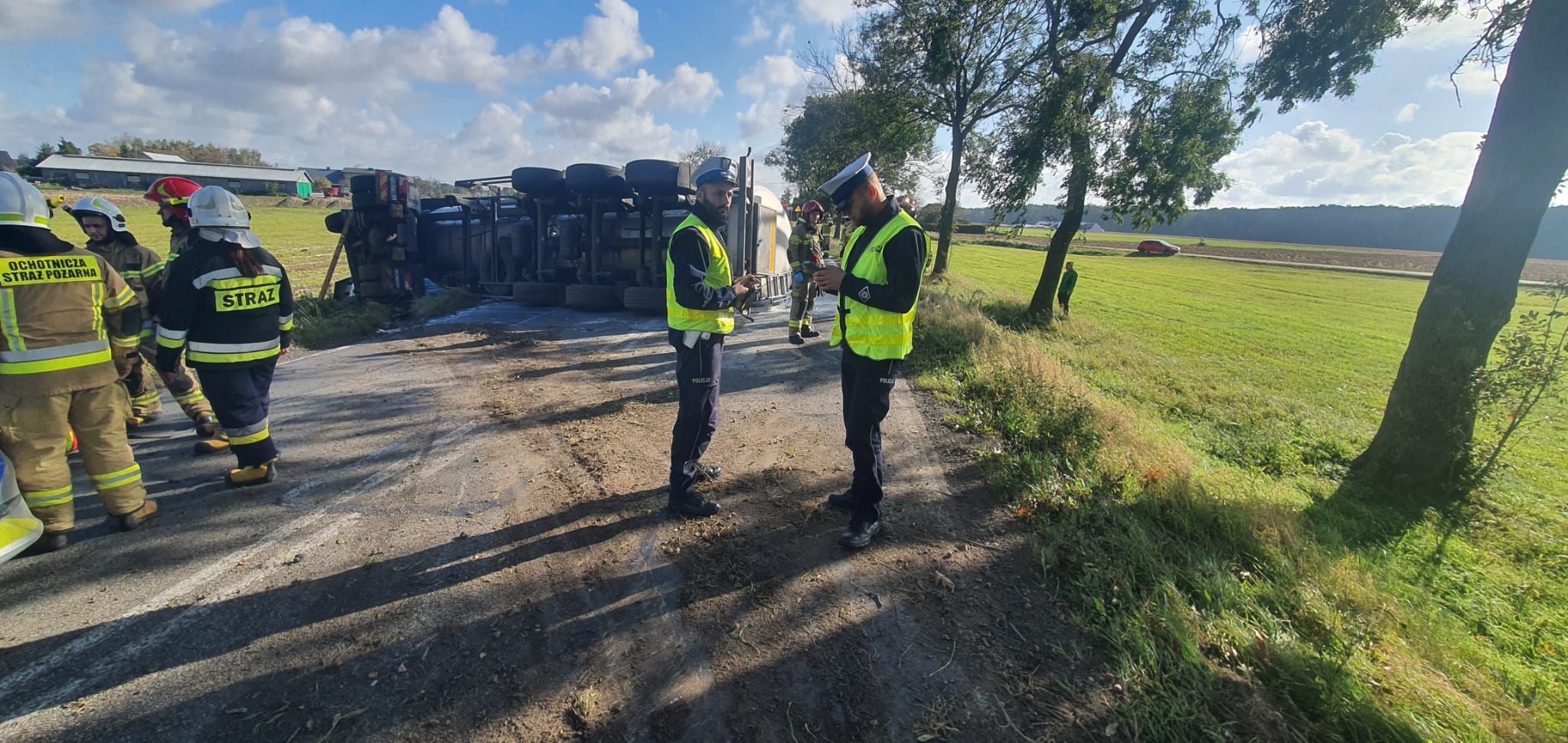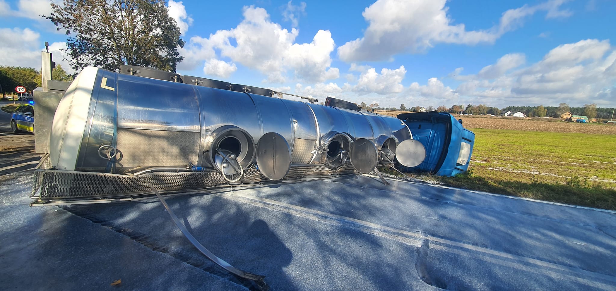 Wypadek cysterny na drodze krajowej w Smoszewie. Długotrwałe utrudnienia w ruchu.