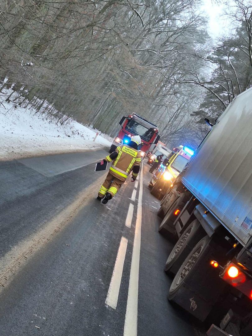 Wypadek drogowy na drodze wojewódzkiej. Jedna osoba poszkodowana.