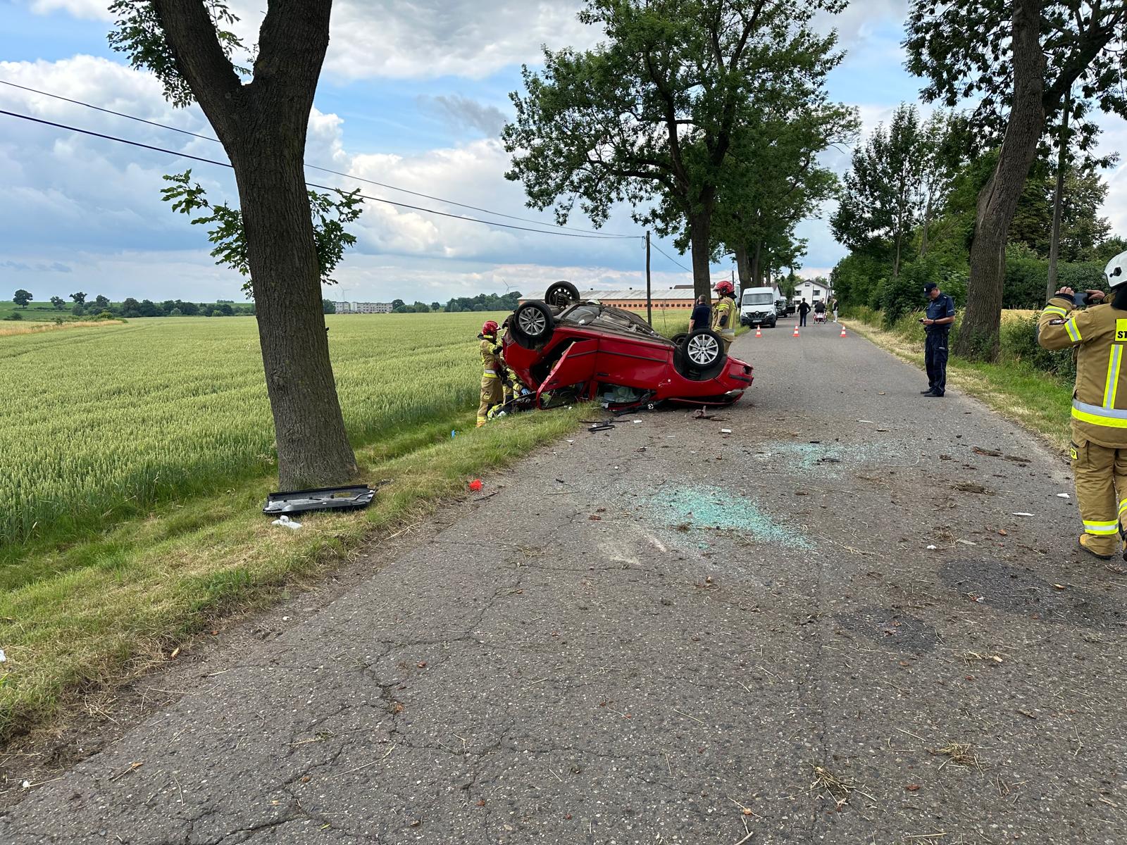 W piątek, 27 czerwca 2025 roku na drodze powiatowej w miejscowości Staniew samochód osobowy uderzył w przydrożne drzewo i dachował. Dwóch uczestników zdarzenia odniosło obrażenia wymagające transportu do placówki medycznej.