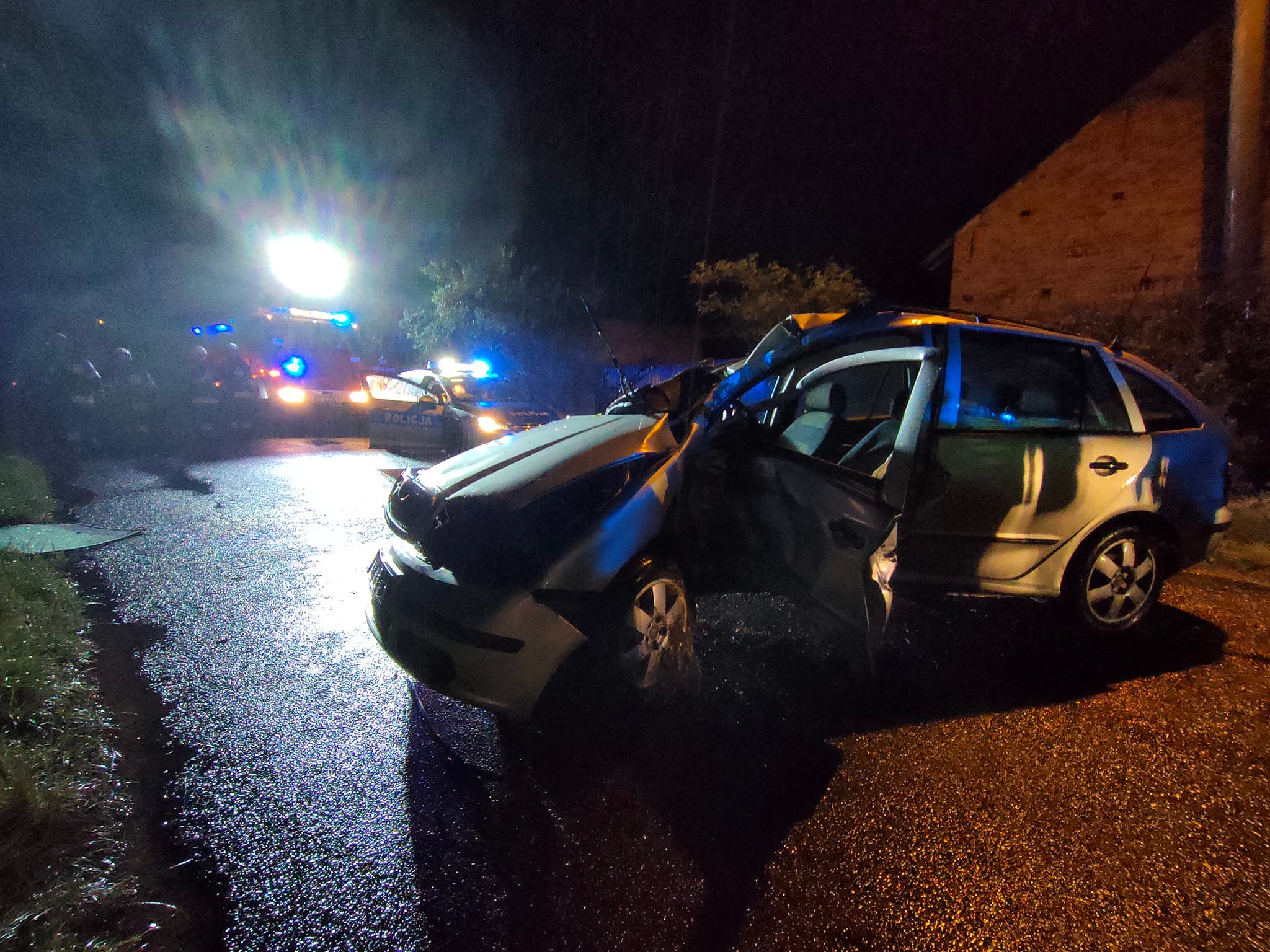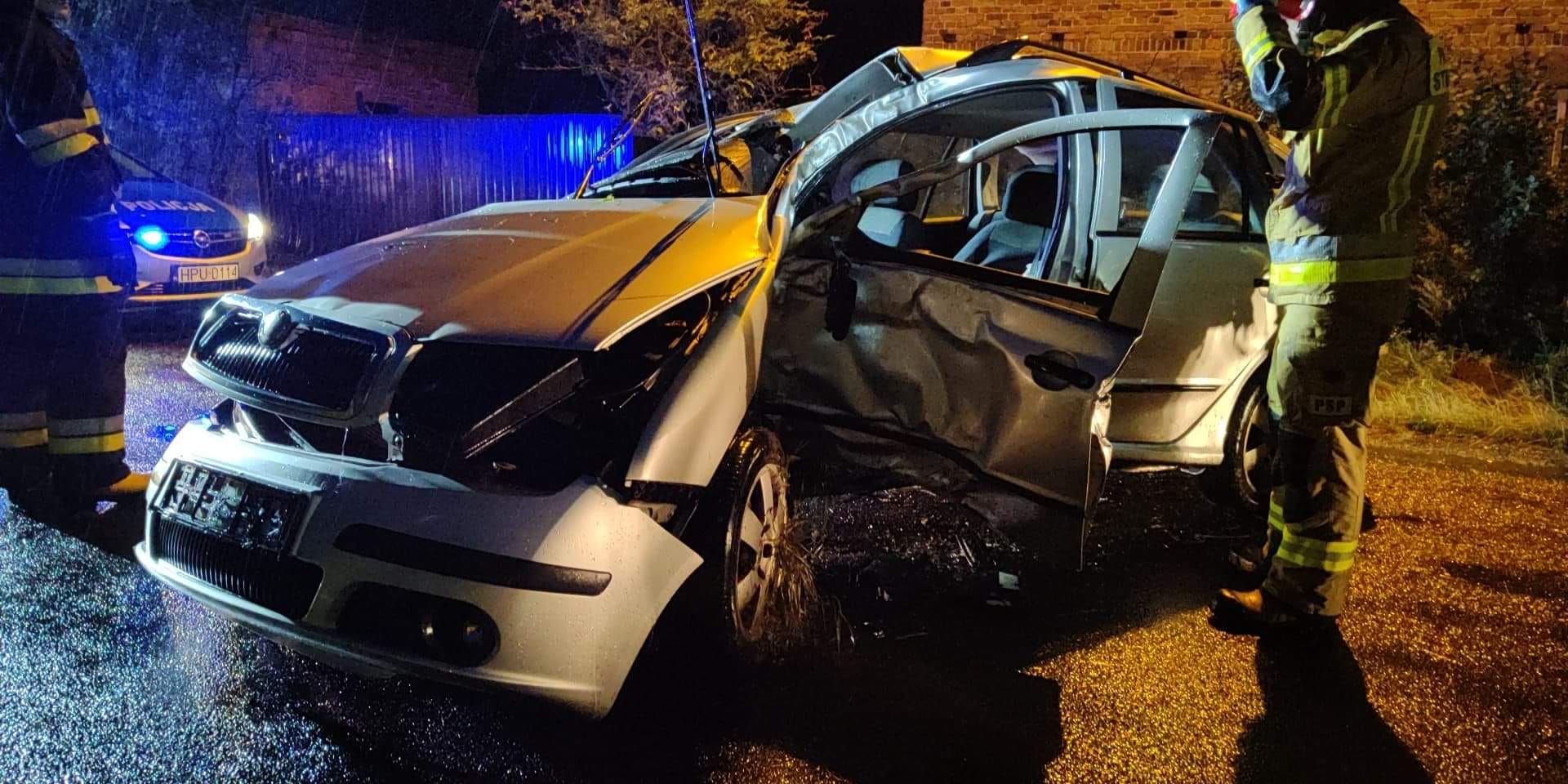 Strażacy w pierwszej kolejności udzielili pomocy medycznej poszkodowanemu kierowcy, wykonując jednocześnie dostęp do mężczyzny przy użyciu narzędzi hydraulicznych. W momencie uzyskania możliwości bezpiecznej ewakuacji poszkodowanego, ratownicy przy użyciu deski ortopedycznej przetransportowali kierowcę w miejsce bezpieczne, zapewniając mężczyźnie komfort termiczny oraz wsparcie psychiczne. Pozostałych uczestników zdarzenia nieuskarżających się na żadne dolegliwości umieszczono w pojeździe pożarniczym pod opieką wyznaczonego ratownika. W momencie dotarcia karetki pogotowia poszkodowany mężczyzna został przekazany pod opiekę ratowników medycznych, którzy po wykonaniu diagnostyki podjęli decyzję o jego dalszej hospitalizacji. W trakcie trwania czynności na miejscu wypadku u kolejnych dwóch uczestników zdarzenia drogowego wystąpiły dolegliwości bólowe wymagające interwencji służb medycznych, dlatego na miejsce wezwano kolejny zespół ratownictwa medycznego, a osoby te otrzymały od strażaków pomoc medyczną adekwatną do zgłoszonych dolegliwości. Sumarycznie trzy osoby uczestniczące w wypadku zostały hospitalizowane celem dalszej diagnostyki. W uszkodzonym pojeździe odłączono akumulator oraz zabezpieczono wycieki płynów eksploatacyjnych. Po zakończeniu czynności realizowanych przez funkcjonariuszy Policji samochód osobowy przemieszczono na pobocze drogi, natomiast zalegający na jezdni olej silnikowy oraz elementy karoserii samochodowej stwarzające zagrożenie dla pojazdów kołowych usunięto za pomocą podręcznego sprzętu burzącego, oraz sorbentu. Działania straży pożarnej trwały łącznie 01 godzinę i 51 minut.