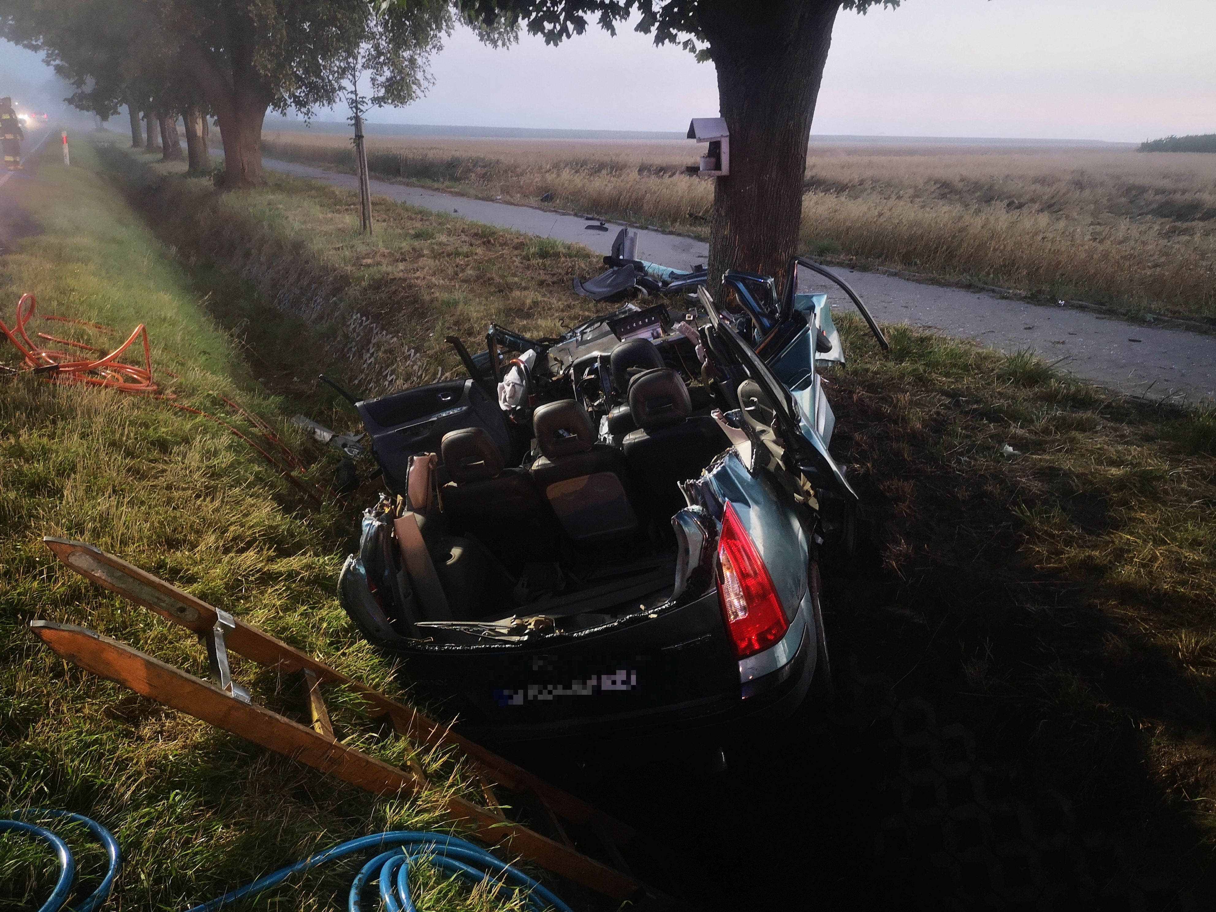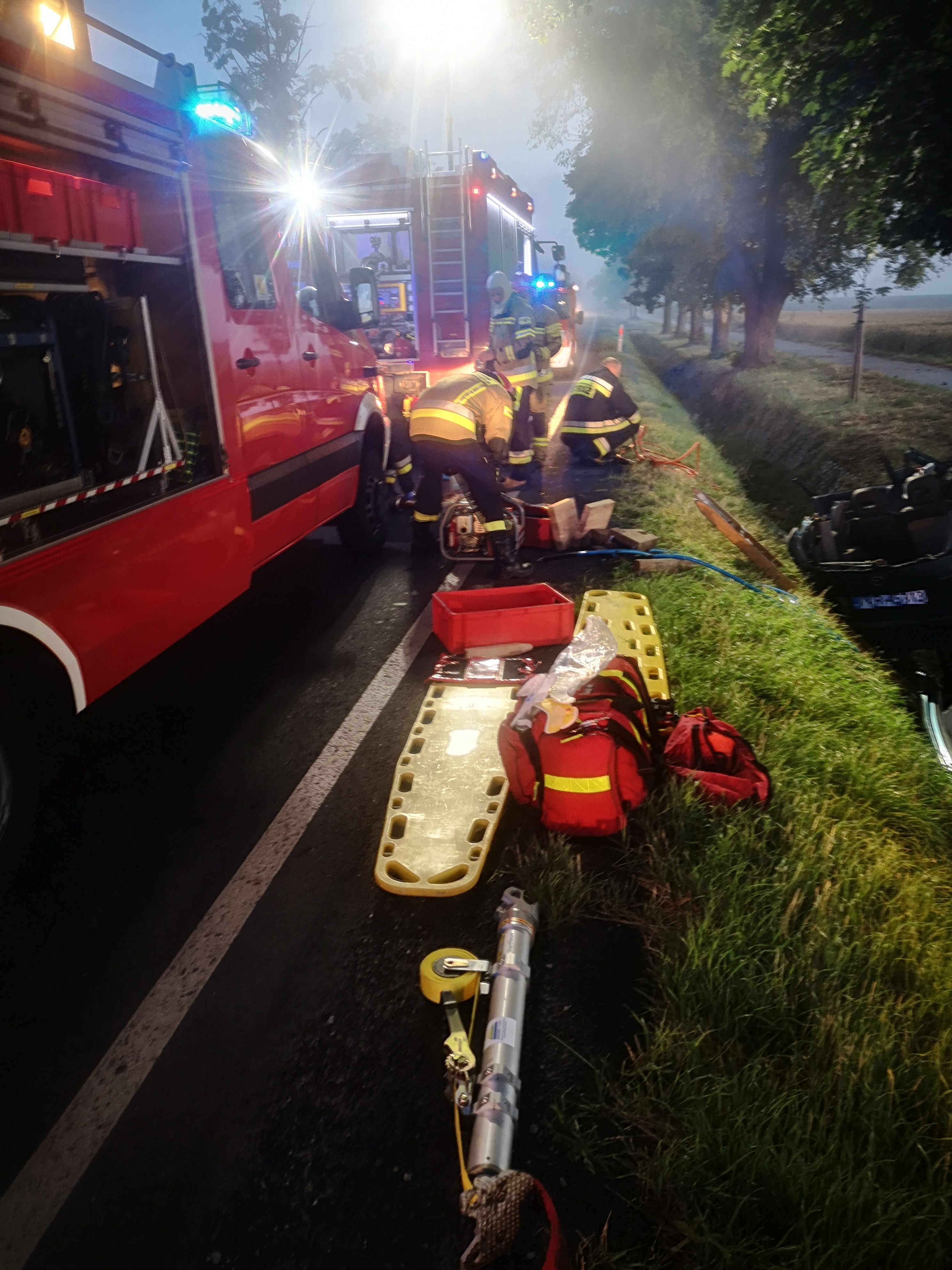 Po dojeździe na miejsce zdarzenia w wyniku przeprowadzonego rozpoznania ustalono, że w rozbitym samochodzie osobowym, który uderzył w drzewo i zatrzymał się w przydrożnym rowie znajduje się nieprzytomny kierowca. Silna deformacja bryły samochodu uniemożliwia ewakuację poszkodowanego bez użycia narzędzi hydraulicznych. W chwili przybycia straży pożarnej na miejscu wypadku nie było innych służb ratunkowych.