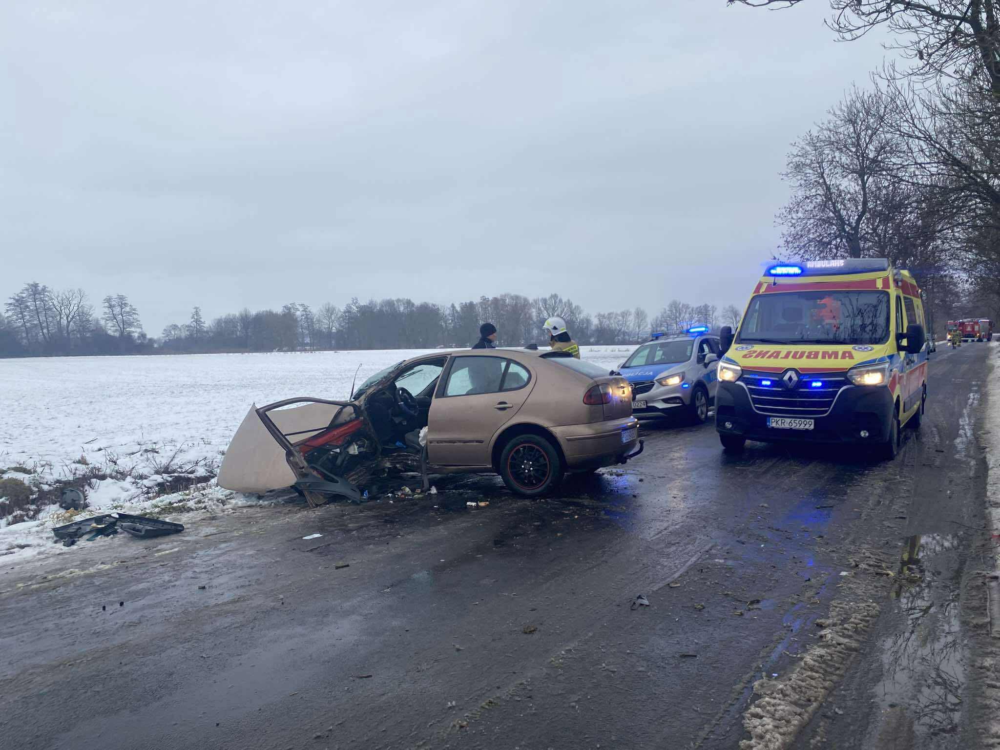 W środę 14 stycznia 2026 r. w miejscowości Starkówiec (gmina Kobylin) pojazd osobowy zjechał poza obręb jezdni i uderzył w przydrożne drzewo. Jedyny uczestnik zdarzenia odniósł obrażenia wymagające interwencji służb medycznych i został przetransportowany do szpitala. Droga w miejscu zdarzenia została zablokowana.