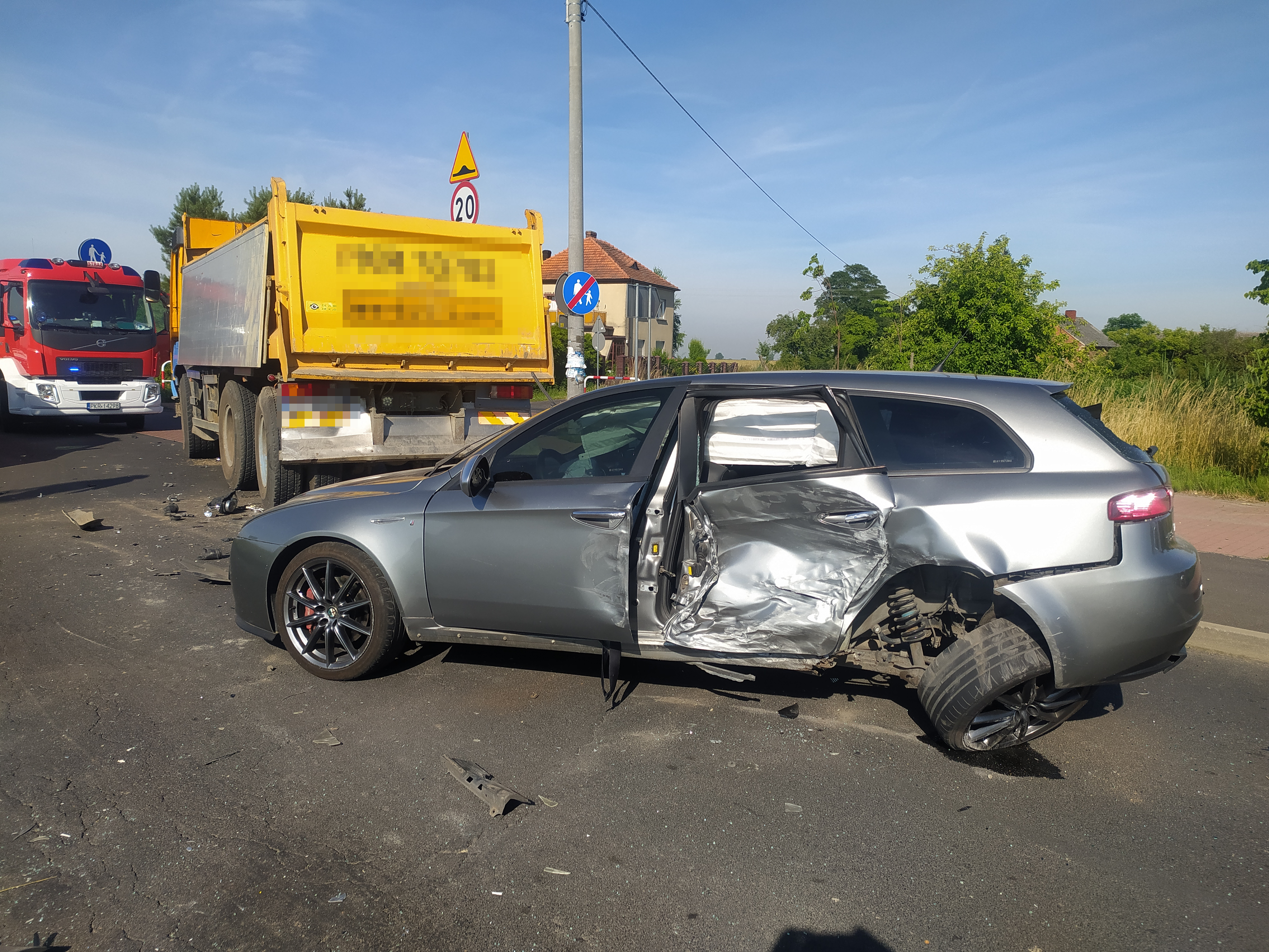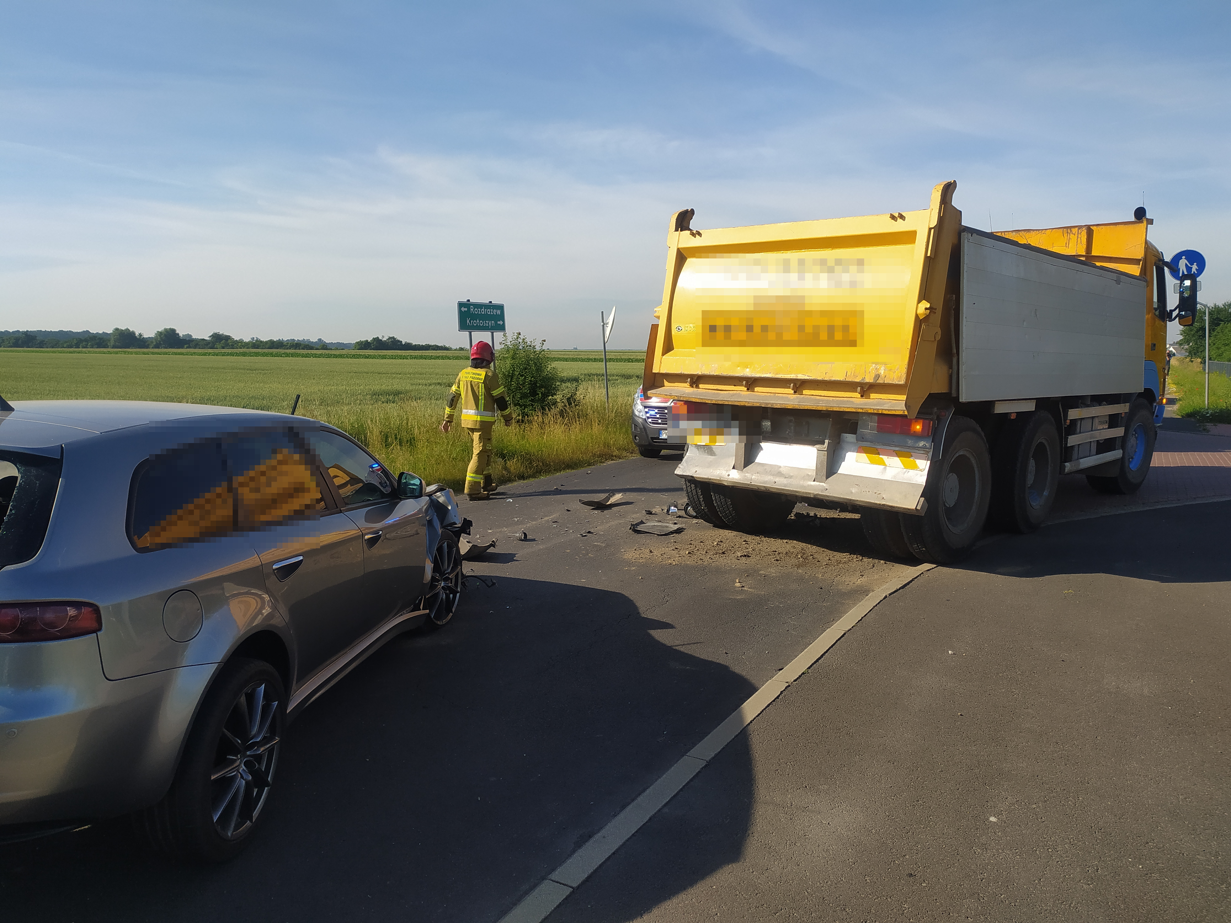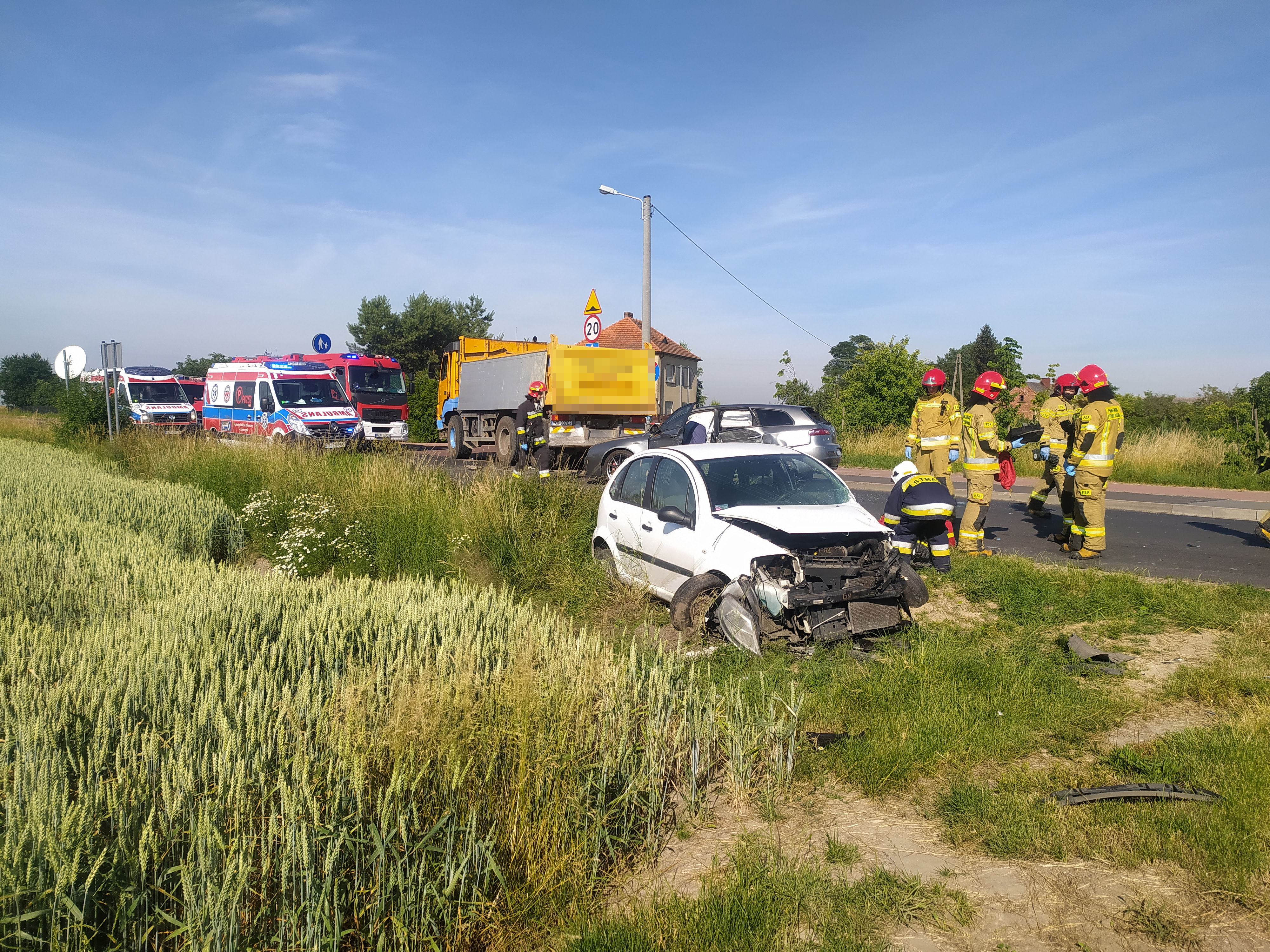 Poszkodowana matka z dwójką dzieci, dwa rozbite samochody osobowe oraz uszkodzona ciężarówka to bilans wypadku do jakiego doszło we wtorek 29 czerwca 2021 roku tuż po godzinie 08:00 na drodze powiatowej w miejscowości Dzielice.