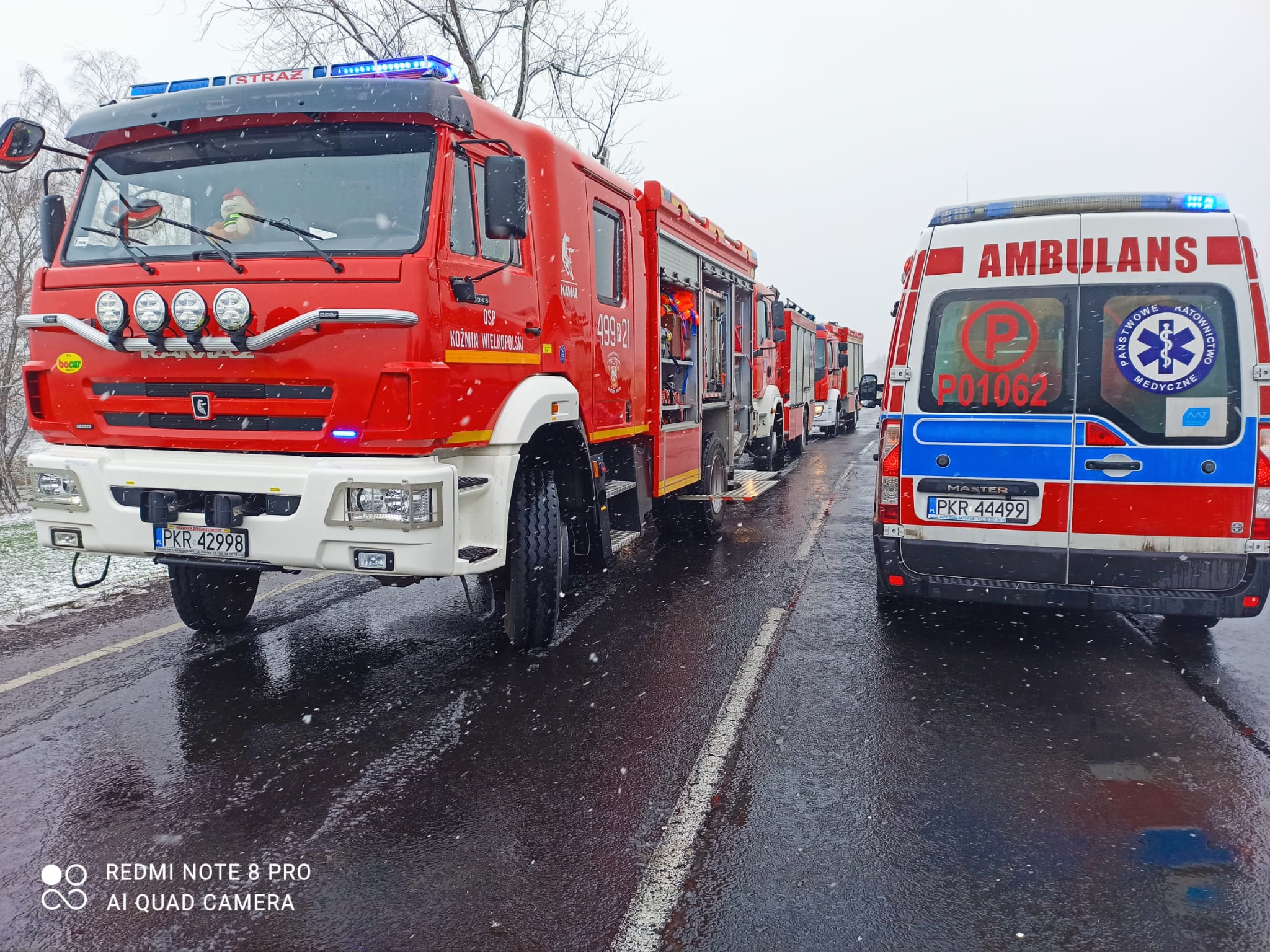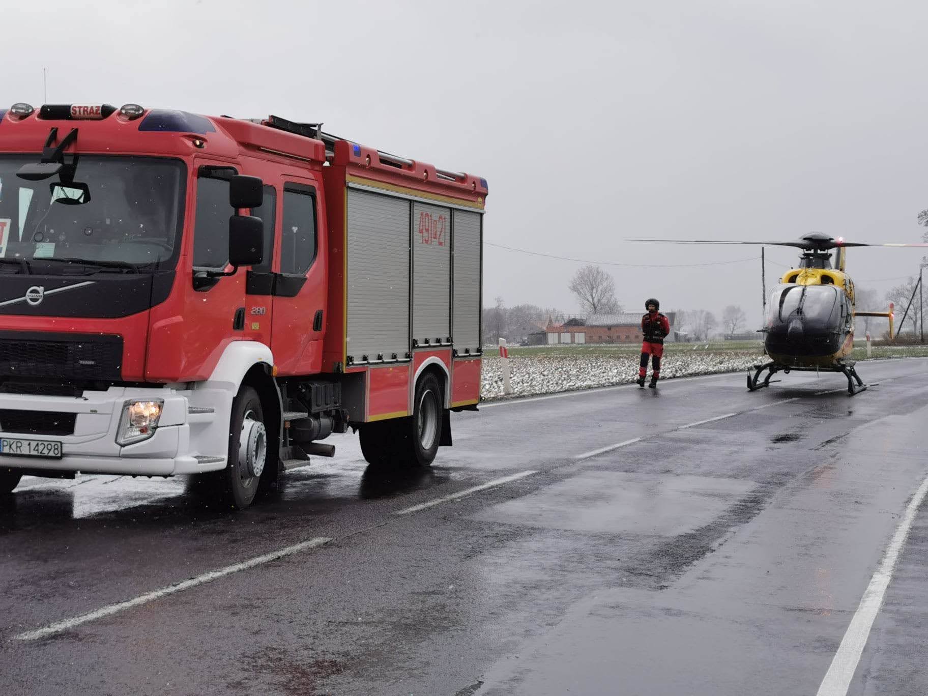 W zdarzeniu uczestniczyły łącznie 4 zastępy Jednostek Ochrony Przeciwpożarowej, 3 Zespoły Ratownictwa Medycznego, śmigłowiec Lotniczego Pogotowia Ratunkowego oraz 5 pojazdów Policji.