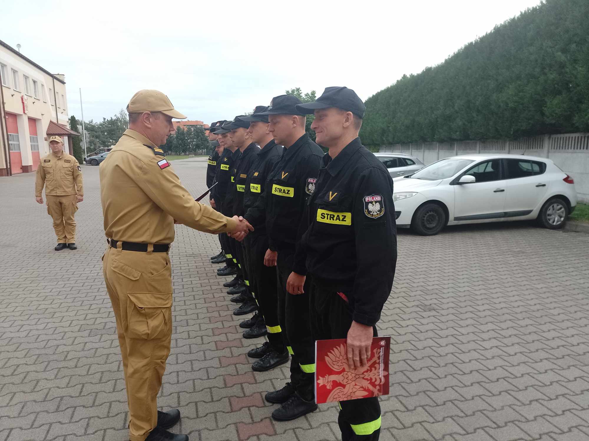 Komendant Powiatowy PSP w Krotoszynie na zmianie służby odczytał List Gratulacyjny oraz wręczył strażakom biorącym udział w misji decyzje Ministra Spraw Wewnętrznych i Administracji o przyznaniu nagrody uznaniowej.