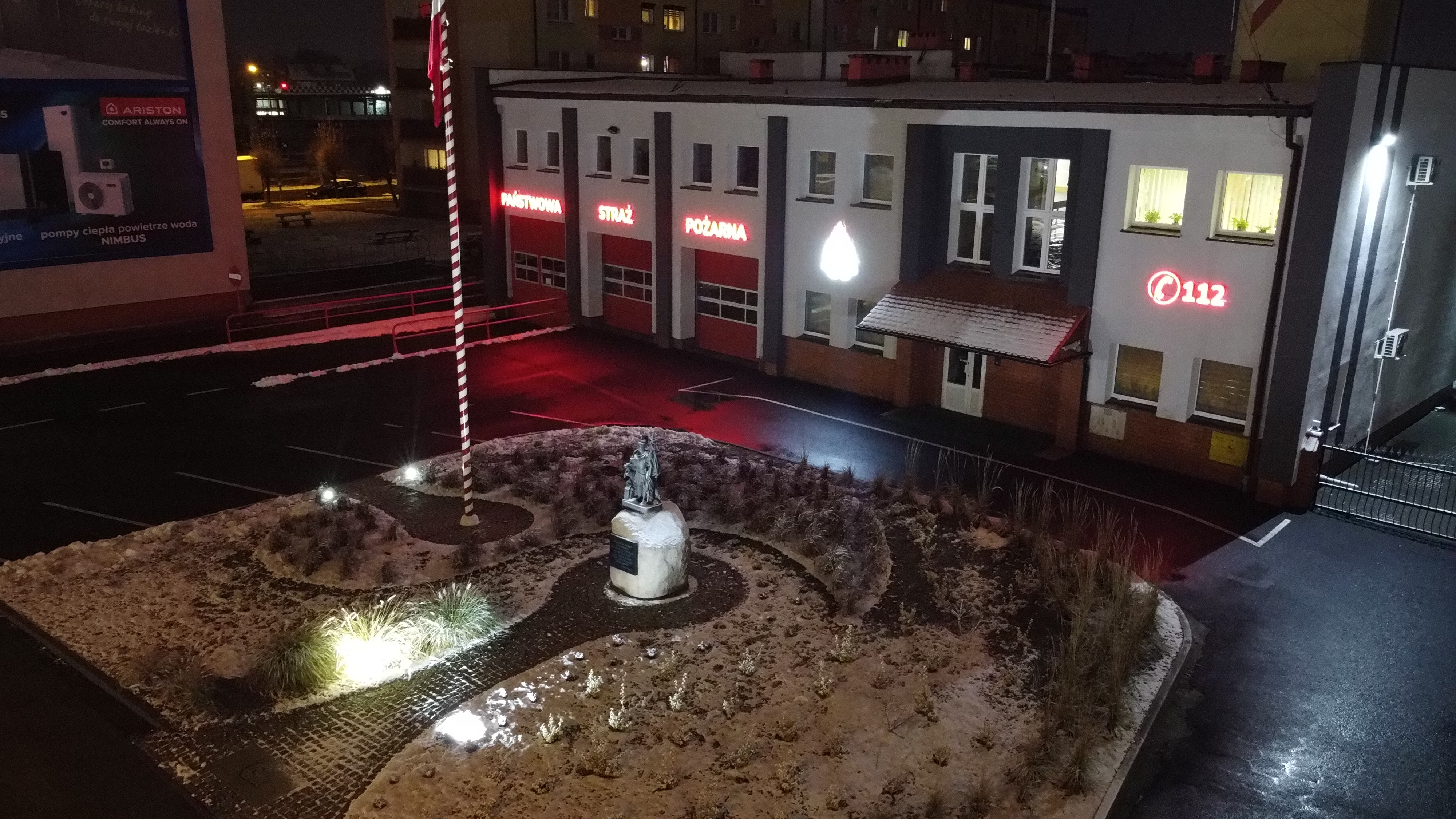 Przypomnijmy, że w pierwszym etapie zagospodarowano teren znajdujący się przed obiektem Komendy. Wówczas pozyskano profesjonalny projekt zagospodarowania skweru, który wykonała firma Ogrody Gidaszewska Pracownia Architektury Krajobrazu z Krotoszyna, dokonano wymiany wysłużonych obrzeży otaczających teren zielony oraz zbudowano fragment ścieżki granitowej, otaczającej uprzednio zamontowany maszt flagowy. Dokumentację projektową przygotowała firma Projektowanie Architektoniczne Pana Łukasza Ratajczyka, a nad prawidłowym przebiegiem budowy czuwał Kierownik budowy Pan Grzegorz Ratajczyk. Prace ziemne zostały zrealizowane przez firmę Gembiak-Mistacki Sp.J. z Krotoszyna, zajmującą się wykonawstwem robót drogowych, która od lat czynnie wspiera krotoszyńskich strażaków. W dalszym etapie strażacy dokonali profilowania terenu pod kątem nowych nasadzeń oraz wykonali oświetlenie masztu i pomnika św. Floriana. W projekcie uwzględniono ponad 400 roślin, których pozyskanie było możliwe dzięki wsparciu Pana Franciszka Marszałka - Burmistrza Miasta i Gminy Krotoszyn oraz Pana Michała Kurka - Naczelnika Wydziału Gospodarki Komunalnej, Ochrony Środowiska i Rolnictwa. Prace związane z nasadzeniem roślin i drzew były prowadzone pod czynnym nadzorem Pani Karoliny Gidaszewskiej - projektantki skweru, a ich zdecydowana większość została wykonana przez strażaków w czasie wolnym od służby. Ponadto, we własnym zakresie zostało zamontowane nawodnienie, a całą kompozycję uzupełnił ozdobny kamień, dostarczony przez Przedsiębiorstwo Wielobranżowe Ochmann z Krotoszyna, które częściowo pokryło koszty surowca.