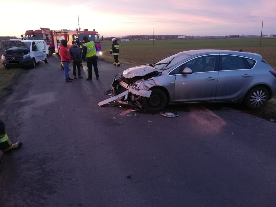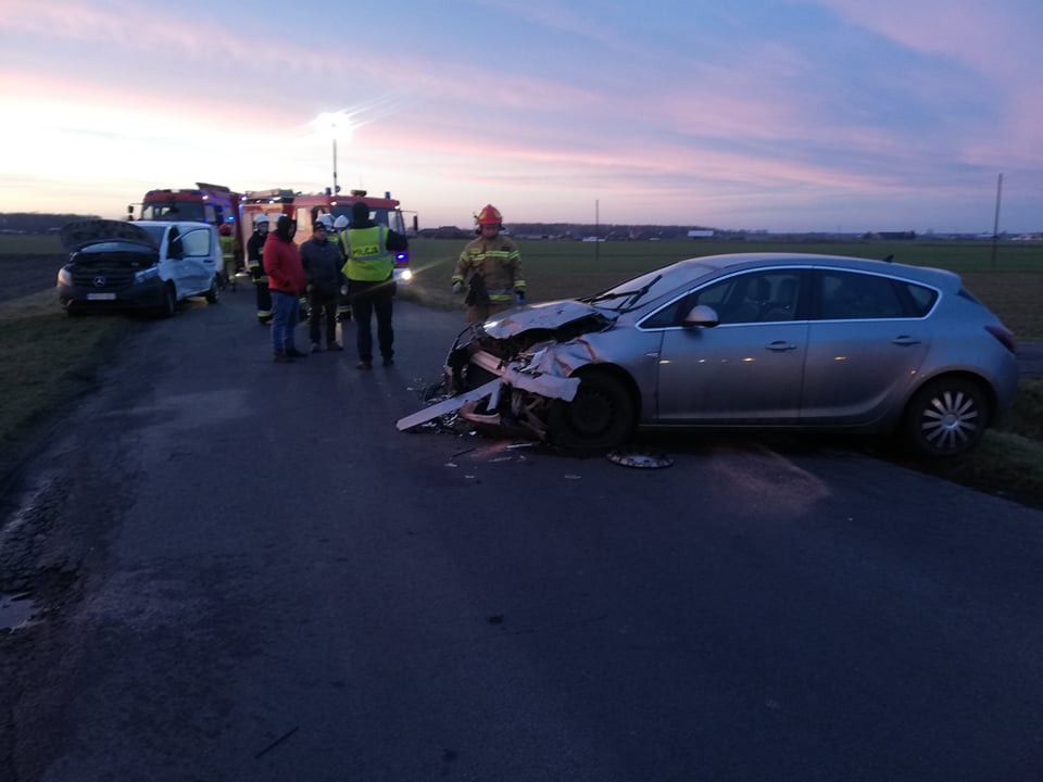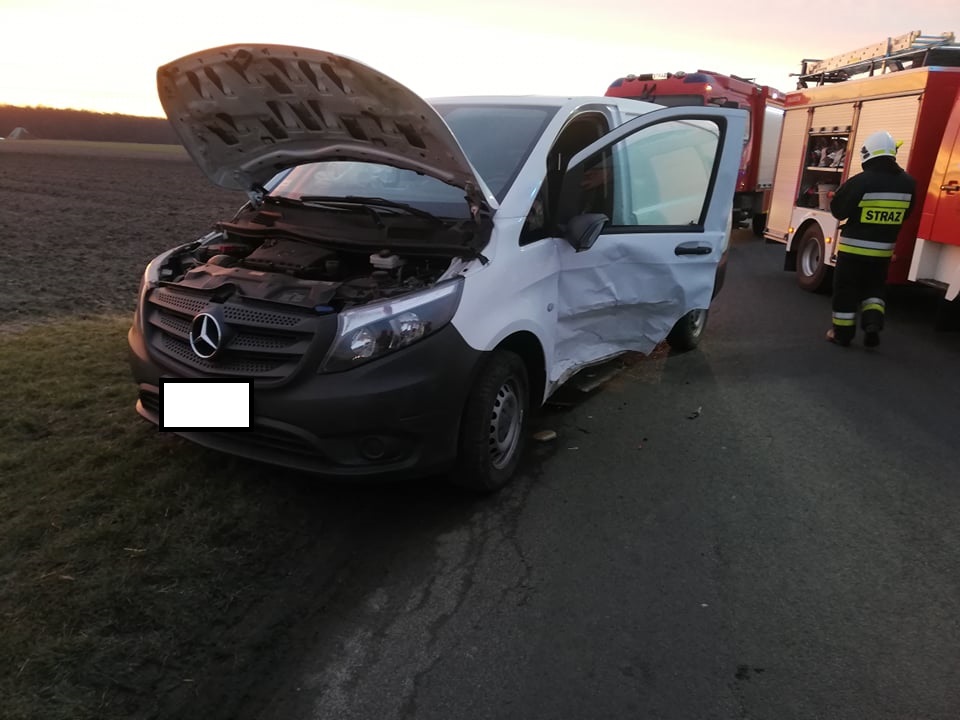 Do zdarzenia zadysponowano dwa zastępy z Jednostki Ratowniczo-Gaśniczej w Krotoszynie oraz po jednym zastępie z jednostek OSP Kuklinów i OSP Kobylin. Na miejscu w wyniku przeprowadzonego rozpoznania ustalono, że doszło do zderzenia dwóch samochodów (osobowego i dostawczego). Pojazdami przemieszczały się dwie osoby. Jedna osoba samodzielnie opuściła pojazd i nie uskarżała się na żadne dolegliwości, druga osoba pozostawała w pojeździe. Z uwagi na deformacje bryły pojazdu strażacy przy użyciu narzędzi hydraulicznych wykonali dostęp do osoby poszkodowanej, następnie przystąpili do udzielania kwalifikowanej pierwszej pomocy. Po przybyciu zespołu ratownictwa medycznego osoby biorące udział w zdarzeniu trafiły pod opiekę Ratowników Medycznych. Po przebadaniu poszkodowanych jedna osoba pozostała na miejscu a druga osoba została przewieziona do SOR 'u. W trakcie prowadzonych działań w rozbitych pojazdach strażacy odłączyli akumulatory i zabezpieczyli wycieki płynów technicznych. Po wykonaniu czynności przez funkcjonariuszy policji, jezdni usunięto pojazdy i przywrócono ruch na drodze w obu kierunkach. Działania straży pożarnej trwały 2 godziny i 4 minuty.