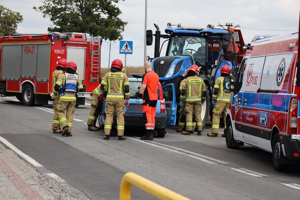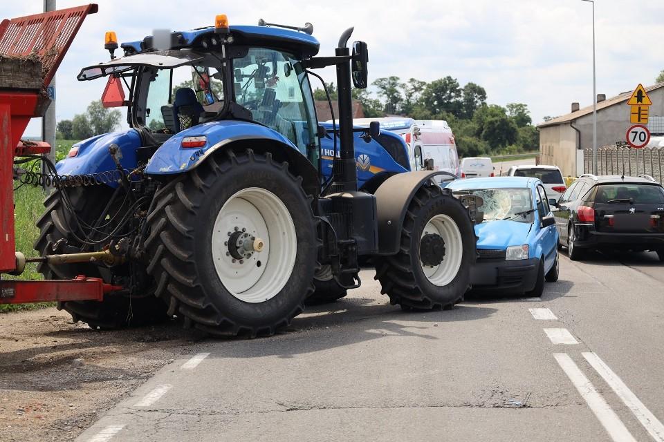 Zderzenie osobówki z ciągnikiem rolniczym w Bożacinie