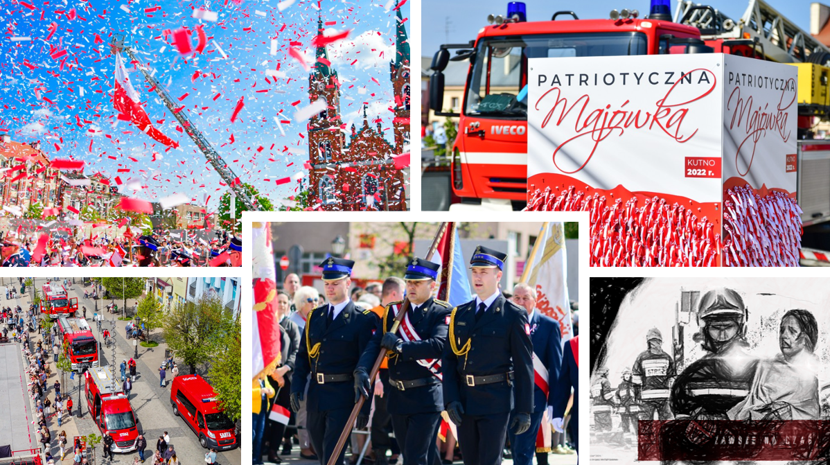 w Kutnie z udziałem między innymi orkiestry dętej OSP. Podczas hymnu narodowego wciągnięto flagę polski na maszt przy wykorzystaniu drabiny mechanicznej SCD37.