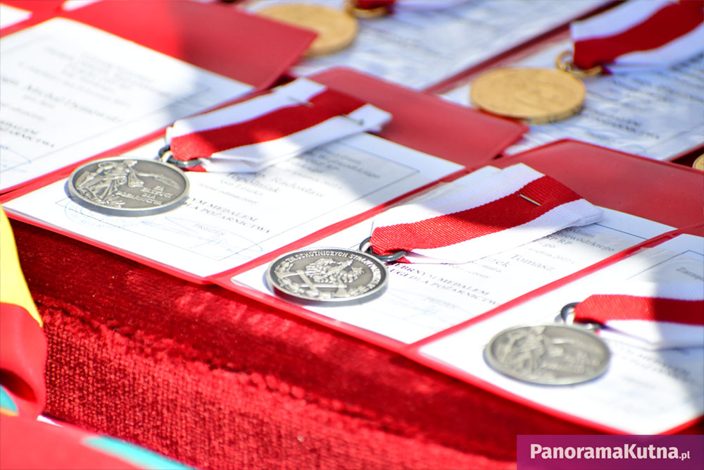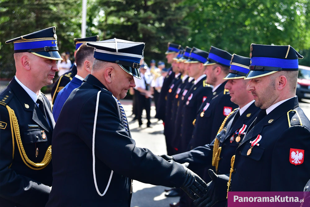 Podczas dalszej części uroczystego apelu Starosta Kutnowski Pan Daniel Kowalik, odznaczył sztandar komendy medalem „Zasłużony dla powiatu kutnowskiego” za szczególne zasługi na rzecz organizacji, funkcjonowania i rozwoju ochrony przeciwpożarowej na terenie powiatu kutnowskiego. Uroczysty apel z okazji Dnia Strażaka był doskonałą okazją do wręczenia kutnowskim strażakom: odznak i odznaczeń oraz aktów nadania wyższych stopni. Przyznano 3 awanse w korpusie oficerskim, 4 w korpusie aspiranckim oraz 4 w korpusie podoficerskim i 4 awanse na stopień starszego strażaka funkcjonariuszom pełniącym służbę w KPPSP w Kutnie. Ponadto odznaczono 2 funkcjonariuszy odznakom „Zasłużony dla Ochrony Przeciwpożarowej” oraz 14 strażaków medalem „Za zasługi dla pożarnictwa”.