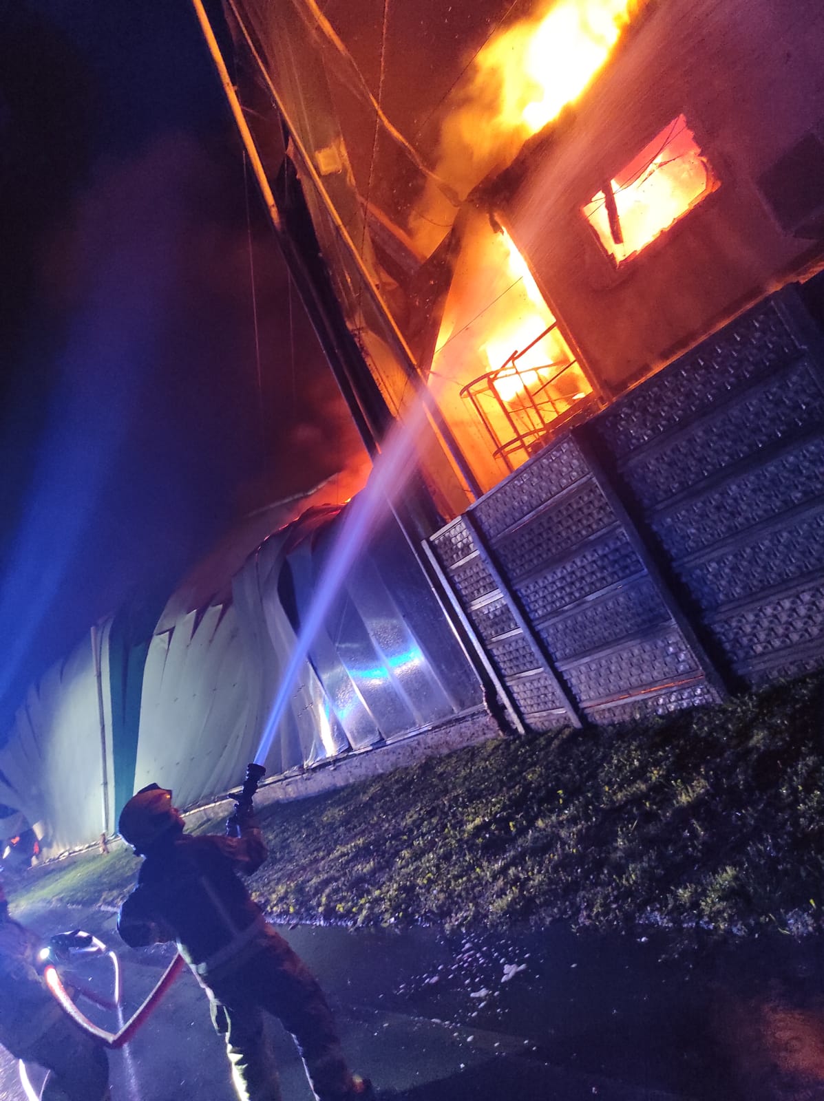 Po dojeździe na miejsce zdarzenia pierwszych zastępów straży pożarnych stwierdzono, że pożarem objęte są dwie hale, a jedna z nich jest częściowo zawalona. Ze względu na wielkość pożaru zostały zadysponowane dodatkowe zastępy gaśnicze z powiatu kutnowskiego oraz trzy ciężkie samochody gaśnicze z JRG Łęczyca, JRG Zgierz i JRG Łowicz.