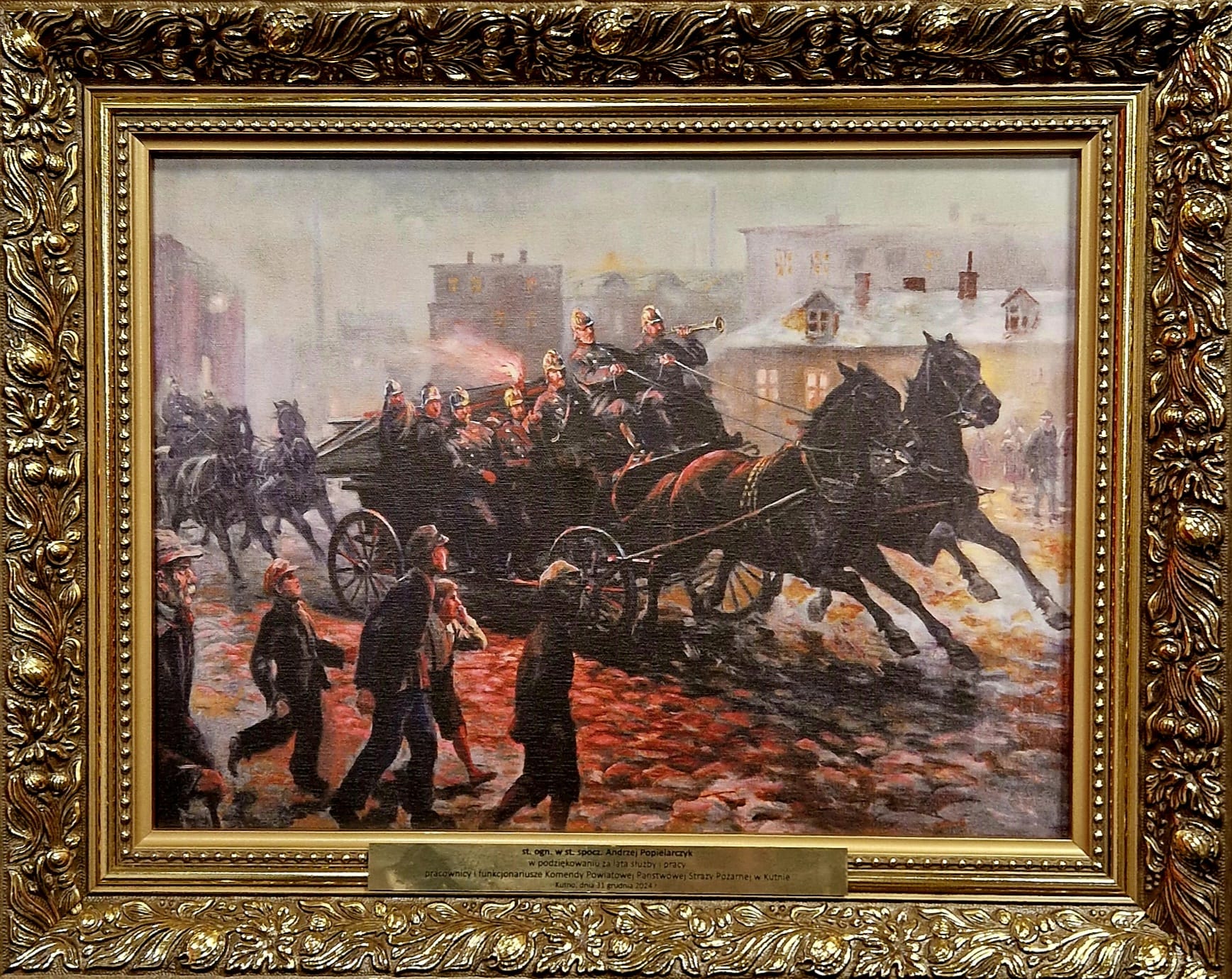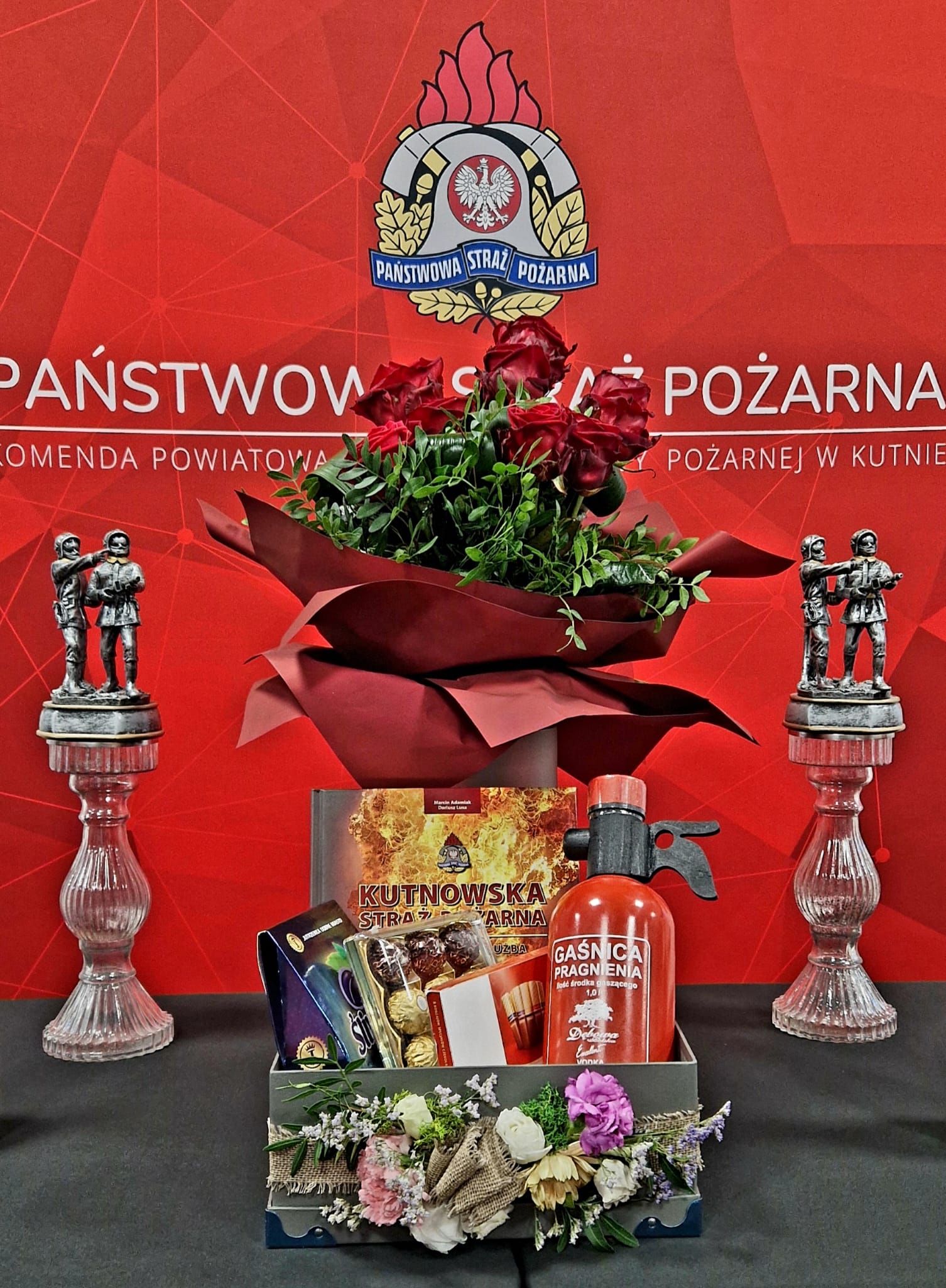 Spotkanie zakończyło się miłym akcentem - dla upamiętnienia tej chwili Andrzejowi Popielarczykowi wręczone zostały kwiaty, pamiątkowy obraz "Do Pożaru"oraz pamiątkowa odznaka Komendy Powiatowej PSP w Kutnie, które wywołały u obdarowanego głębokie wzruszenie i niejedną „łezkę w oku”.